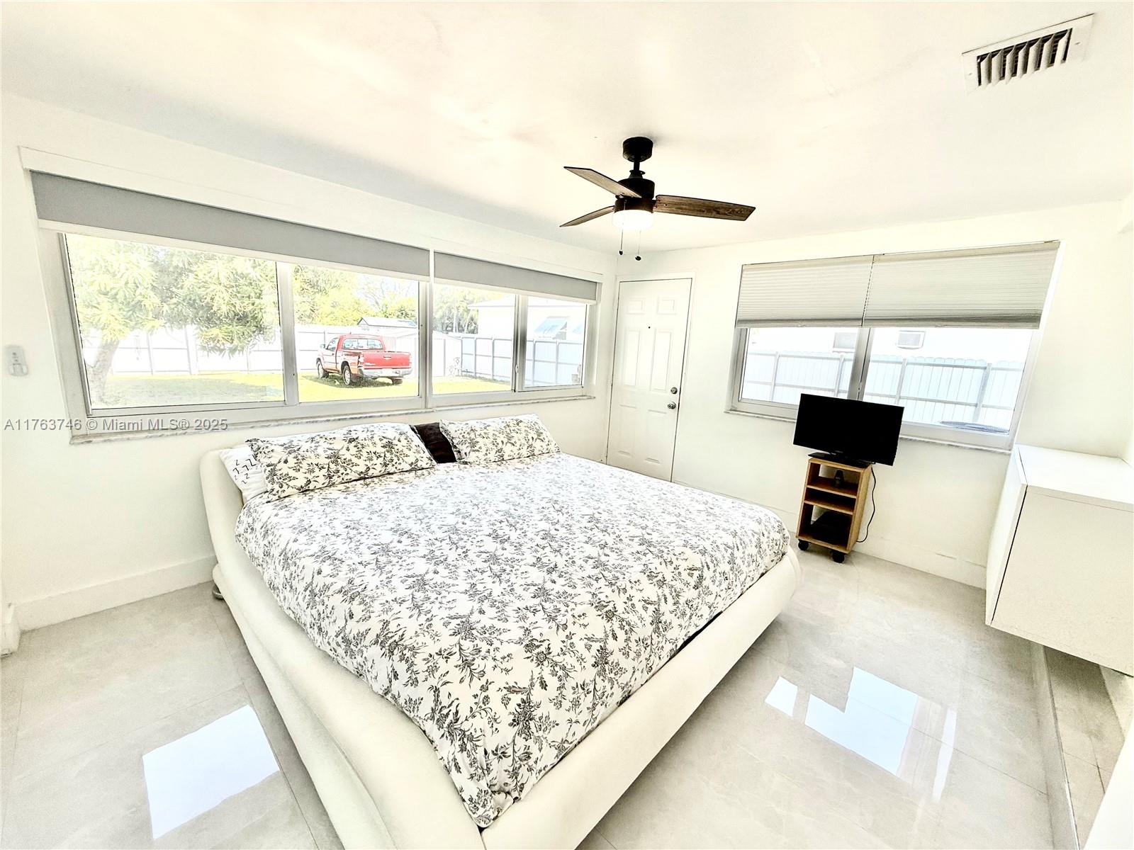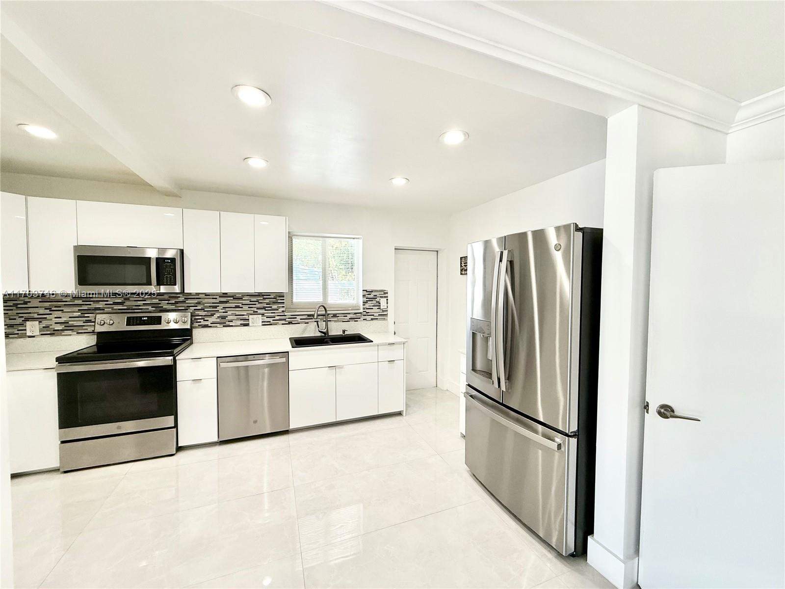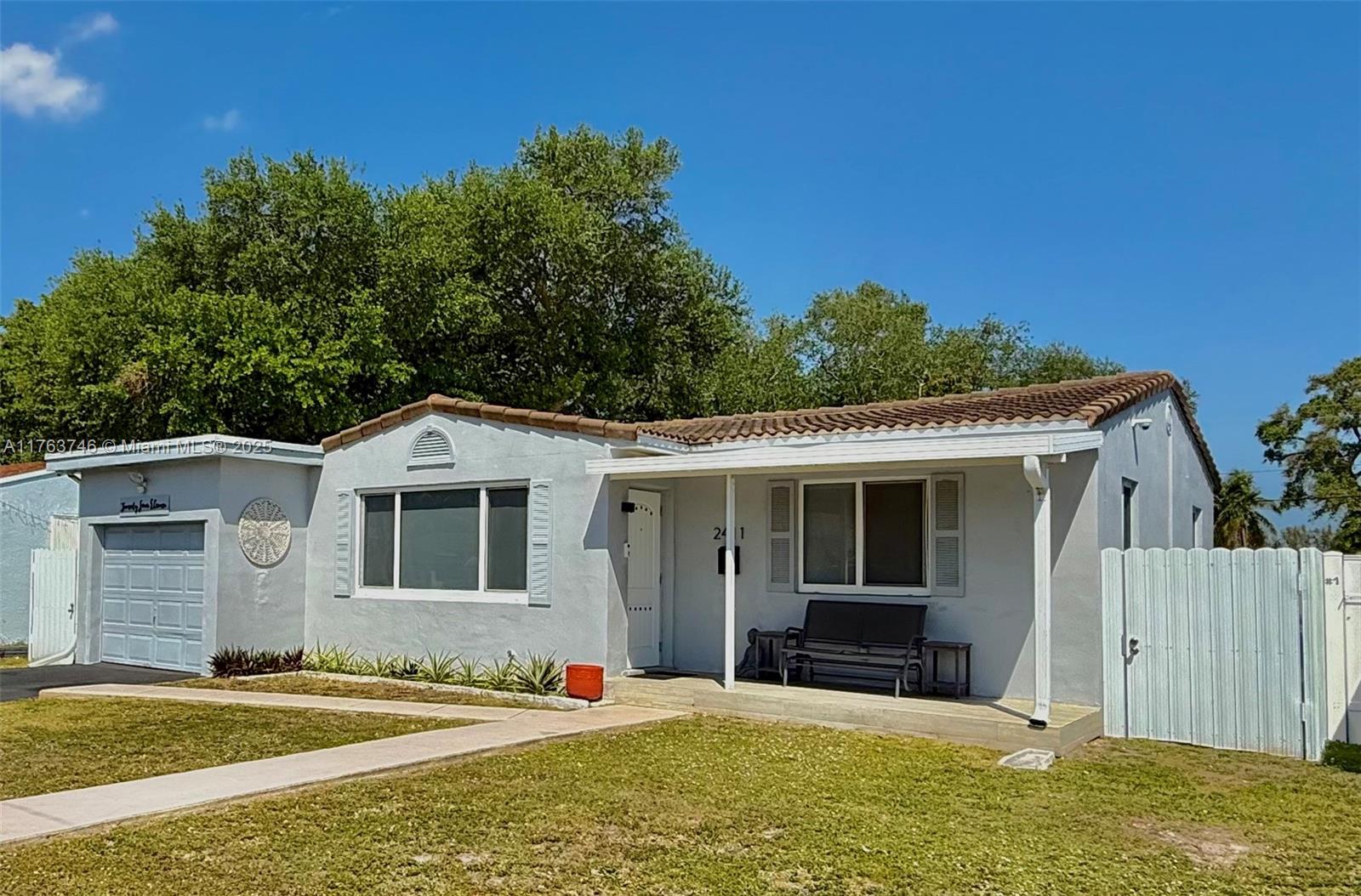 Bright and Spacious TOTALLY UPDATED 3 Bedroom 2 bath, Garage. Perfect for an AIRBNB! NO HOA! Large open concept kitchen, SS appliances, large porcelain tile that flows thru the entire home. Partially furnished. Huge bright primary bedroom with ensuite tastefully updated bathroom with spa like shower, UPDATED guest bath has free standing tub and a spacious shower. Split bedroom floor plan. Fully fenced in huge back yard and a double wide gate that opens up for ample room to drive in space for parking a boat or RV, etc and perfect for pets and children or plenty of Room for a Pool. Delicious Mango tree. Centrally located, just minutes to Ft. Laud Airport, Casinos, Hard Rock, Shopping, beaches, shopping & entertainment.