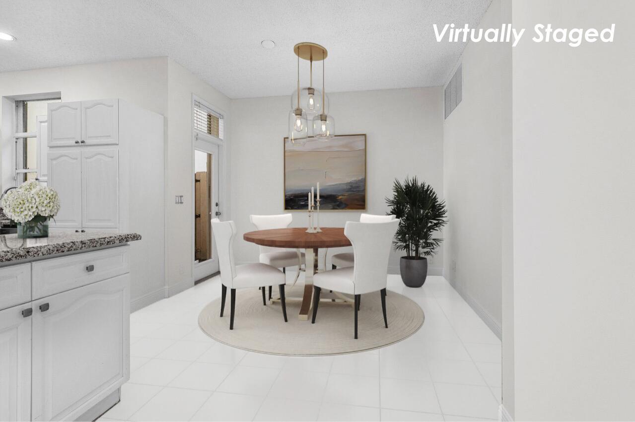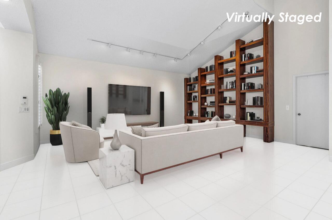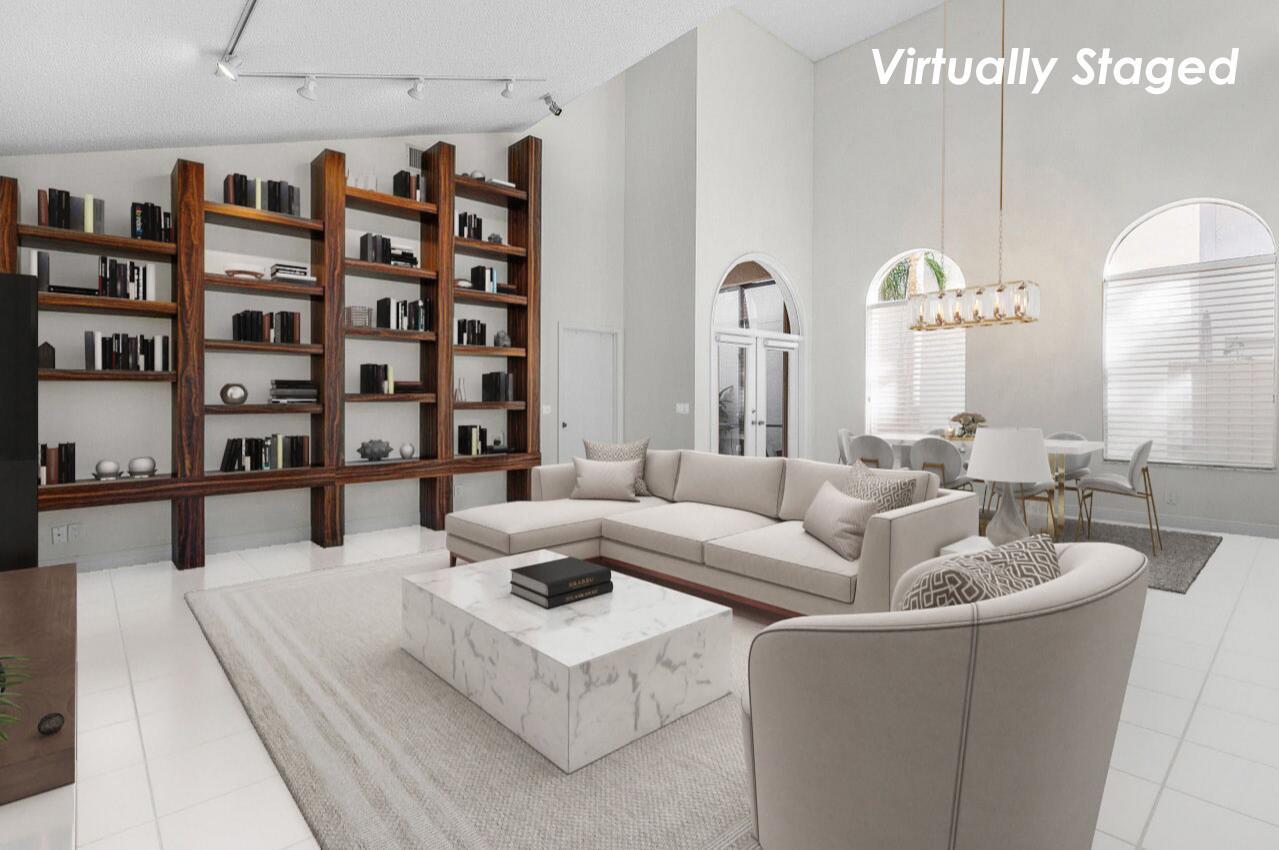 Nestled within the serene confines of Broken Sound Country Club's Banyans community, this elegant 3BD 2.5 BA home stands as a beacon of tranquility and sophistication. A perfect blend of luxury and comfort, this residence beckons those who seek an intimate yet vibrant lifestyle of the Broken Sound Country Club.This home's functionality features two living areas, a large living room with a spacious custom wooden built-in wall unit rising to the cathedral ceiling, which is a perfect focal point to display artwork, books and more. The second living area features a club room that can be remodeled for multiple uses.