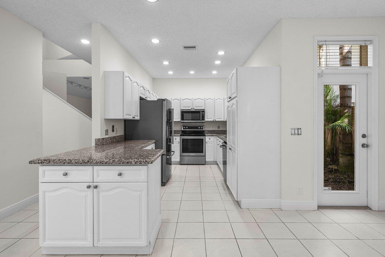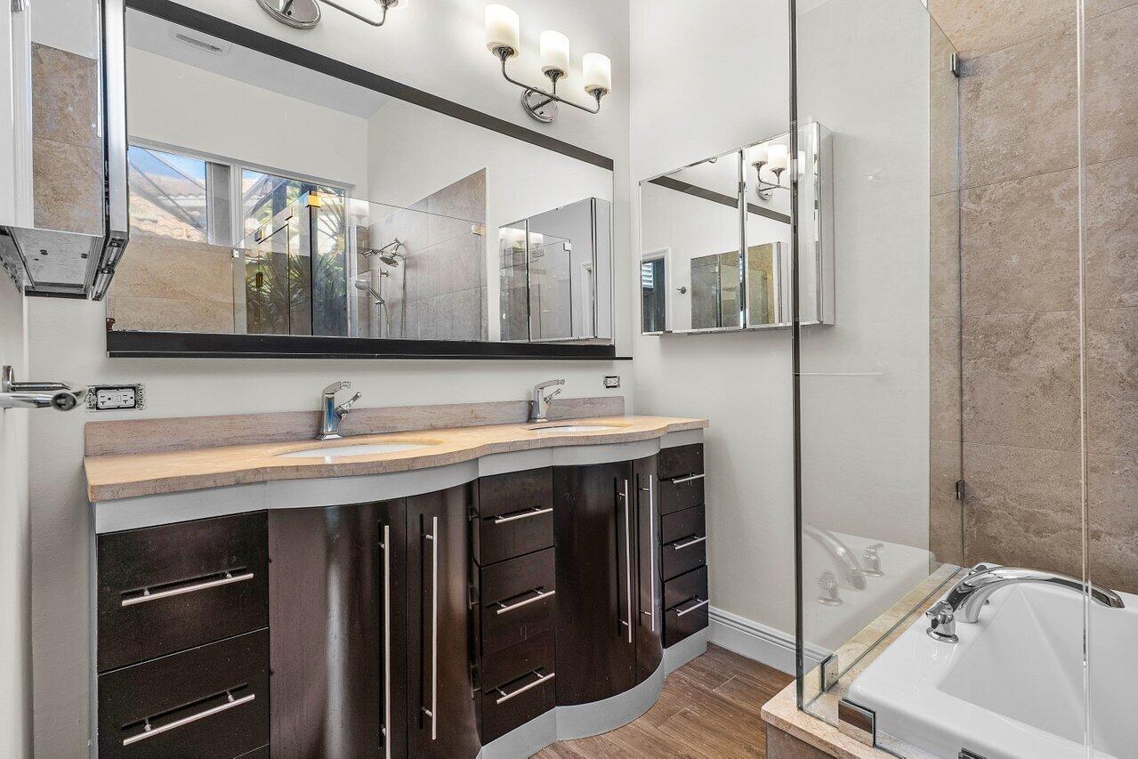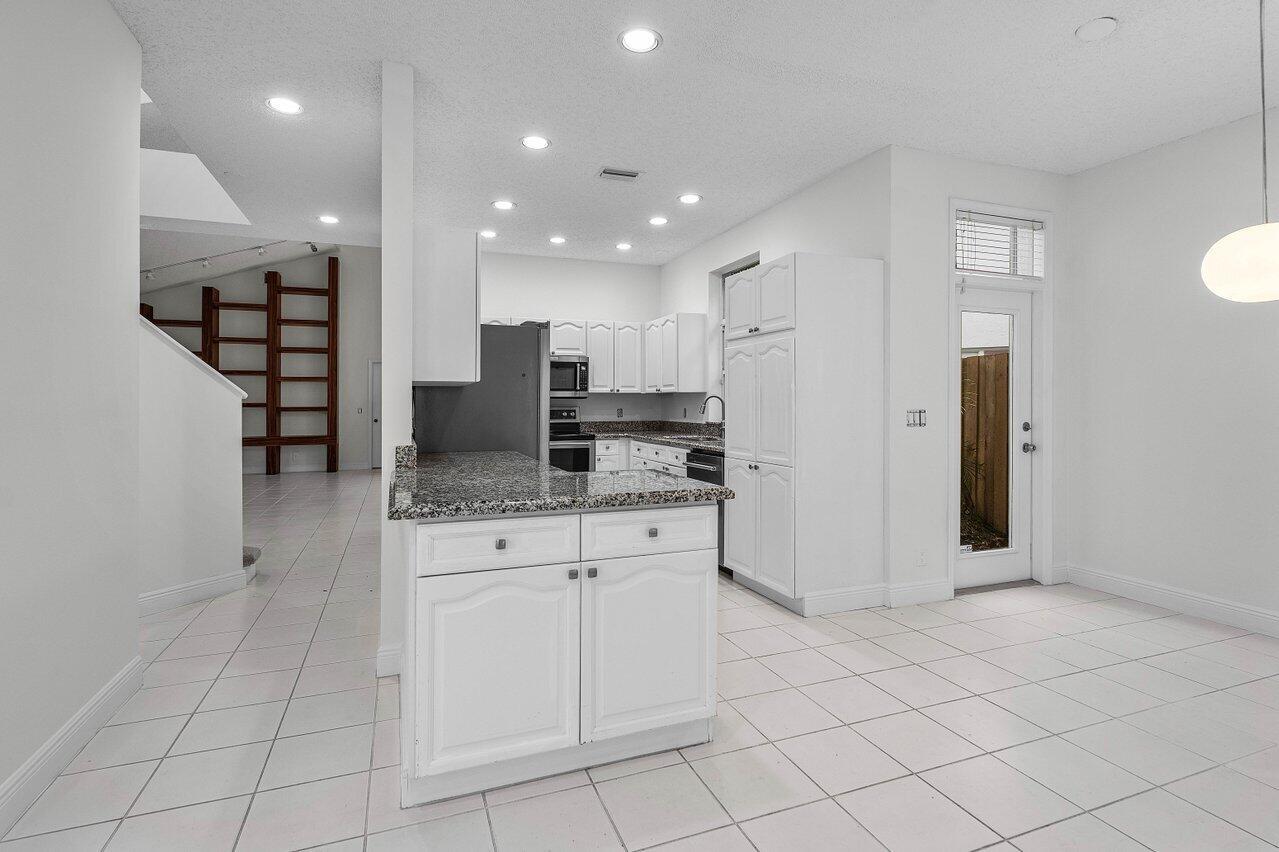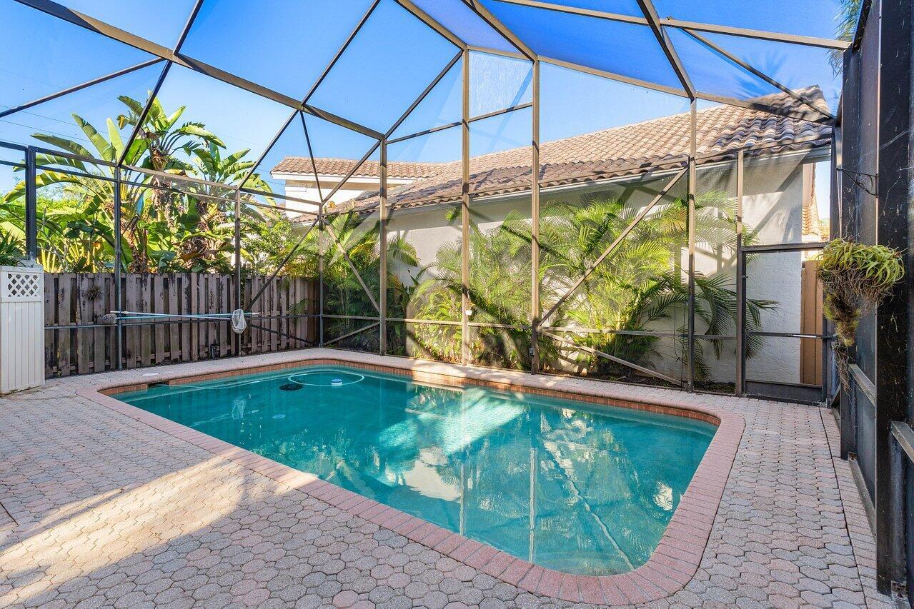Nestled within the serene confines of Broken Sound Country Club's Banyans community, this elegant 3BD 2.5 BA home stands as a beacon of tranquility and sophistication. A perfect blend of luxury and comfort, this residence beckons those who seek an intimate yet vibrant lifestyle of the Broken Sound Country Club.This home's functionality features two living areas, a large living room with a spacious custom wooden built-in wall unit rising to the cathedral ceiling, which is a perfect focal point to display artwork, books and more. The second living area features a club room that can be remodeled for multiple uses.