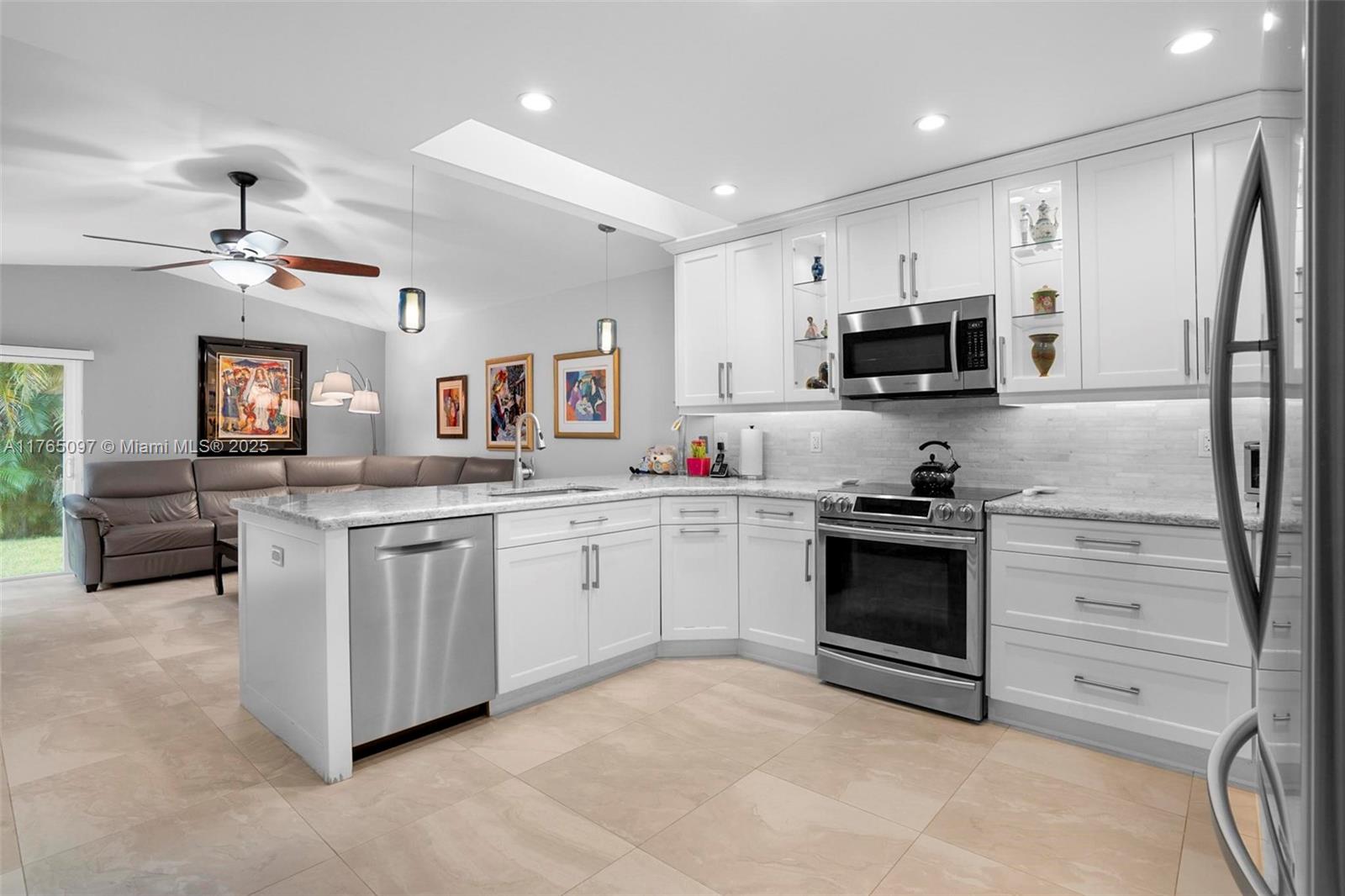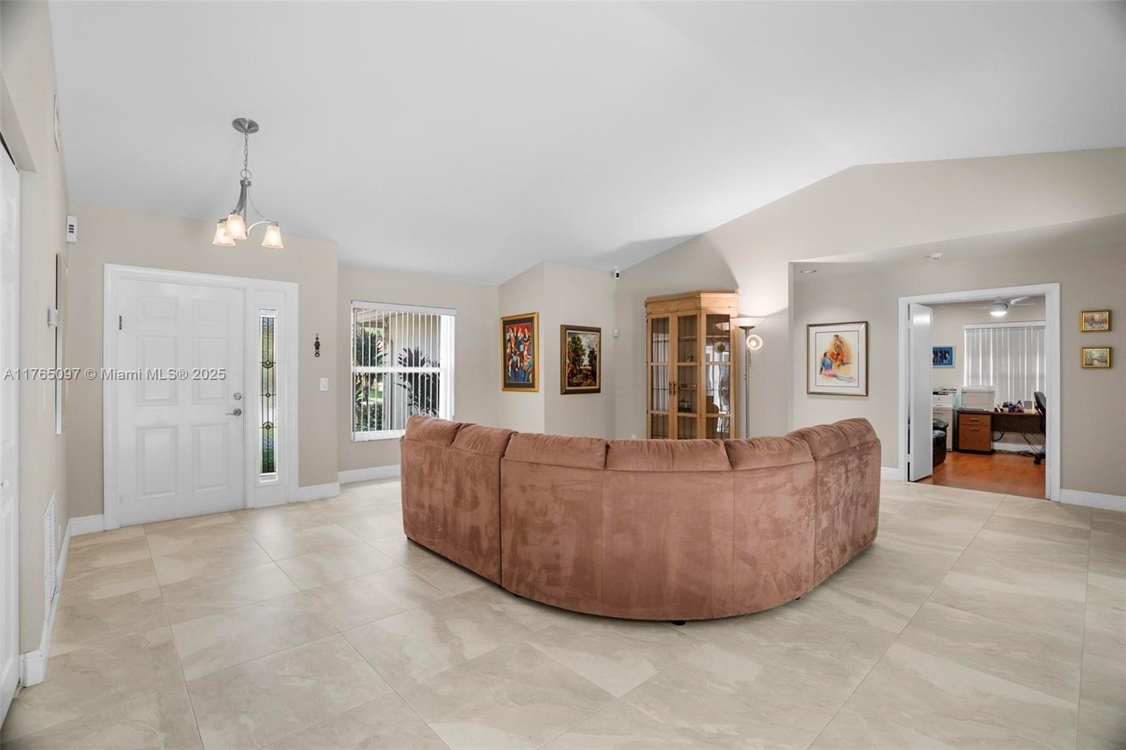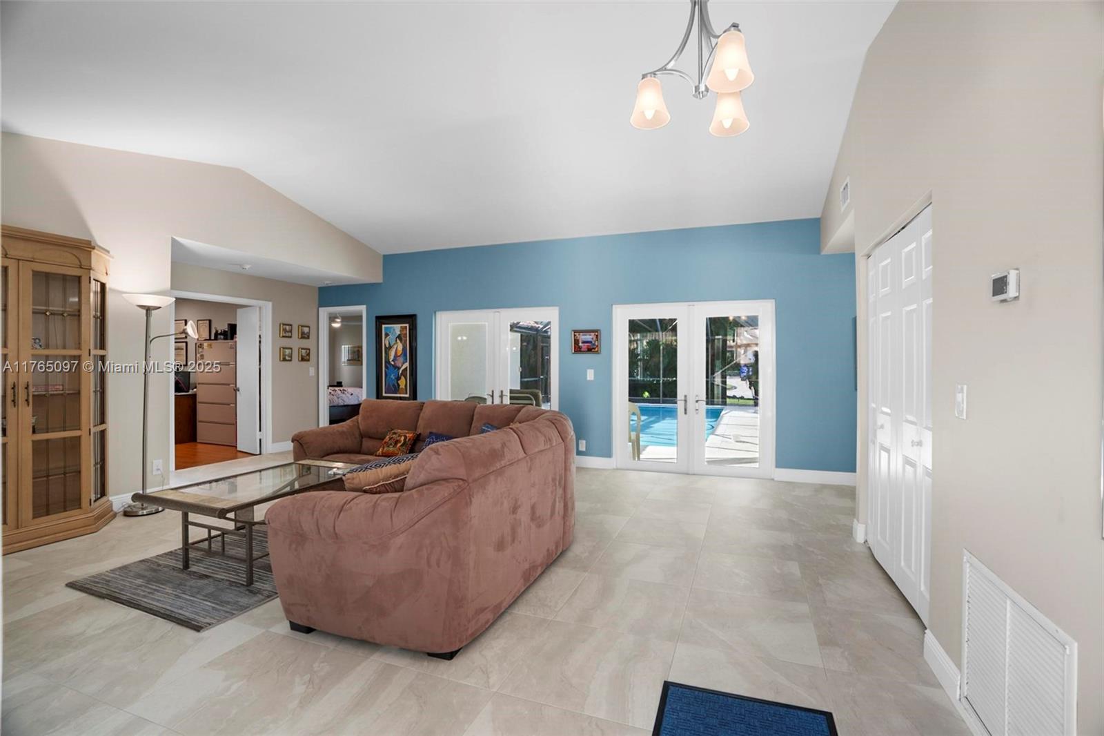 OPEN HOUSE 06/14/25 11AM TO 2 PM PRICED REDUCED!! MOTIVATED SELLERS. Absolutely immaculate 4 bed, 2 bath, 2 car garage pool home in Pine Landing. This SUPER clean home boasts 24 inch Spanish porcelain tile throughout the living areas and high quality wood laminate in all the bedrooms. The ULTRA upgraded designer kitchen is an entertainers dream with beautiful Cambria quartz countertops, custom made cabinetry with pull-outs and soft close doors and drawers with lots of hidden storage. The home boasts 4 separate sliding doors and a set of beautiful French doors that lead out the covered pool and patio area. The entire home has impact glass and all doors and garage are hurricane ready as well. And to stay cool, this home has an ultra efficient 21 SEER 5 ton A/C unit. This home is a gem!!!!