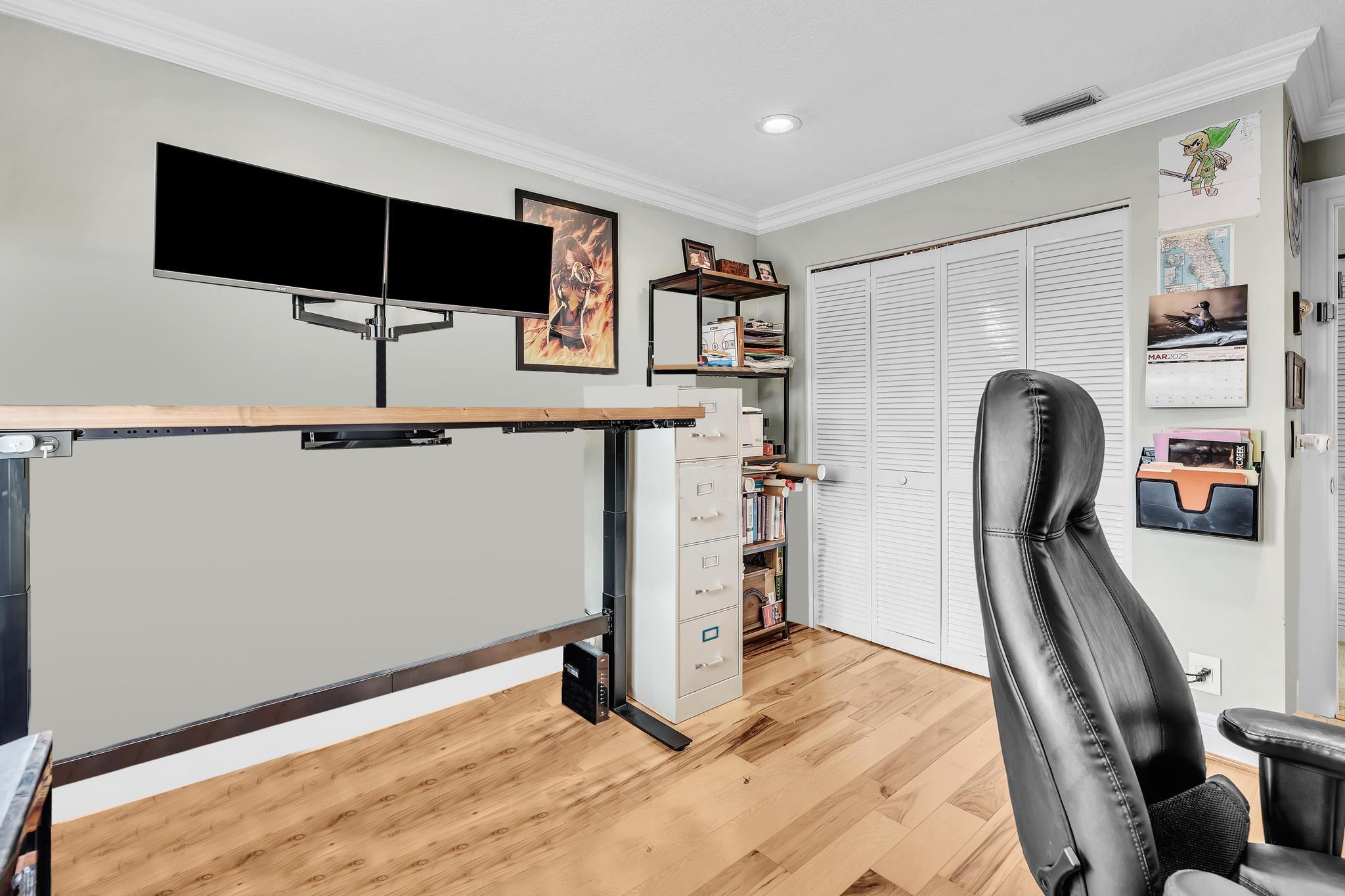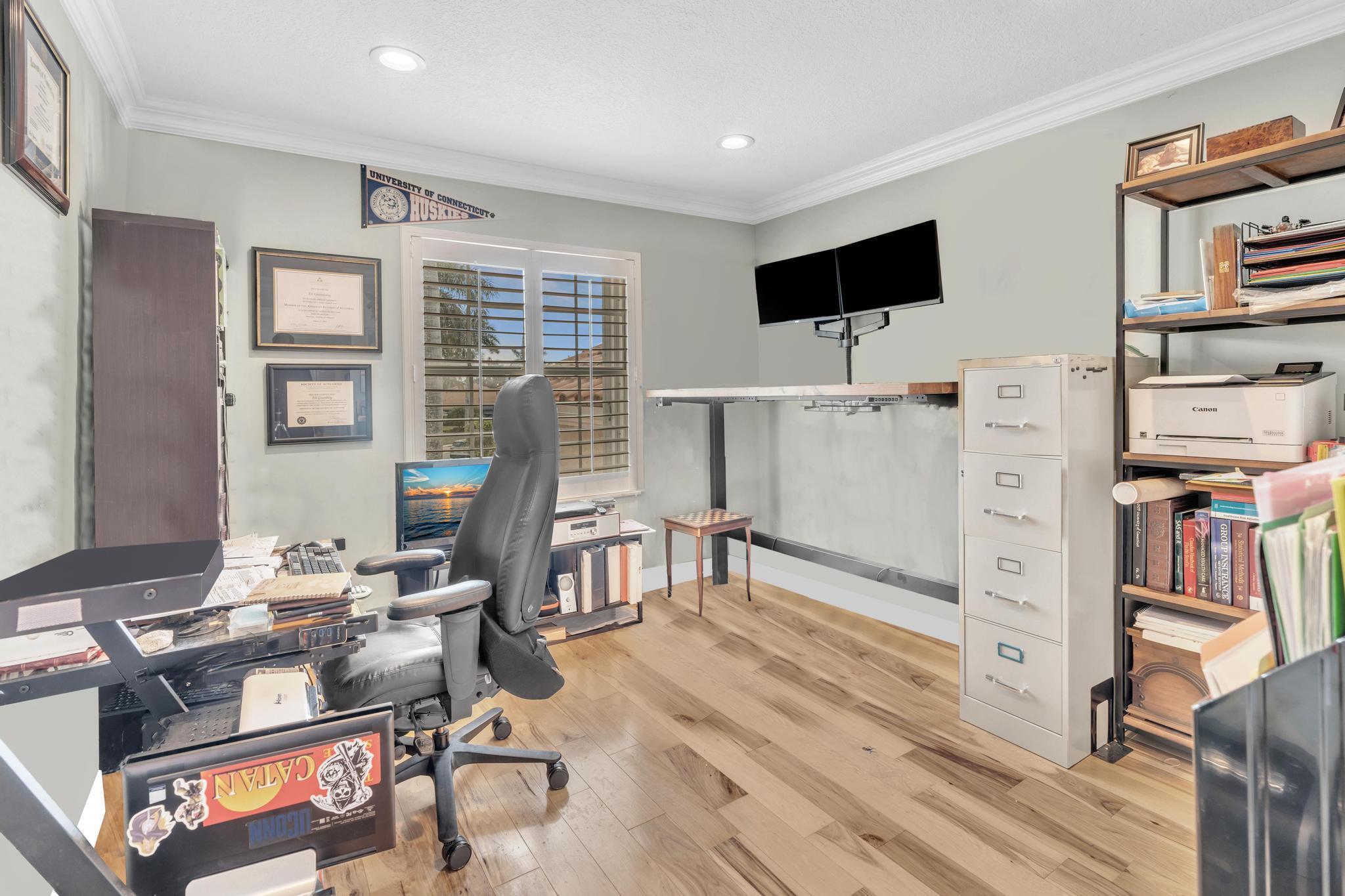 Welcome home! This stunning Scottsdale model offers 5 bed (5th on main level) and 3 full bathrooms. It sits on an oversized lot that backs up to a serene preserve, offering ample space to create your perfect backyard oasis. Enjoy the convenience of a large screened-in porch on the main level and a private balcony off the master bedroom for peaceful outdoor living. As you enter, you'll be greeted by the formal living and dining rooms, featuring double-height ceilings and an abundance of windows, flooding the space with natural light. The home includes a 3.5-car garage with a travertine driveway, adding to its impressive curb appeal. Wood flooring flows seamlessly throughout the main living areas,