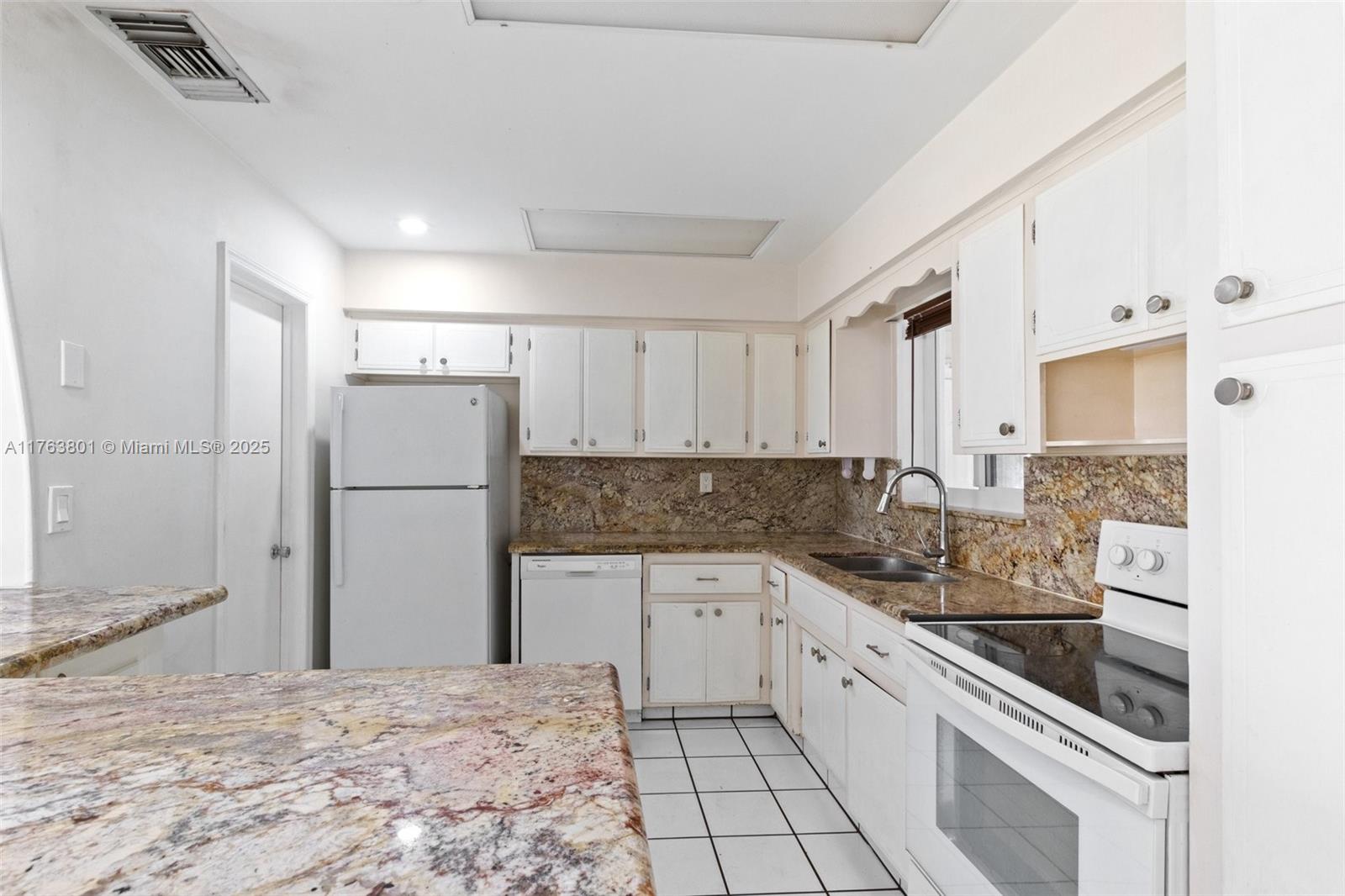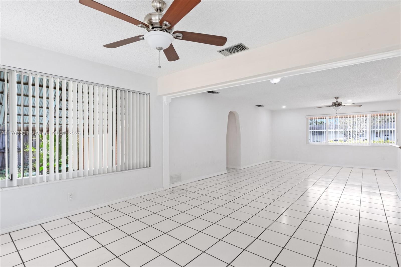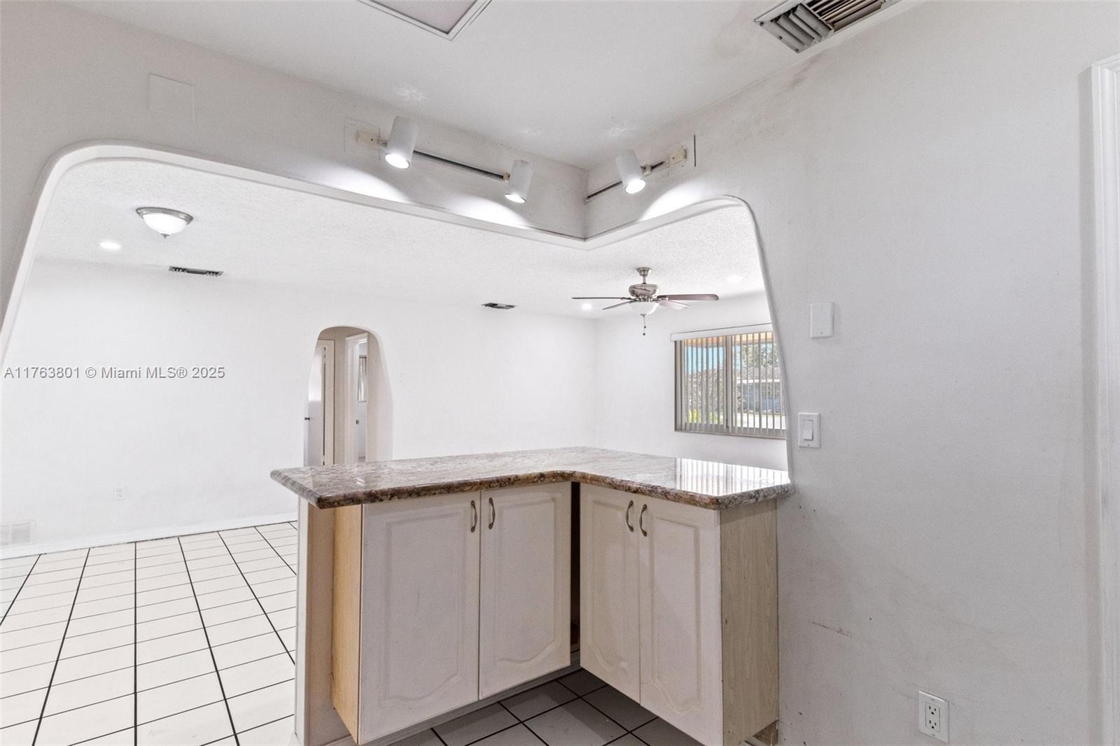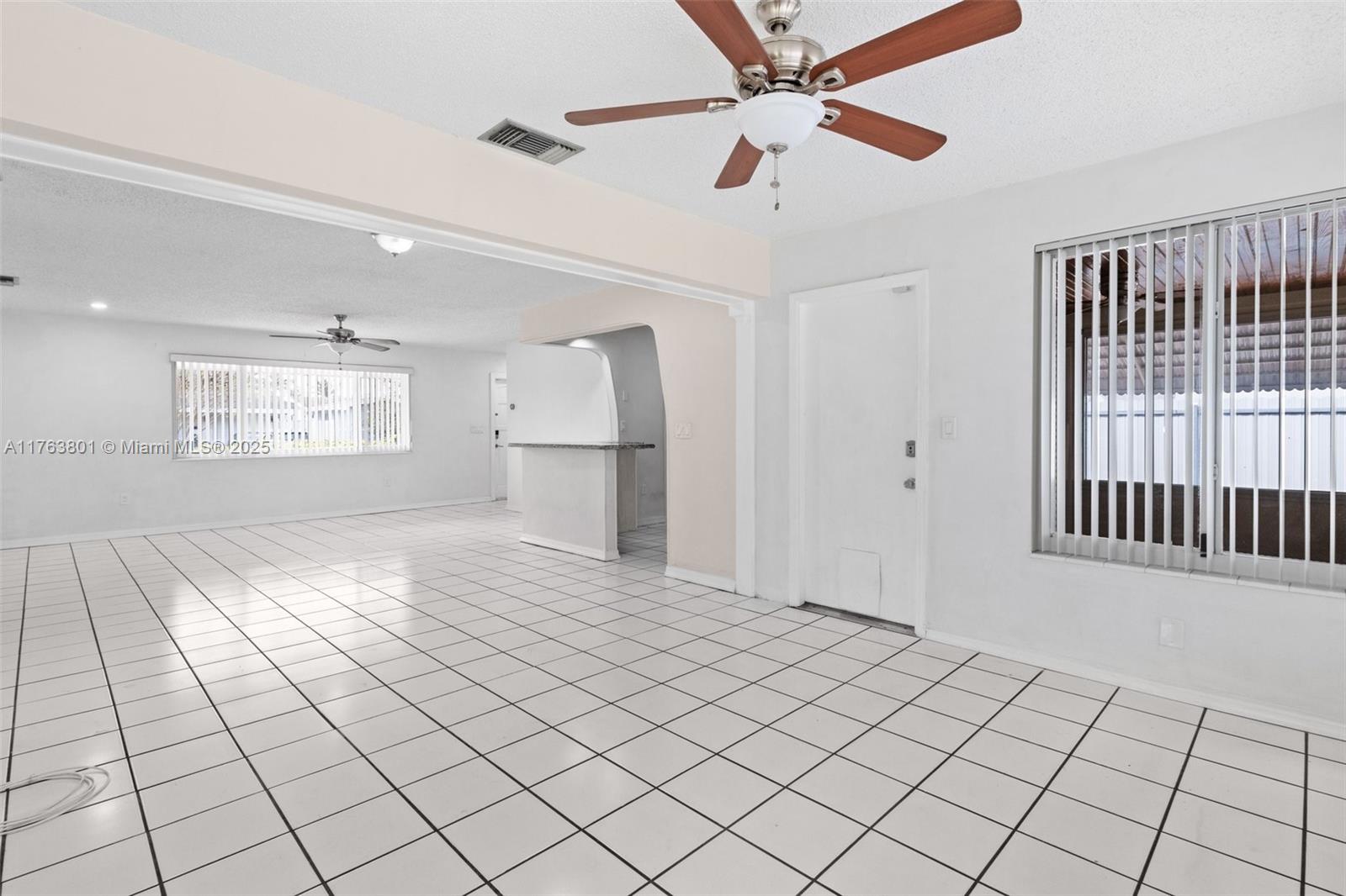Nestled in a peaceful Pembroke Pines neighborhood, this charming 2-bedroom, 1-bathroom home offers comfort and tasteful upgrades. The open-concept layout enhances the airy ambiance, complemented by all-impact windows with stylish treatments. A newer roof, fresh paint, and matching ceiling fans elevate its appeal. The updated kitchen boasts elegant granite countertops, while ceramic tile flooring exude timeless charm. Enjoy a bright sunroom, a covered back porch ideal for entertaining, and a fully fenced backyard for privacy. A spacious utility room features a high-capacity washer/dryer, and the newer central HVAC system ensures year-round comfort. With hurricane panels, a stamped concrete driveway for multiple vehicles, and wonderful neighbors, this home is a true gem!