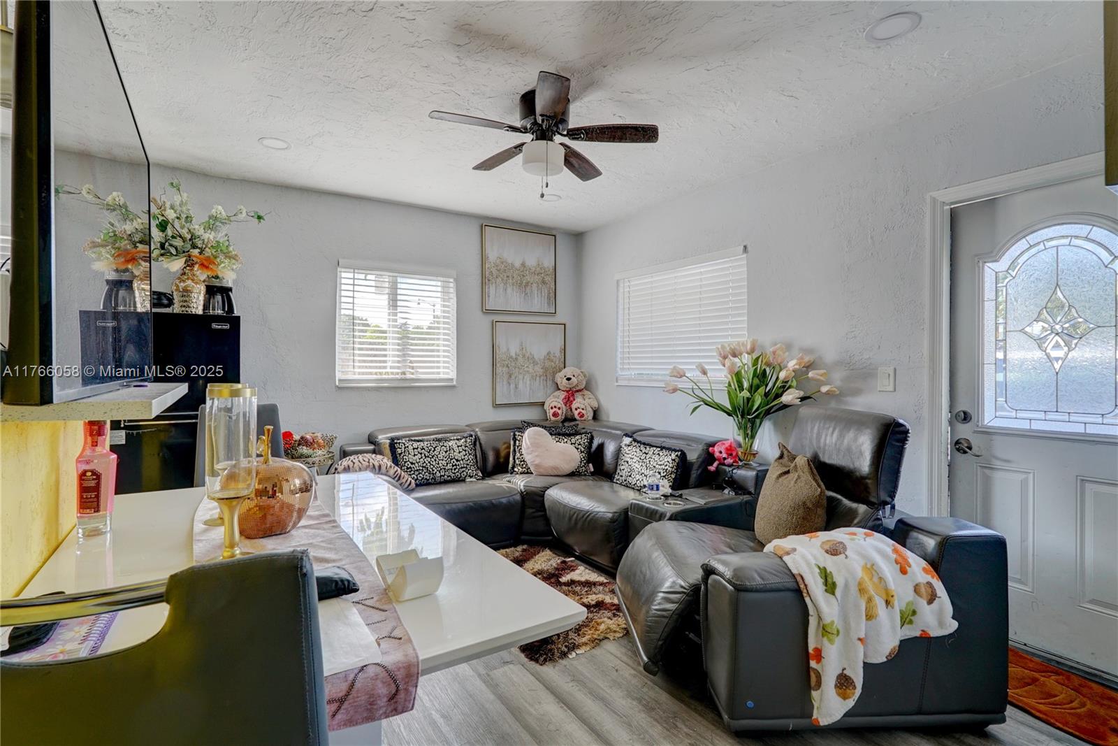 This cozy 2-bedroom, 1-bathroom home offers a perfect blend of comfort and modern updates. Nestled in a quiet neighborhood, this home features a private backyard—ideal for relaxation and outdoor gatherings. Inside, everything has been thoughtfully updated, including a newly renovated kitchen and bathroom. The home boasts laminate flooring throughout, creating a sleek and low-maintenance interior. Additionally, the home is equipped with impact windows, ensuring both safety and energy efficiency. The roof is just 3 years old, and the electrical and plumbing systems have been completely updated, offering peace of mind for years to come. With fresh paint both inside and out, this home is move-in ready.