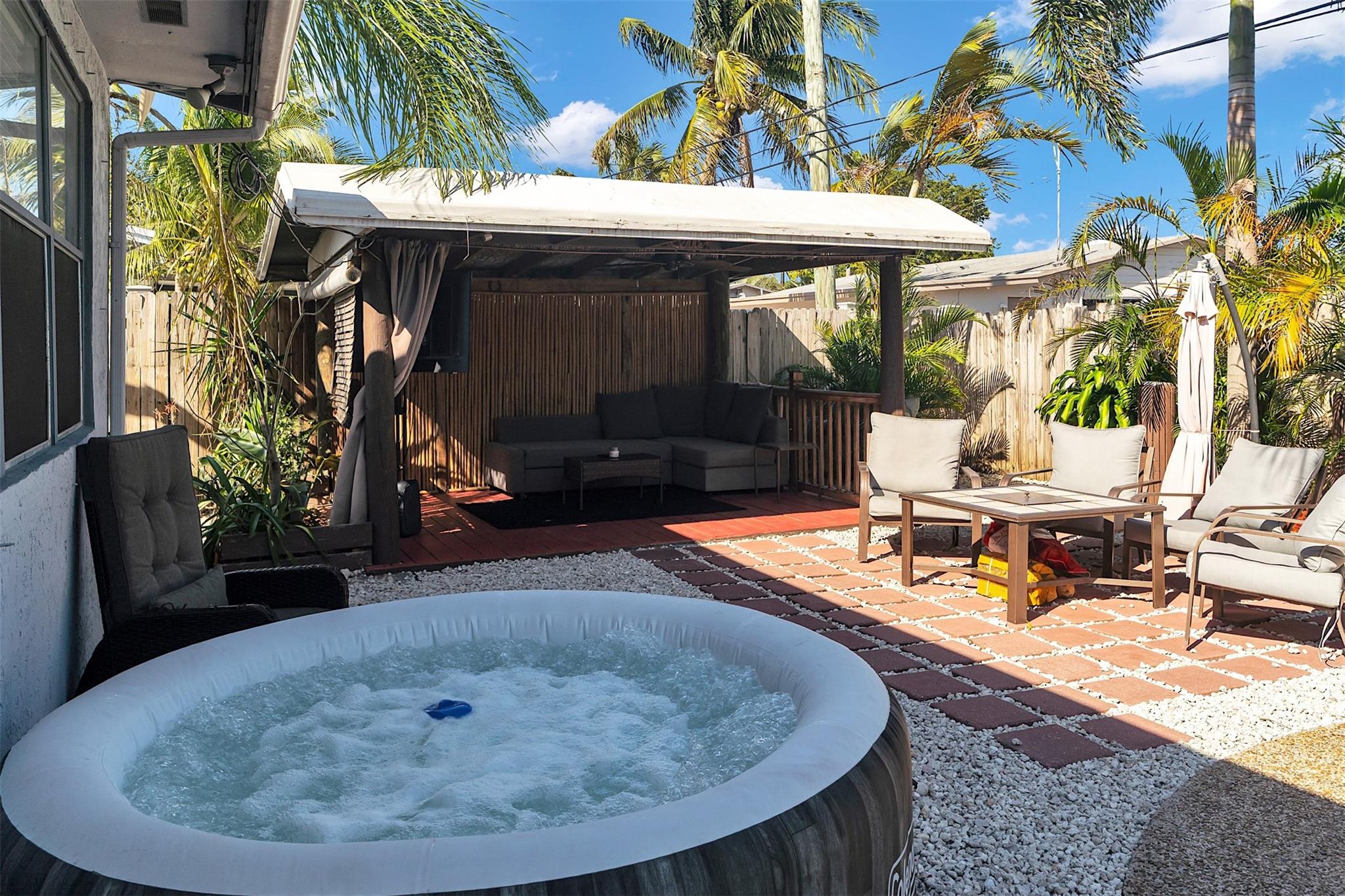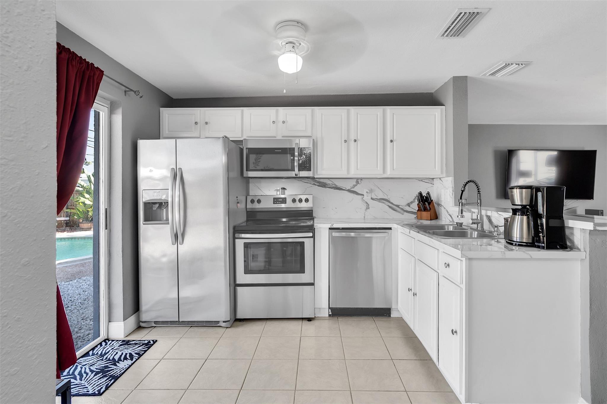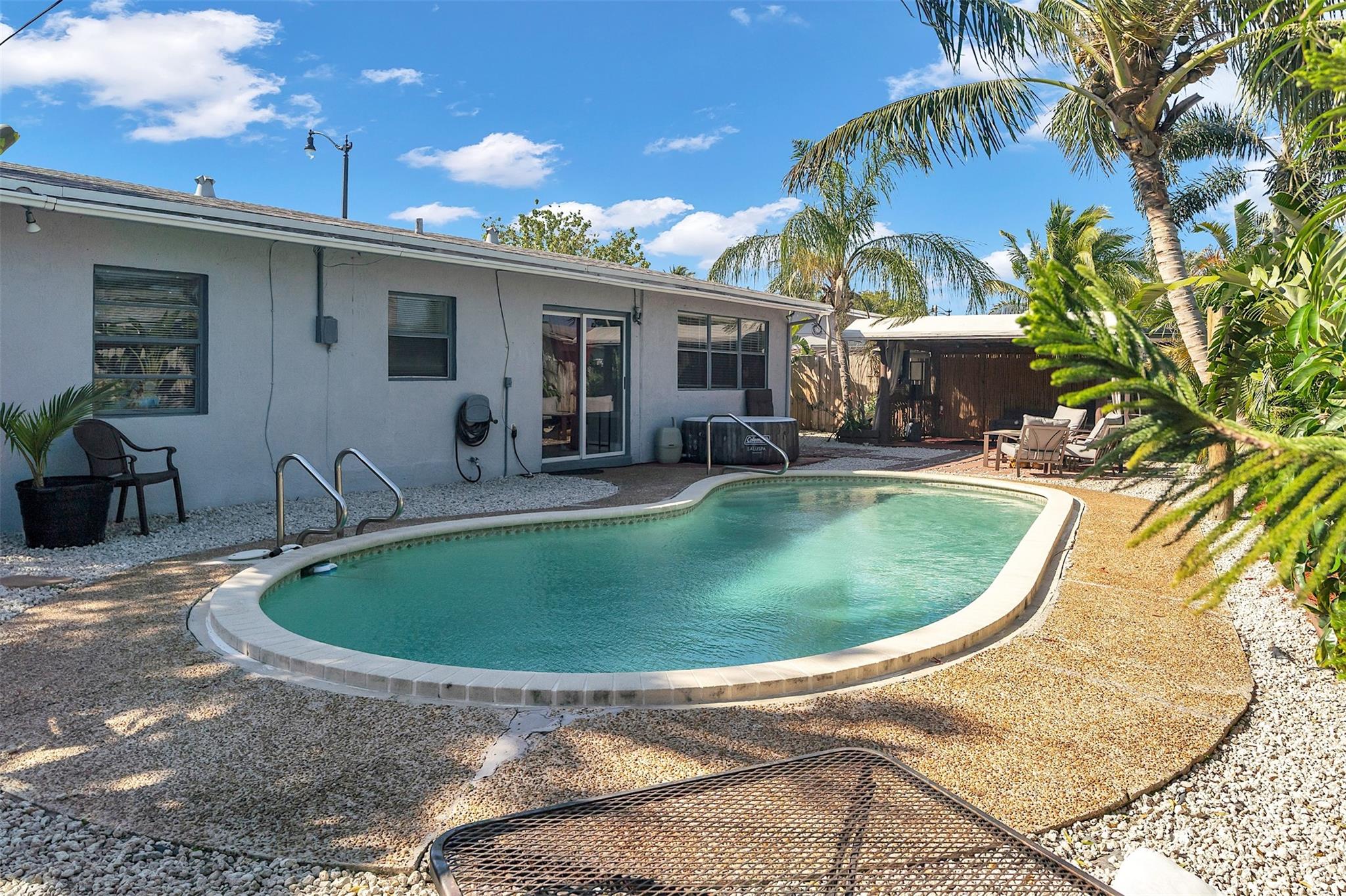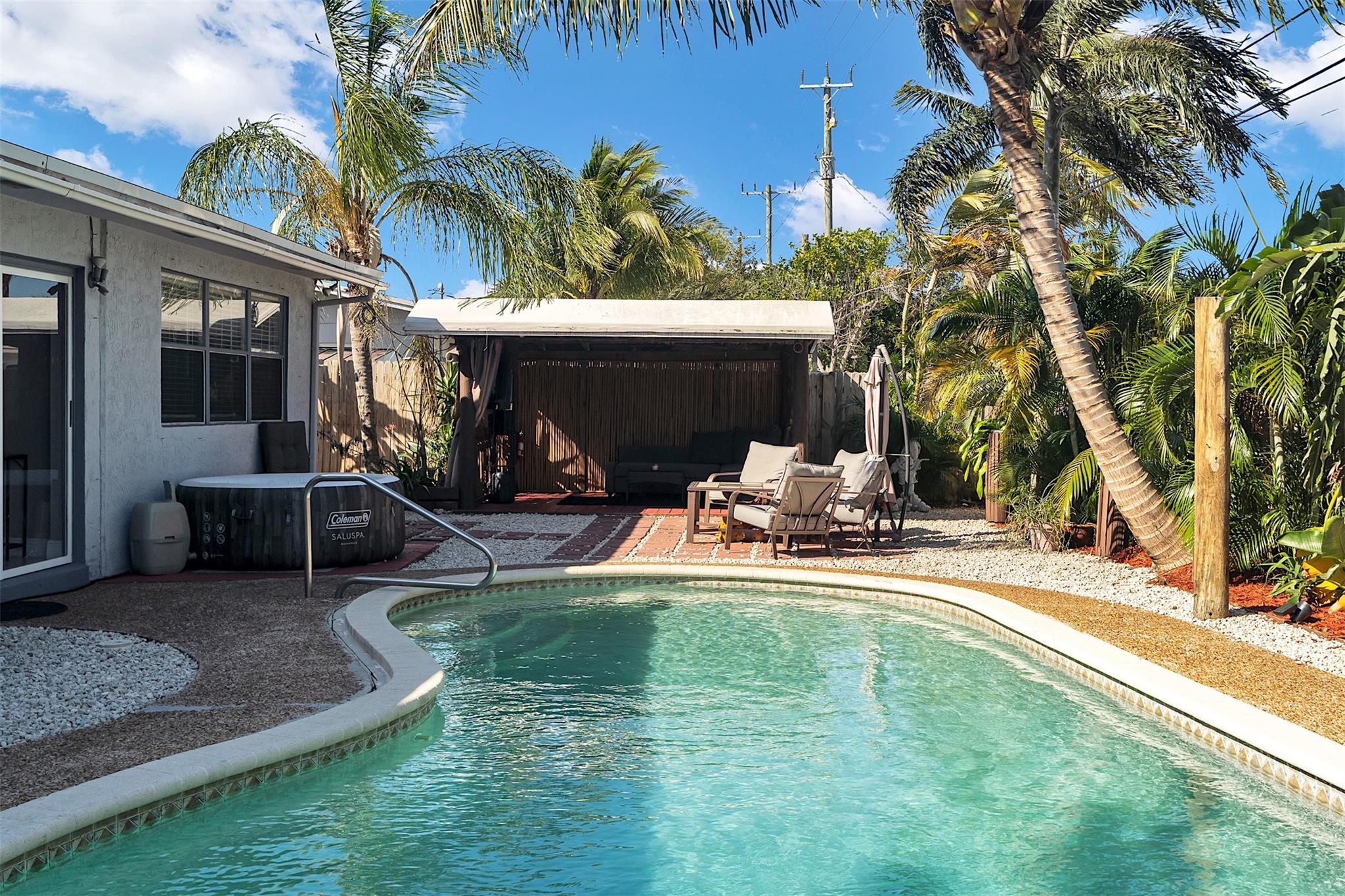 MOVE-IN READY 3-bedroom, 2-bath home with key upgrades! Freshly painted inside and out, this home features all brand new waterproof laminate flooring flows seamlessly throughout the large bedrooms and living areas. Updated kitchen boasts refaced cabinetry, stainless steel appliances, and new microwave. Spacious master bedroom with ensuite bath. Impact windows on the front and sides, a 2018 roof and a 2021 A/C system, ensure comfort and peace of mind. Electrical and breakers were also updated in 2024. Step outside to a private oasis with an in-ground pool and new pump, complemented by a custom cabana/entertainment area. A 4-zone solar-powered sprinkler system maintains the lush landscaping. Conveniently located, this property is near a public boat ramp.