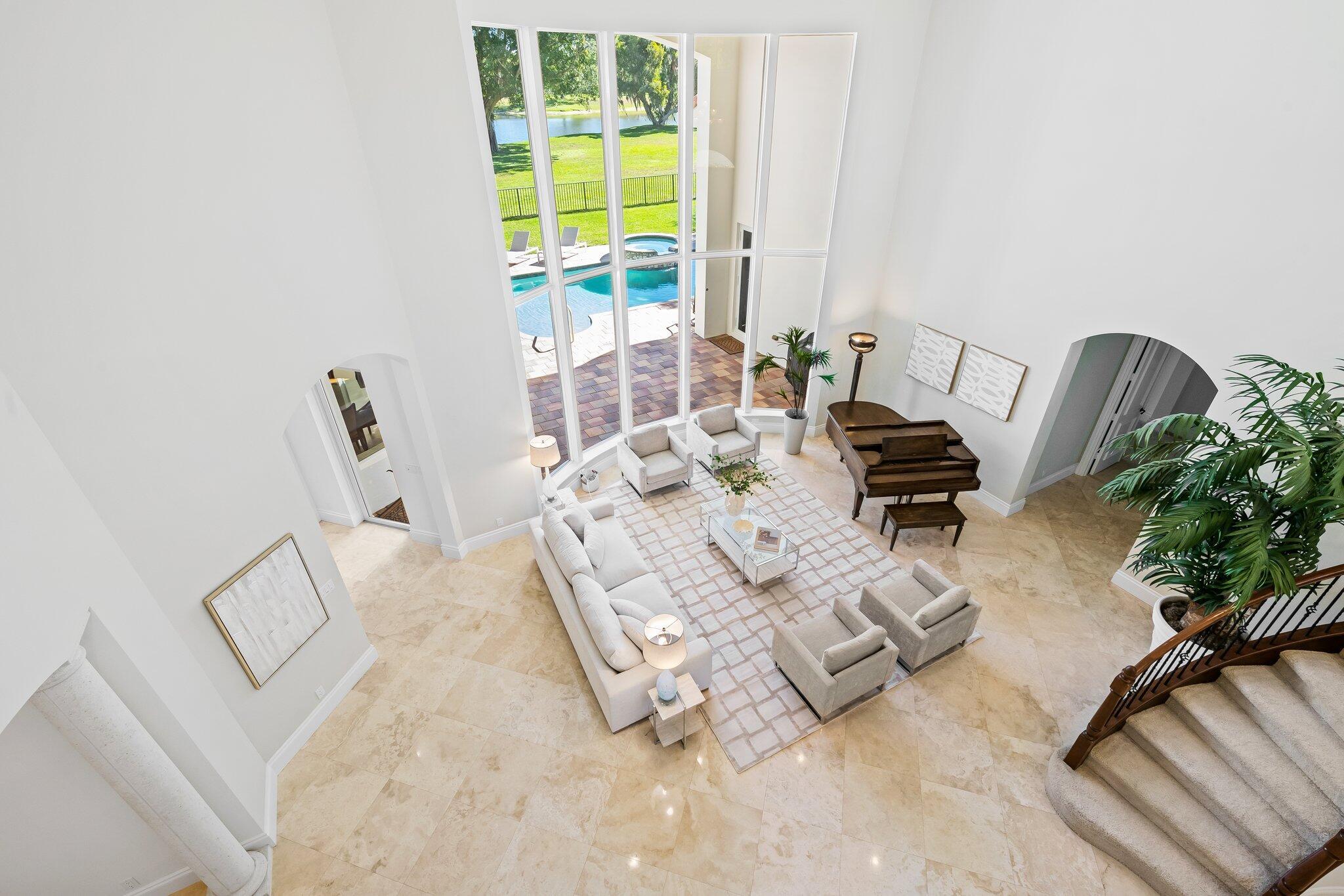Magnificent custom-built home on one of the best park and lake lots in the very desirable Boca Bath and Tennis Club. Stunning views through the floor to ceiling impact windows. 22 foot ceilings in the entry foyer and living room with expansive views of the park and main lake. Cooks kitchen opens to beautiful family room with views of the park, private salt water pool and spa. Primary suite has amazing view and two walk in closets, marble bathroom with two vanities, soaking tub, walk in shower and separate water closet. Guest suite downstairs plus office and media room, walk-in pantry, two 1/2 baths and stunning formal dining room. Upstairs there are 4 bedrooms, two marble bathrooms, huge loft and walk-in closets in every room. 3 car garage. Well built and well maintained. Must see!