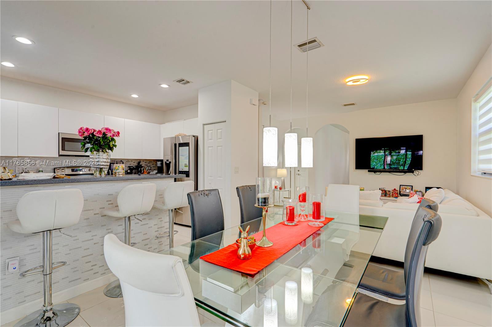 Welcome to this stunning 4-bed, 2.5-bath townhome in the highly sought-after gated community of Astoria at Grand Bay North in Doral. This beautifully home features a modern open-concept layout with a spacious living area, a sleek kitchen equipped with s/s appliances, quartz countertops, and an eat-in island, perfect for gatherings. The first floor boasts elegant tile flooring, while the upstairs features carpeting. Enjoy outdoor living in the covered paved patio with no back neighbors, ideal for entertaining and cooking. As a resident of Astoria, you'll have access to Doral’s largest and most exclusive clubhouses, featuring a resort-style pool, spa, fitness center, playground, splash park, basketball and more. Located near top-rated schools, shopping centers, dining, and major highways.