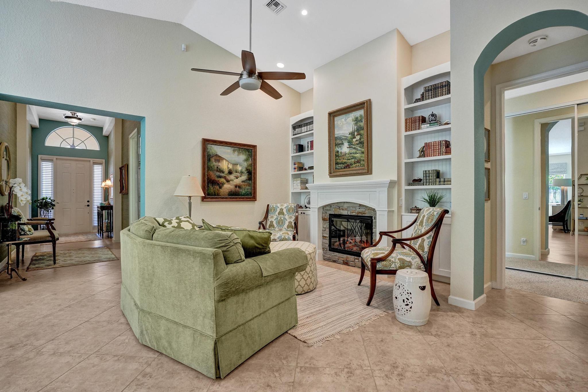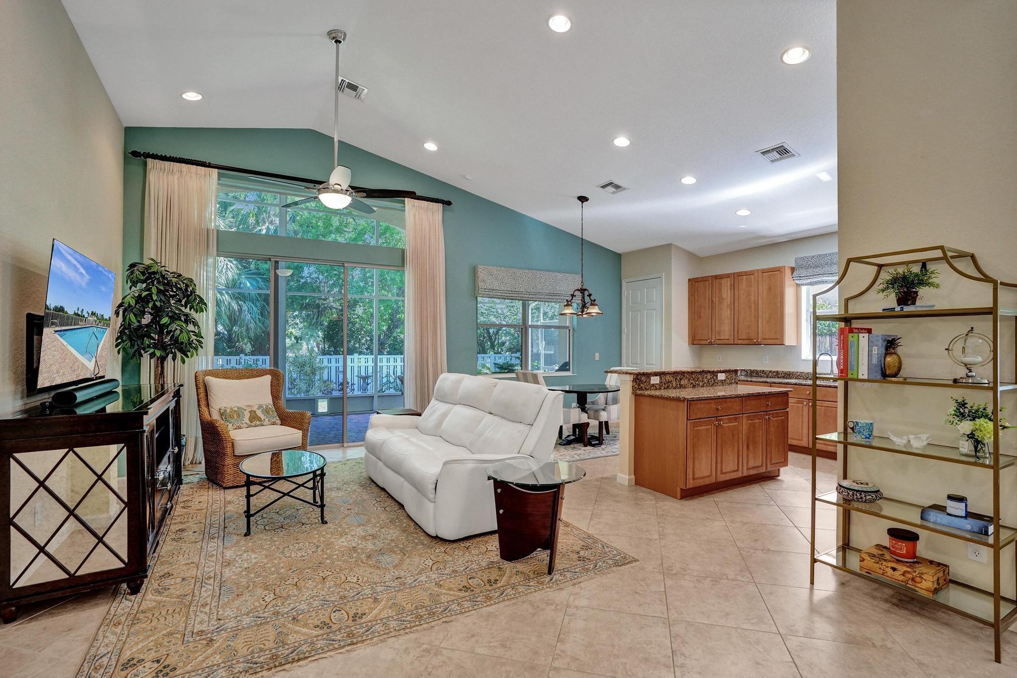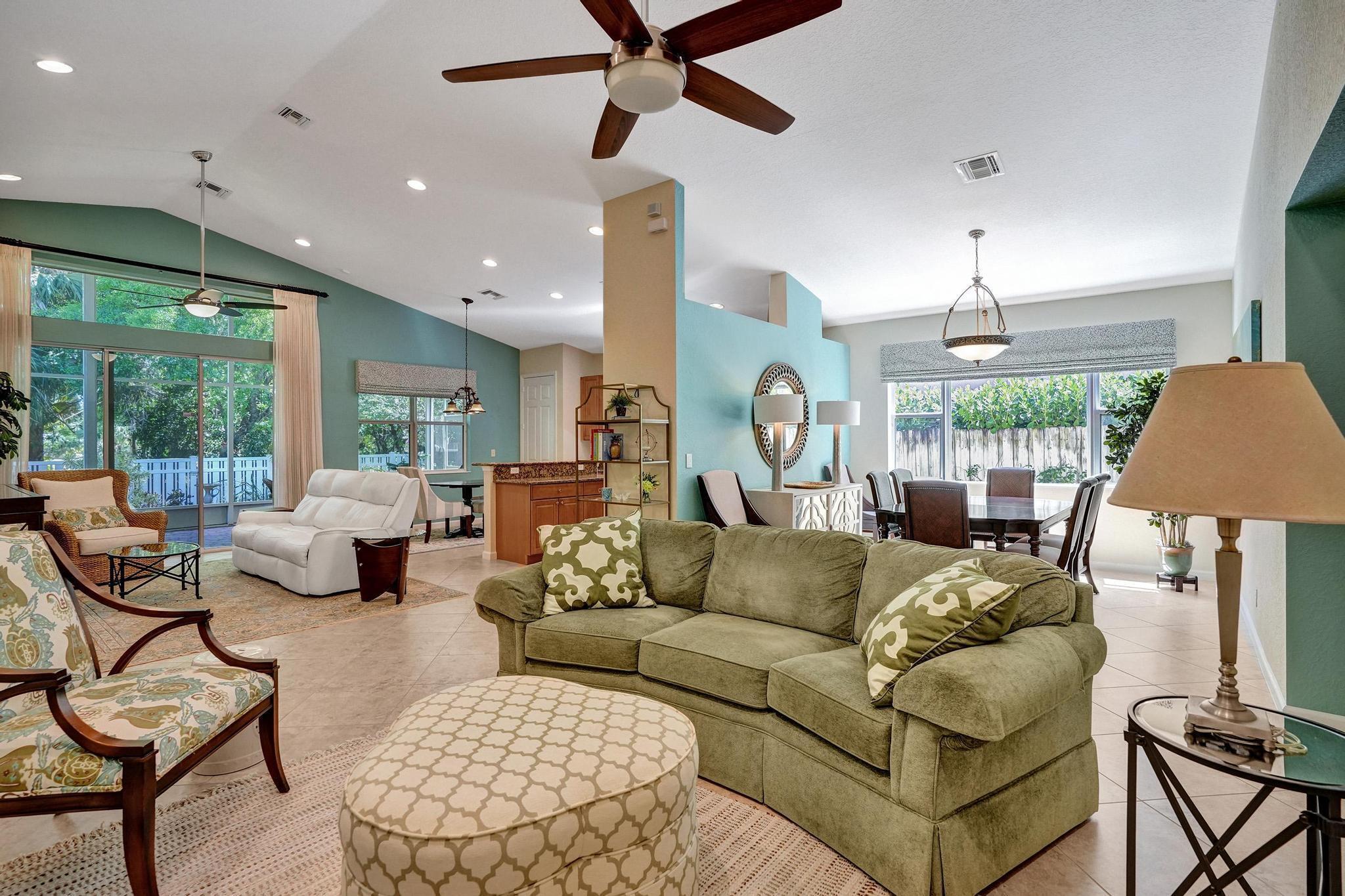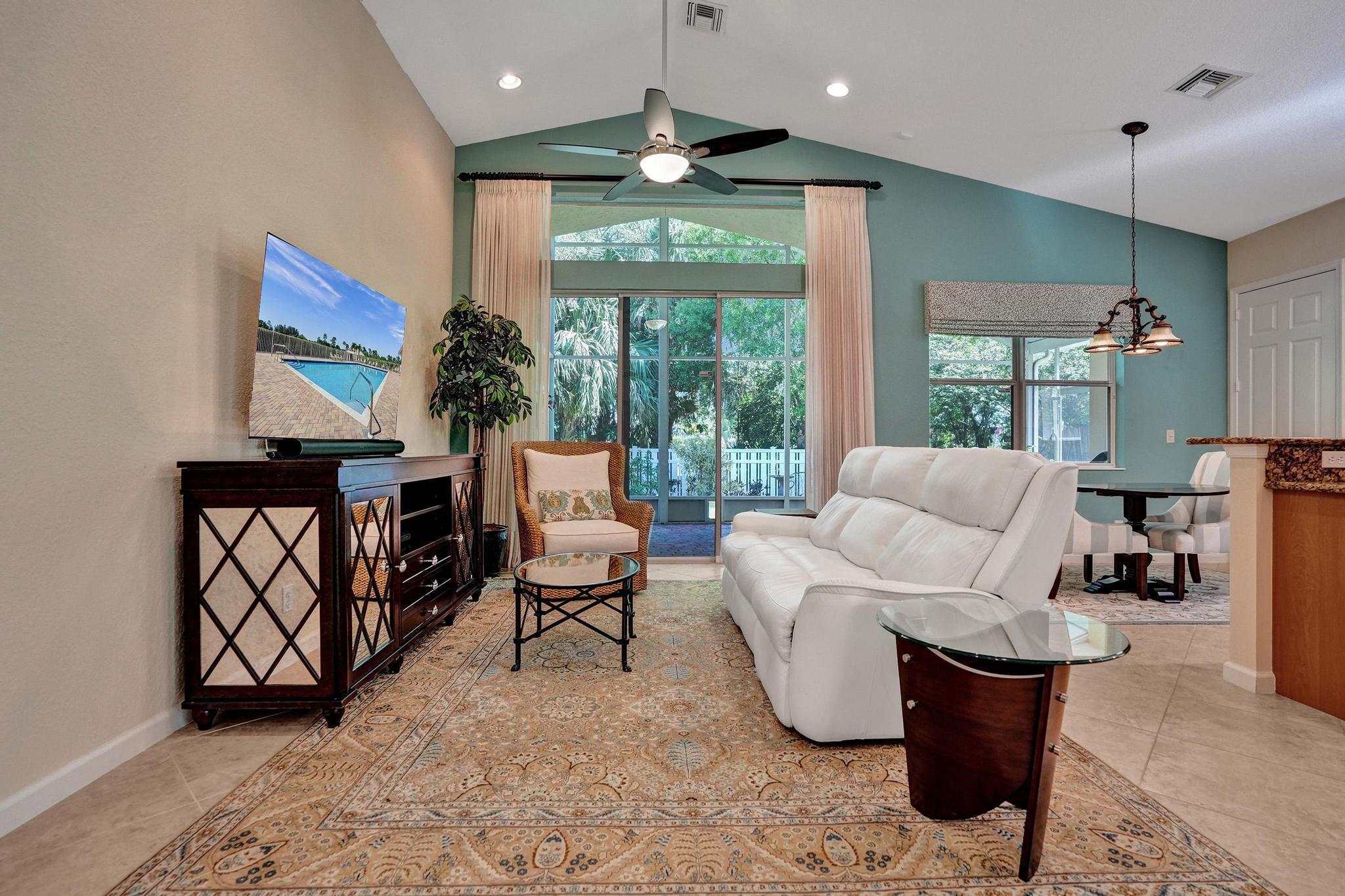 PRICE IMPROVEMENT NOW INCLUDES NEW TILE ROOF JUST COMPLTED, This beautifully maintained 3-bedroom, 2-bath CBS home offers 2,189 sq. ft. of living space with a split floor plan. Enjoy a spacious eat-in kitchen featuring granite countertops, stainless steel appliances, and ample cabinetry. The home boasts a formal dining room, living room, and family room, all with elegant 20-inch diagonal ceramic tile flooring .Soaring cathedral ceilings with a knockdown finish, crown molding, and custom blinds add a touch of sophistication. The primary suite includes a large walk-in closet and a luxurious en-suite bath with a separate shower and soaking tub. Step outside to a huge screened-in porch overlooking a fenced backyard with a sprinkler system on a well.