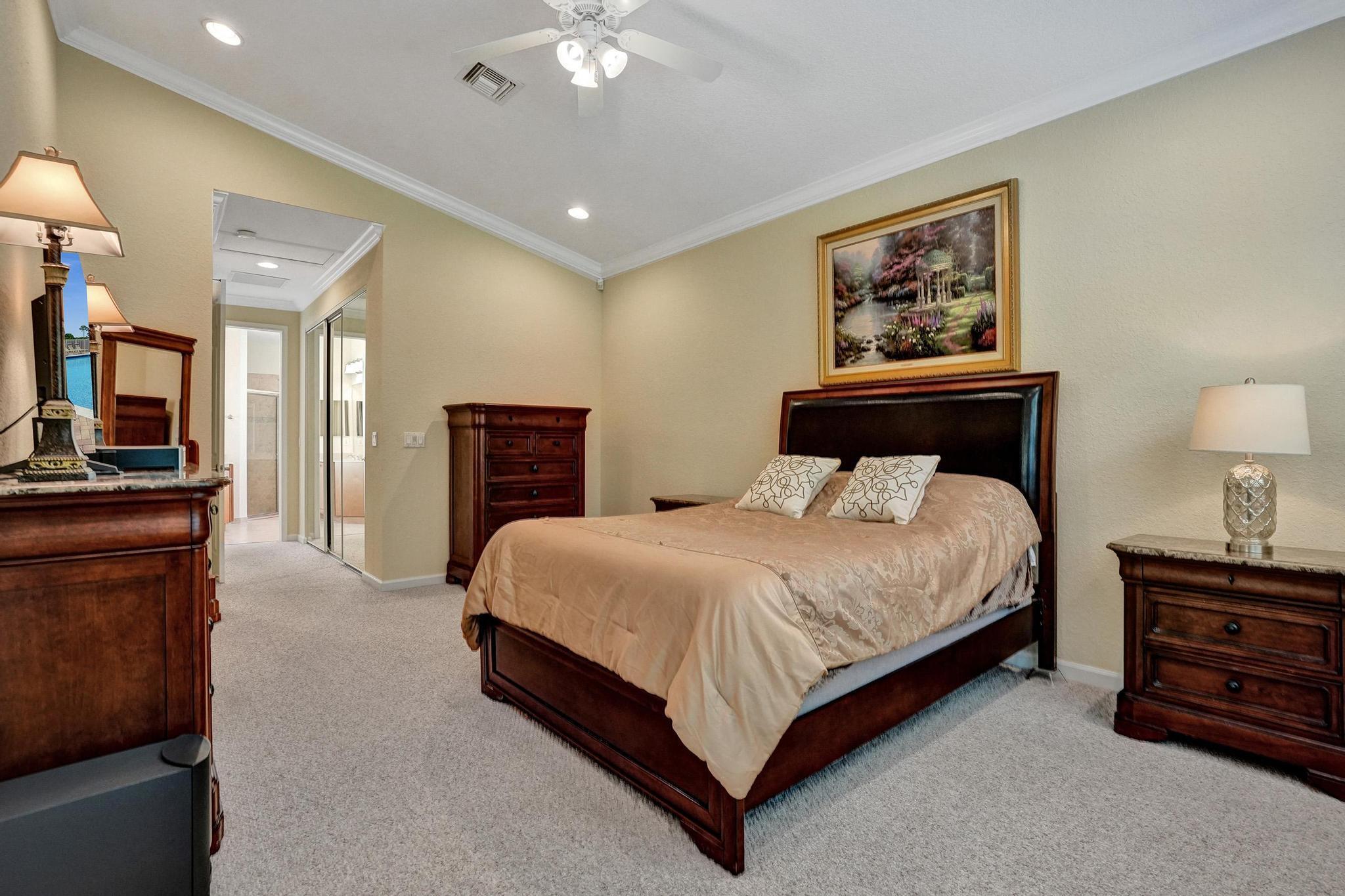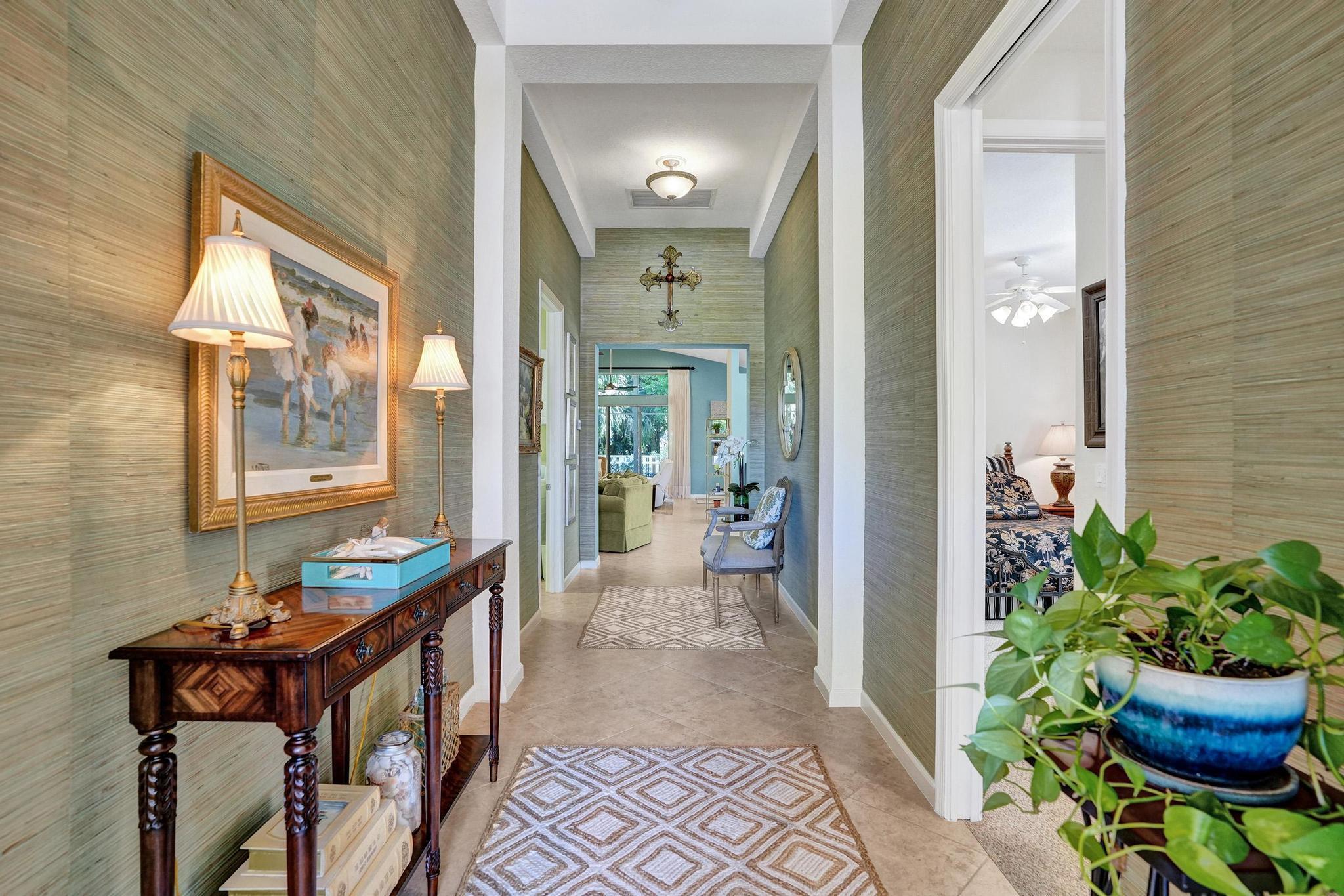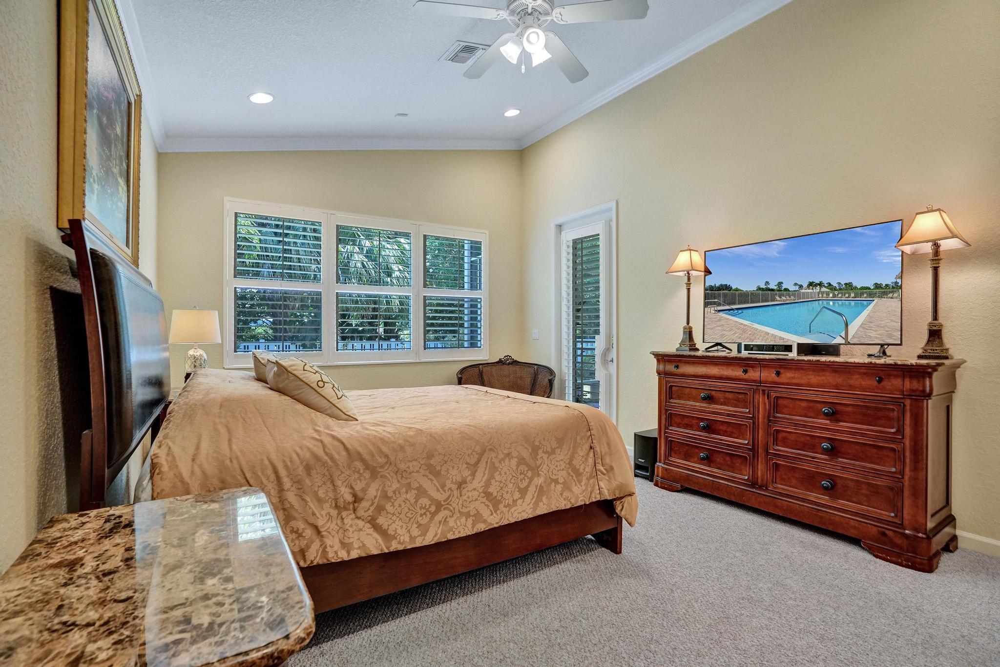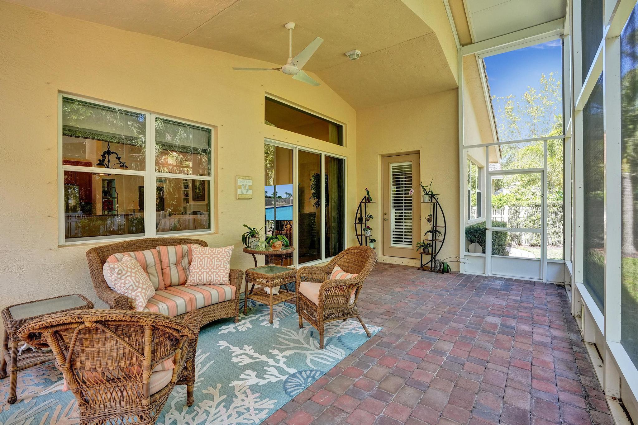 PRICE IMPROVEMENT NOW INCLUDES NEW TILE ROOF JUST COMPLTED, This beautifully maintained 3-bedroom, 2-bath CBS home offers 2,189 sq. ft. of living space with a split floor plan. Enjoy a spacious eat-in kitchen featuring granite countertops, stainless steel appliances, and ample cabinetry. The home boasts a formal dining room, living room, and family room, all with elegant 20-inch diagonal ceramic tile flooring .Soaring cathedral ceilings with a knockdown finish, crown molding, and custom blinds add a touch of sophistication. The primary suite includes a large walk-in closet and a luxurious en-suite bath with a separate shower and soaking tub. Step outside to a huge screened-in porch overlooking a fenced backyard with a sprinkler system on a well.