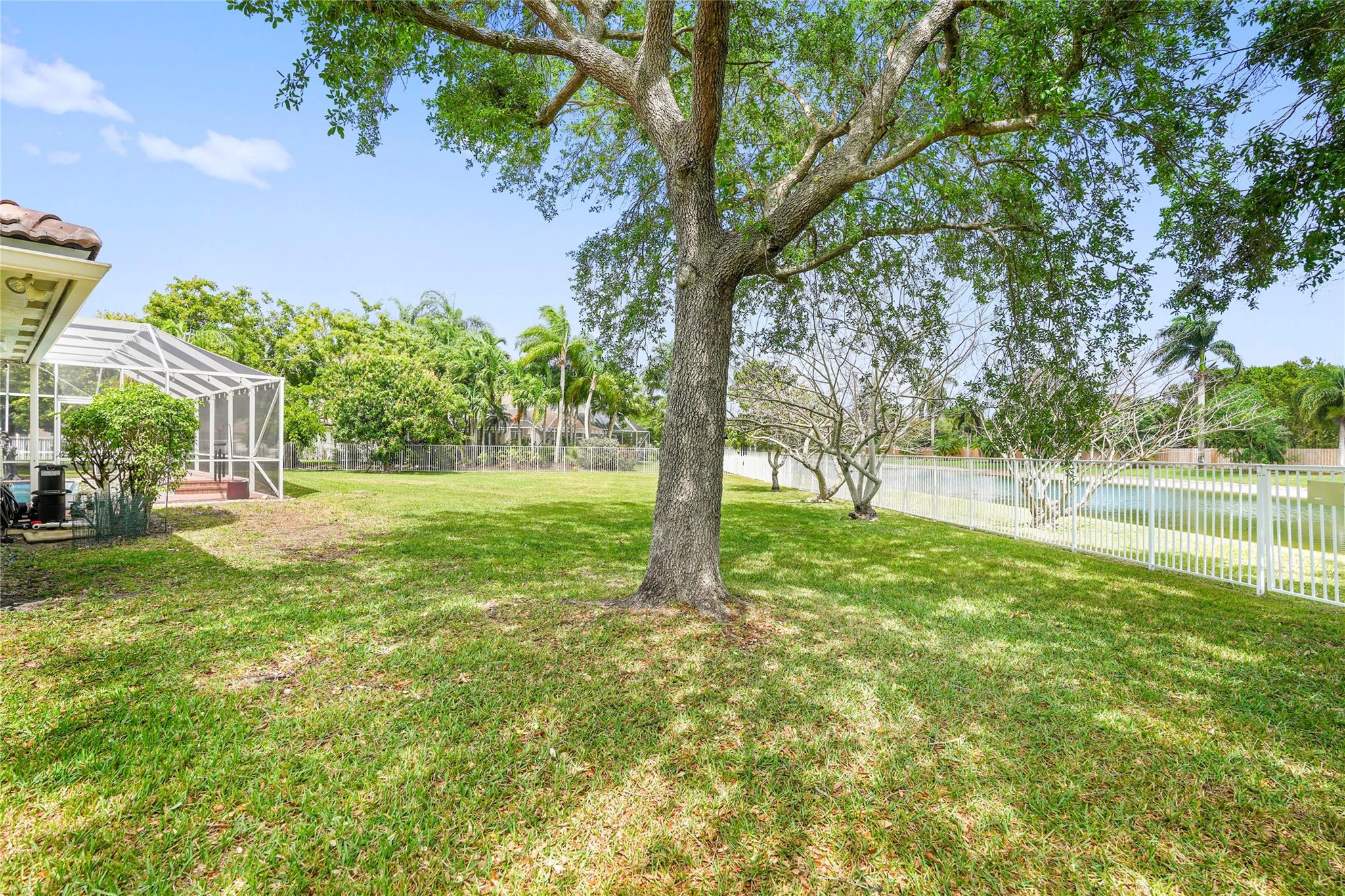 Spacious & elegant 5 BR/3.5BA home on oversized 1/2 acre + lot in prestigious gated community. Features new 2024 roof, hurricane-impact glass w grand entry door. Inside, enjoy volume ceilings, tile floors, formal living/dining w nearby 1/2 BA and a 23ft-ft family room that opens to an eat-in in kitchen w quartz counters, high-gloss cabinets and spacious pantry w counter bar. Private master suite w walk-in closets, spa style bath w tub & shower and adjoining 5th BR. A separate wing offers 2 BR's with shared bath & 1BR w adjacent cabana bath & laundry room. Outdoors, enjoy a screened patio, stone accented pool/spa & sun deck on one of the largest lots in the community. Newer AC's, 3 car garage w storage, big paver driveway. Walk to A rated elementary school. Well maintained HOA w low dues.
