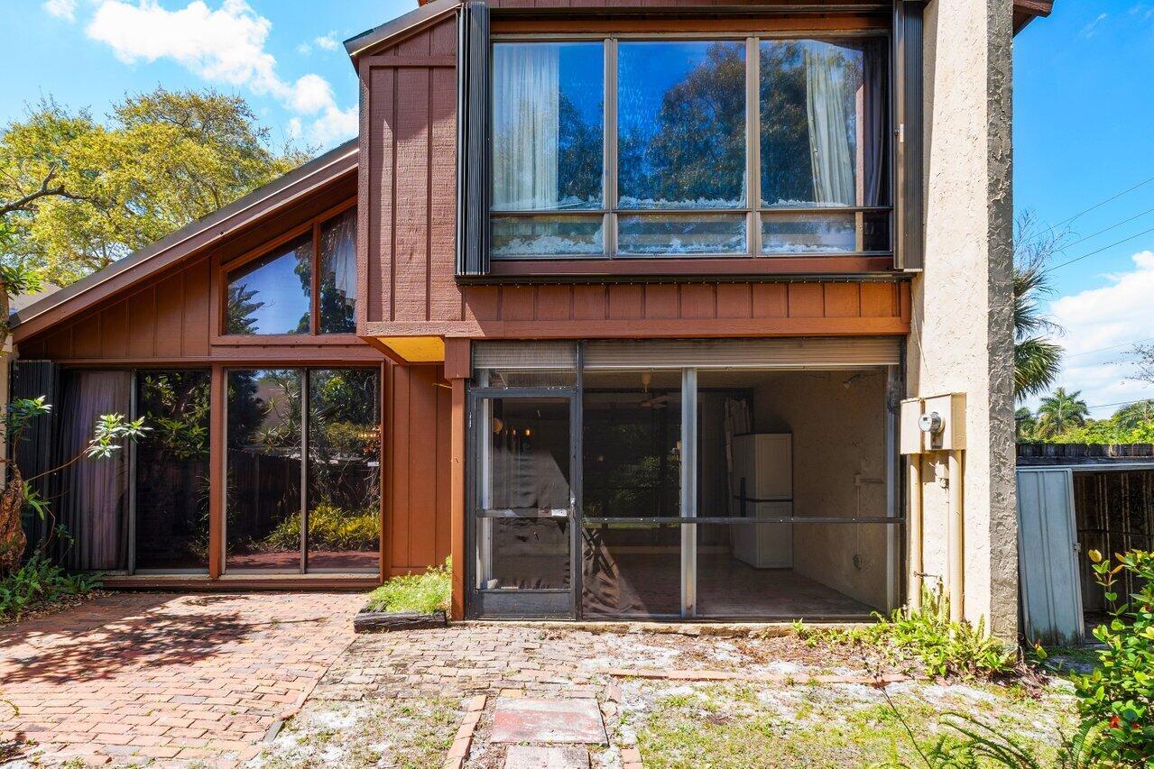 Welcome to your 3-bedroom, 2-bathroom townhome in The Lofts of Palm Aire! This spacious corner unit offers a rare opportunity with its private, fenced backyard and an inviting open floor plan. Floor-to-ceiling sliders fill the space with warm, natural light, while a striking stone fireplace serves as the perfect centerpiece. Stunning wood aligned vaulted ceilings and beams. The primary suite and loft are located upstairs, featuring a massive walkthrough closet leading to your own private sitting area. Enjoy the convenience of an in-unit laundry room with a full-sized washer and dryer. Step outside to a large screened-in patio overlooking a beautifully landscaped Florida-style backyard. Additional features include newer Front door, AC 2021, ample closets and accordion shutters.