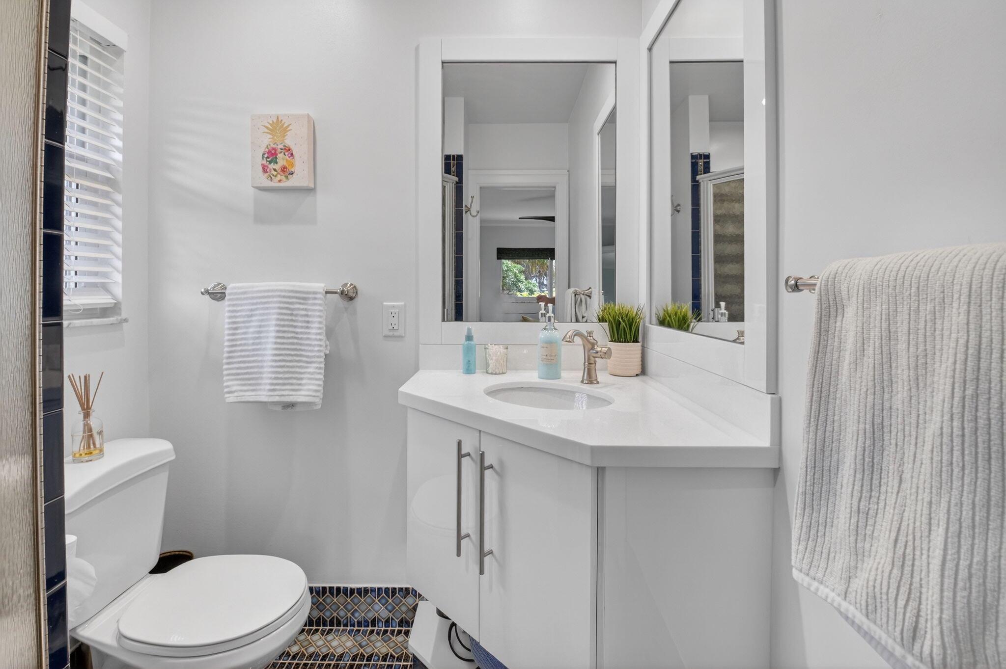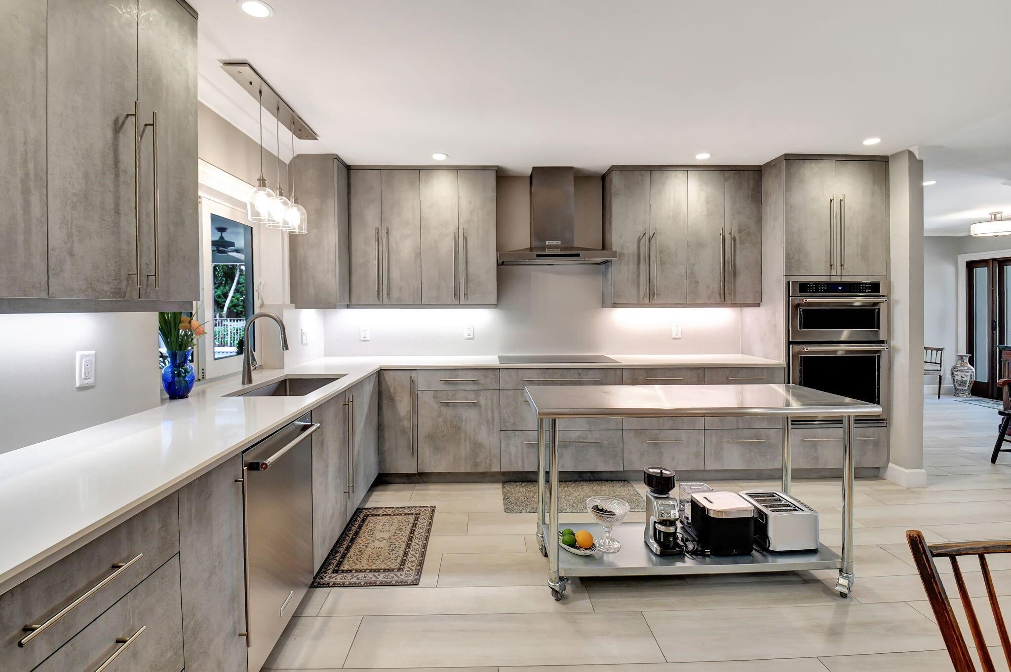 Welcome to this stunning 4-bedroom, 3.5-bathroom, 2-car plus golf cart garage, pool home nestled in the vibrant private country club of Delray Dunes. Boasting a rare blend of elegance, functionality, and luxury, this residence has been meticulously renovated throughout, offering a plethora of upgrades and modern amenities. This home underwent a remodel featuring hurricane impact windows/doors, beautiful beach wood look Porcelain Tile flooring, custom baseboards, moldings and window treatments throughout. The kitchen is a chef's dream! It underwent a stunning transformation showcasing the euro leather finish cabinets, upgraded hardware and quartz countertops with an oversized kitchen island and Kitchenaid stainless steel appliances. The expansive master bedroom has custom built-ins and