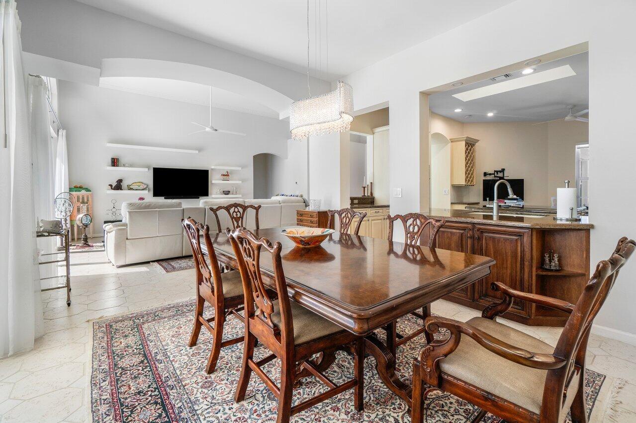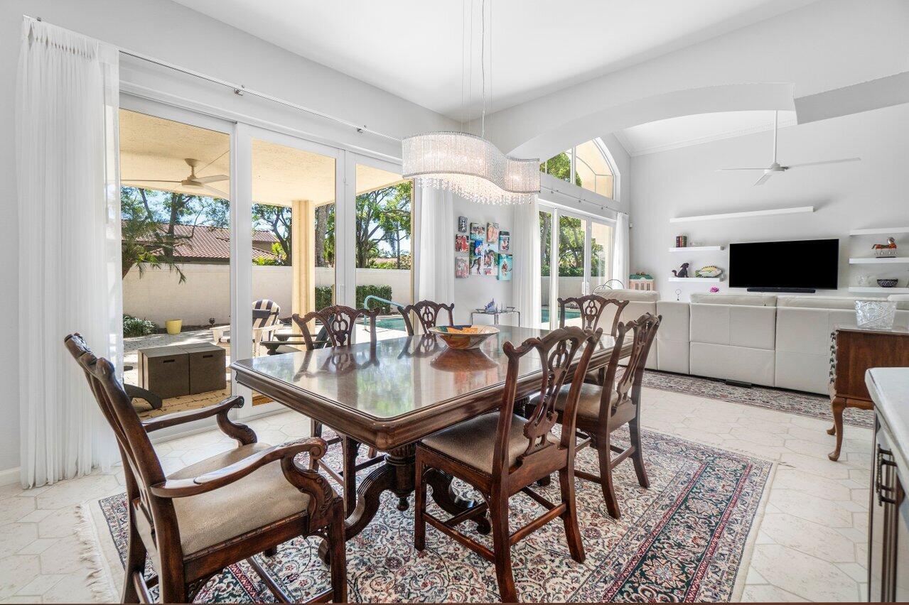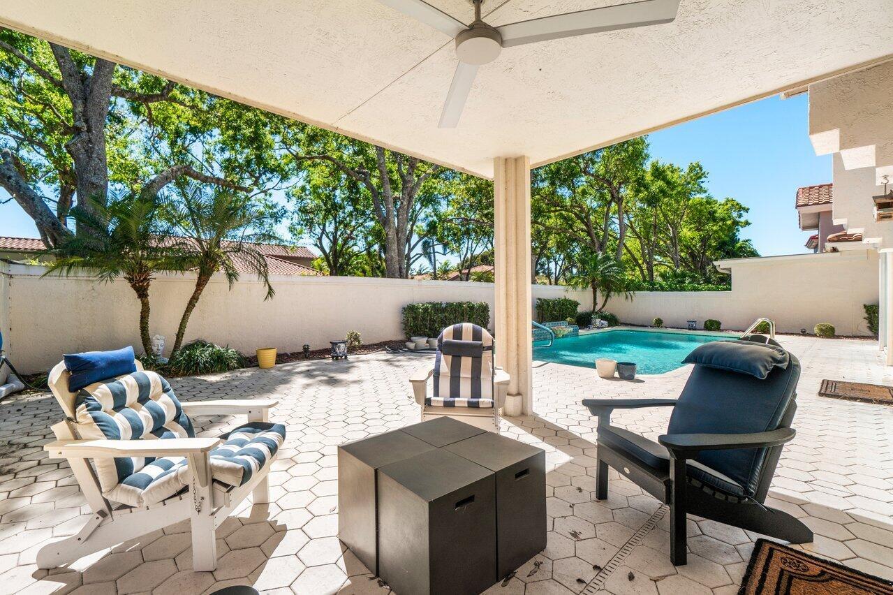 This light, bright, and spacious residence offers a haven of privacy and comfort in central Boca Raton. The single story property boasts 3 bedrooms and 3 full bathrooms and a triple-split plan, providing ample space for everyone.As you enter, you're greeted by the impressive great room with high vaulted ceilings and open views of the private pool and patio, creating an inviting atmosphere perfect for relaxation and entertainment. Step into the large eat-in kitchen, featuring an island and abundant cabinet and counter space, ideal for culinary adventures. There is a formal dining room perfect for dinner parties. There is plenty of storage space throughout, with large walk-in custom closets in 2 bedrooms. Relax and entertain in your private backyard oasis, complete with a heated pool