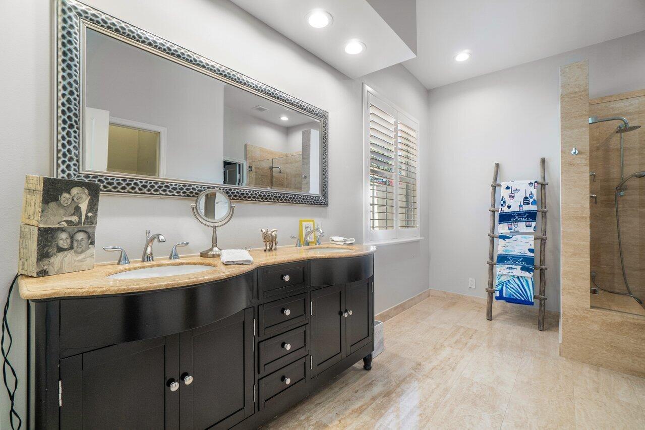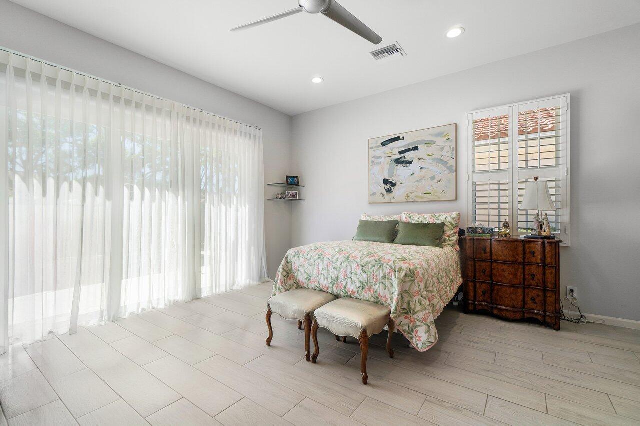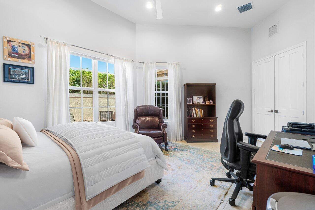 This light, bright, and spacious residence offers a haven of privacy and comfort in central Boca Raton. The single story property boasts 3 bedrooms and 3 full bathrooms and a triple-split plan, providing ample space for everyone.As you enter, you're greeted by the impressive great room with high vaulted ceilings and open views of the private pool and patio, creating an inviting atmosphere perfect for relaxation and entertainment. Step into the large eat-in kitchen, featuring an island and abundant cabinet and counter space, ideal for culinary adventures. There is a formal dining room perfect for dinner parties. There is plenty of storage space throughout, with large walk-in custom closets in 2 bedrooms. Relax and entertain in your private backyard oasis, complete with a heated pool