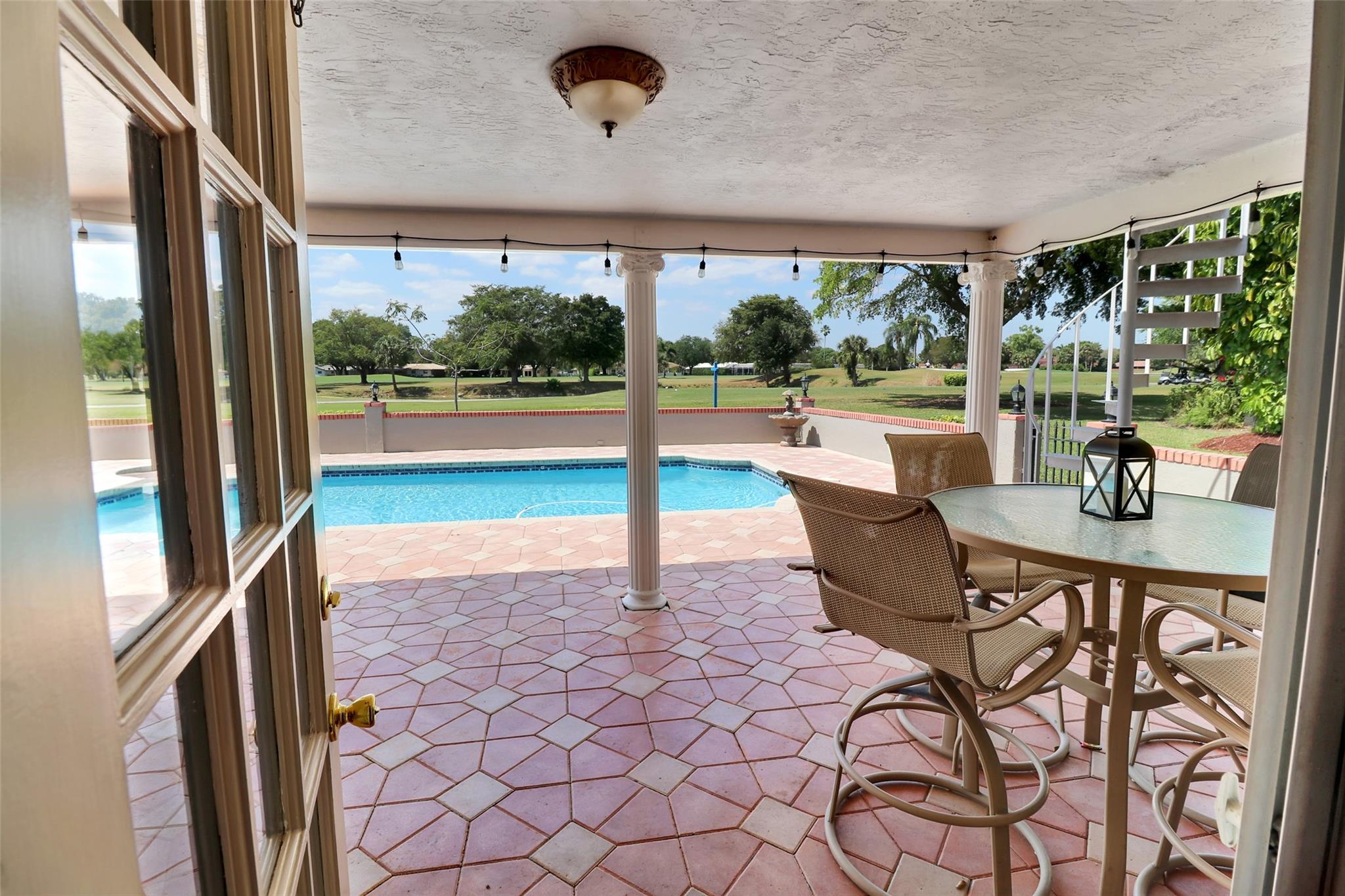 PRICE IMPROVEMENT!! REDUCED $90K...!!This very CHARMING 4/3.5 pool home is located in the highly desirable Coral Springs Country Club, situated right ON the GOLF COURSE! NO HOA! Wood simulated tile and carpet. Lg living area with stone fireplace. French doors. Lg kitchen which leads to a very cute tea rm/dining rm. Kitchen w/ lg granite Island, white appl, & plenty cabinet space. Master bdrm has lovely french doors leading to pool. Recently updated master bath. Lg 2,3,4 bedrm lots of closet space. 2nd bath tub & shower, recently updated. Large pool area has pavers and is as beautiful as it is calming. Child fence available. Spiral stairs lead to top deck overlooking the 3 hole & 3 others, Crown moulding & fans throughout the home. Close to all things the City Of Coral Springs has to offer.