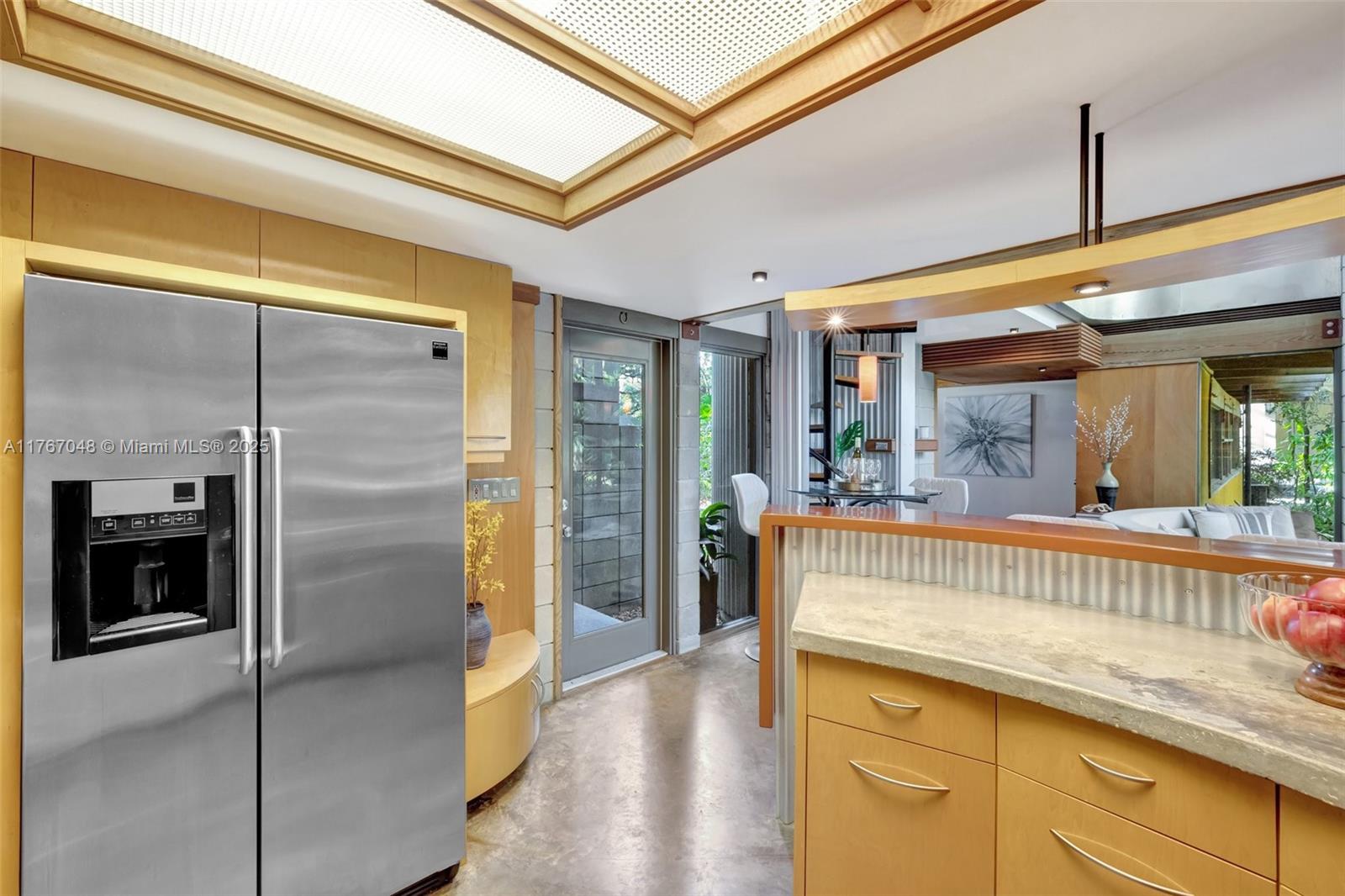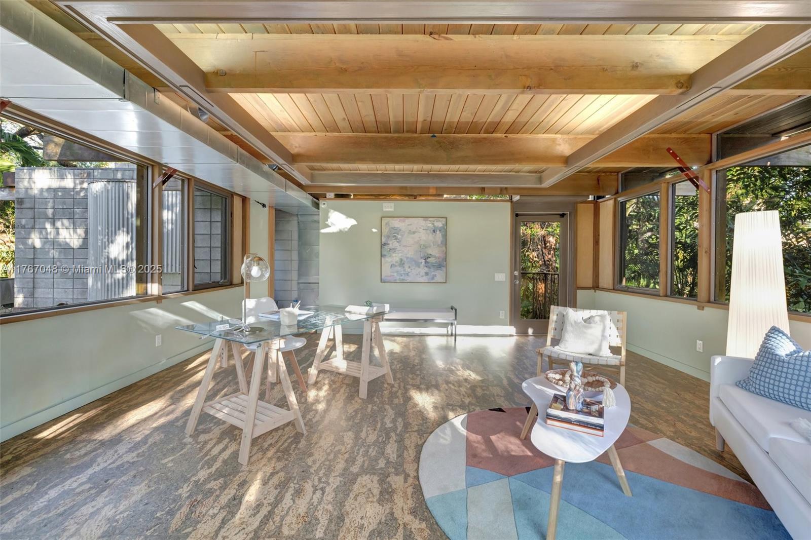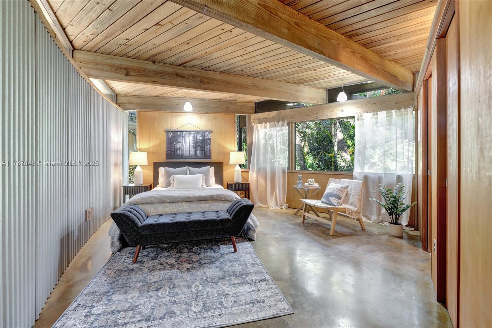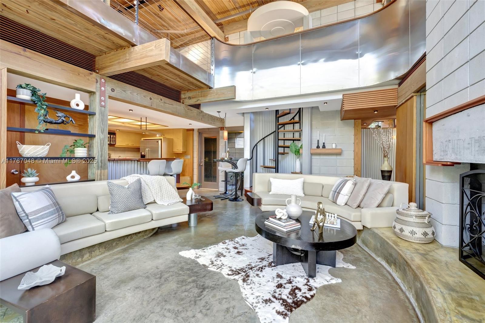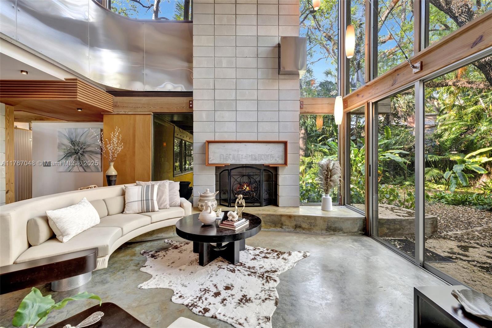 "The Fox Den," an architectural masterpiece by Scott DiStefano, blends contemporary design with organic materials in the Frank Lloyd Wright tradition. This 4-bedroom, 3.5-bath home sits on a 10,500 sq ft wooded lot in Riverland Woods. Features include exposed concrete, timber framing, copper fascia, and stainless steel elements throughout. The versatile floor plan offers a loft space and attached studio/office with separate entrance. Custom built-ins and strategic windows frame views of the landscaped grounds. Distinguished by galvalum cladding and corrugated metal, the home boasts concrete floors and appliances. Located minutes from downtown Fort Lauderdale, this internationally recognized residence represents organic contemporary architecture at its finest.