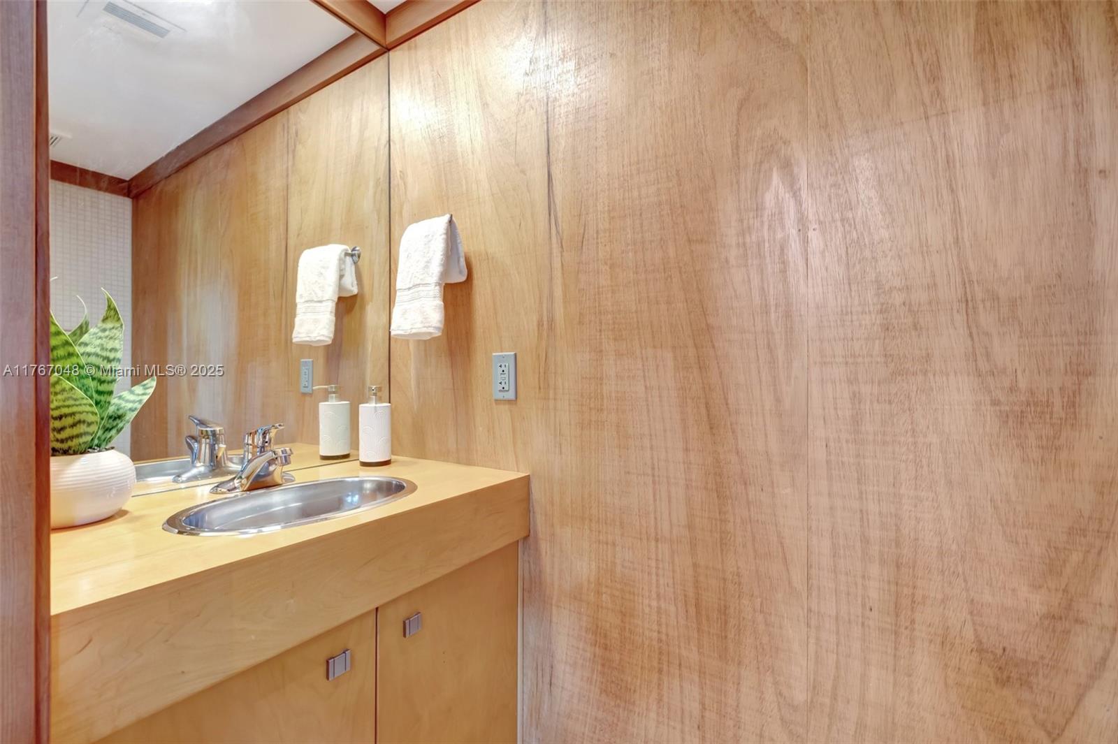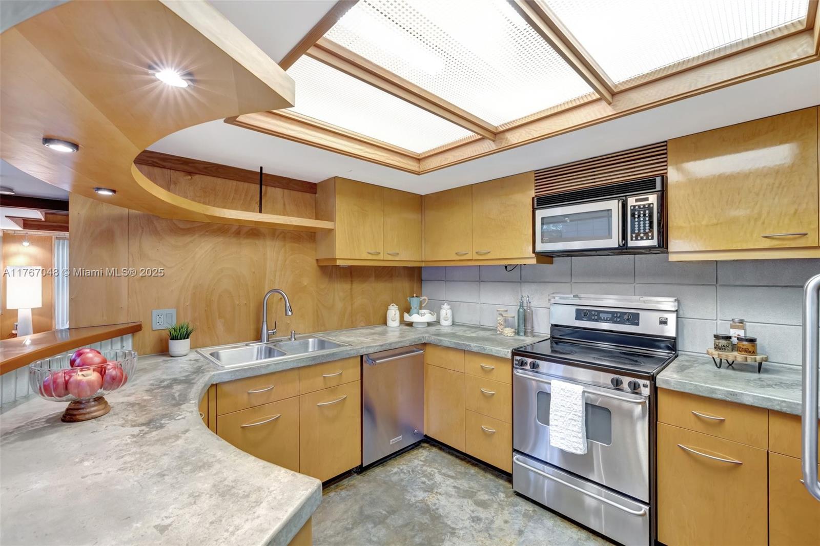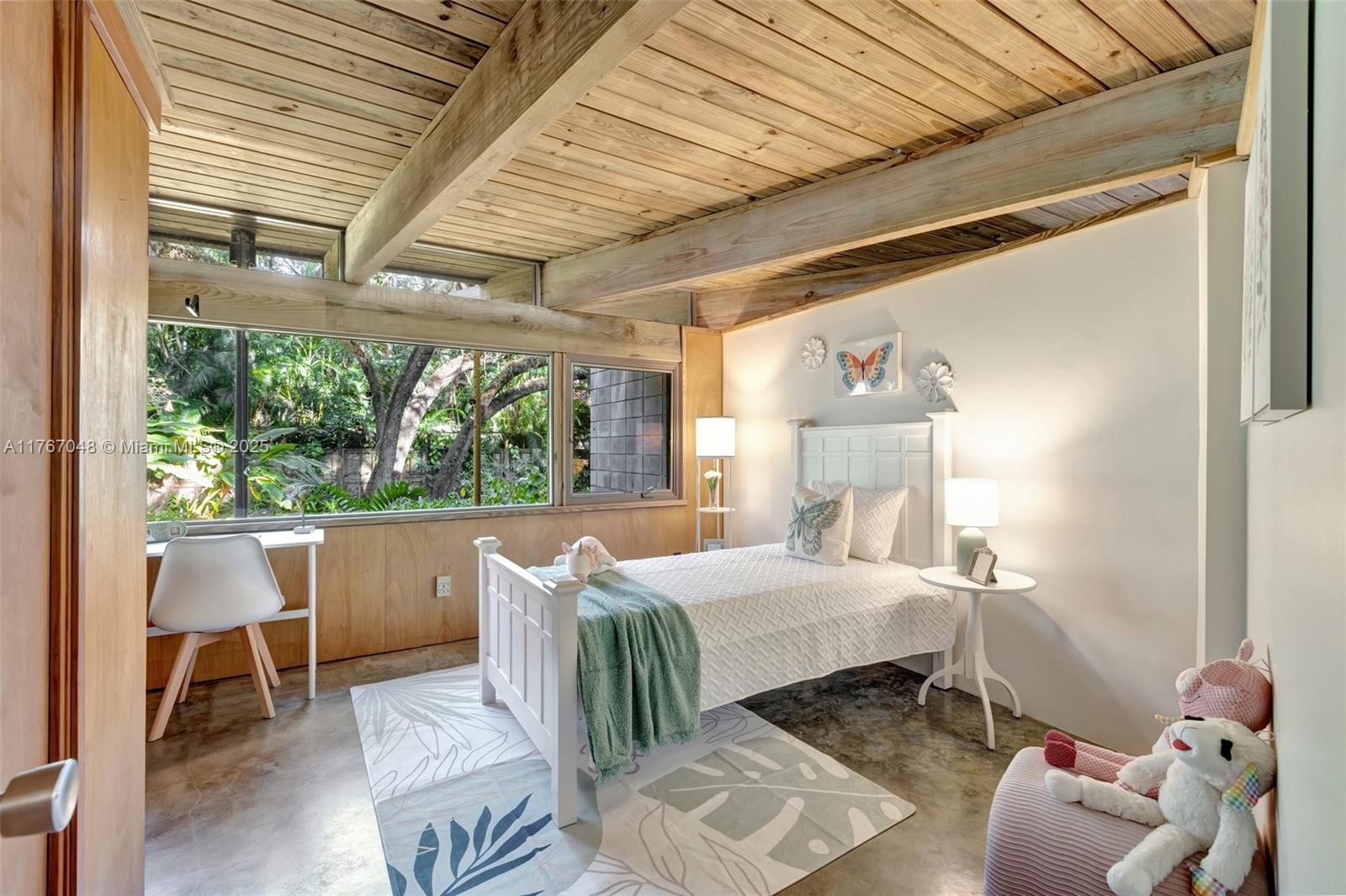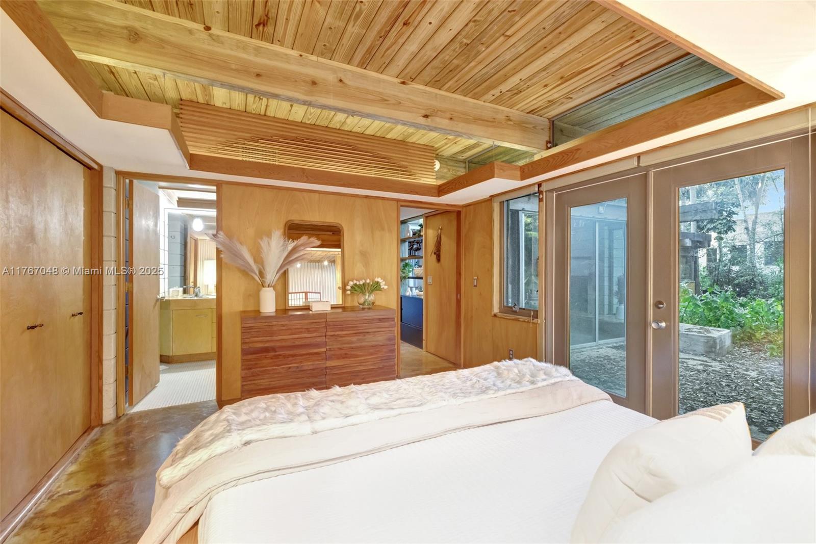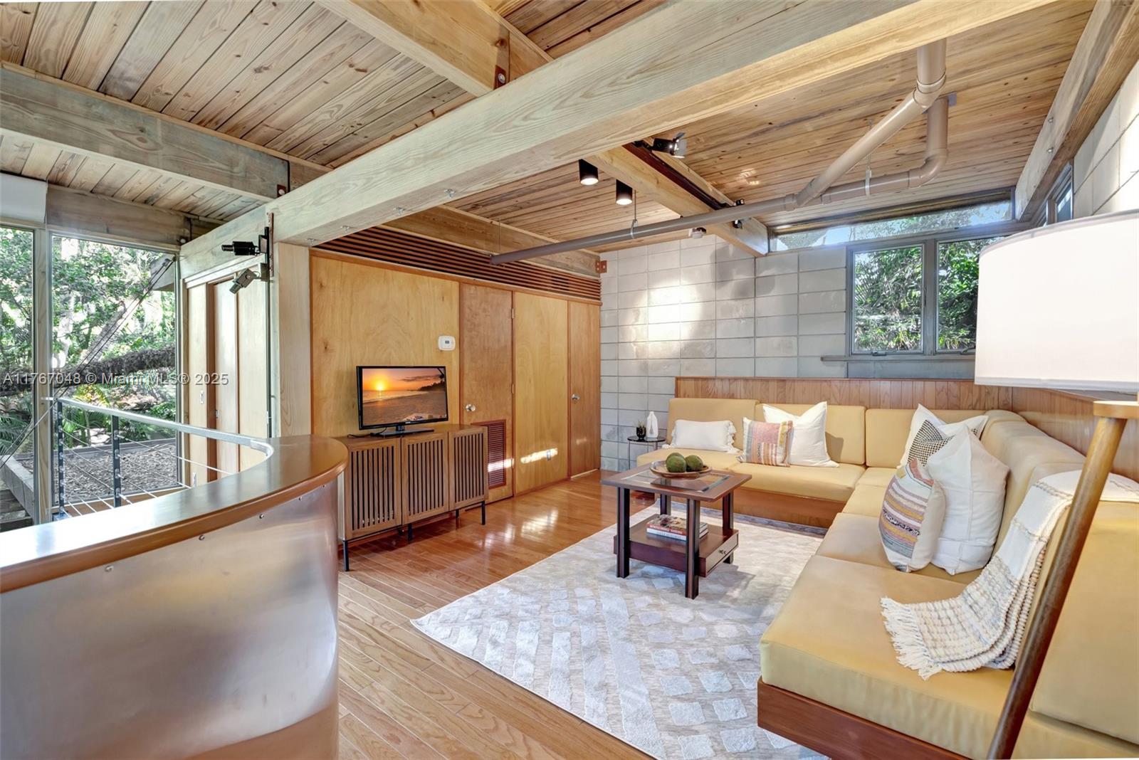 "The Fox Den," an architectural masterpiece by Scott DiStefano, blends contemporary design with organic materials in the Frank Lloyd Wright tradition. This 4-bedroom, 3.5-bath home sits on a 10,500 sq ft wooded lot in Riverland Woods. Features include exposed concrete, timber framing, copper fascia, and stainless steel elements throughout. The versatile floor plan offers a loft space and attached studio/office with separate entrance. Custom built-ins and strategic windows frame views of the landscaped grounds. Distinguished by galvalum cladding and corrugated metal, the home boasts concrete floors and appliances. Located minutes from downtown Fort Lauderdale, this internationally recognized residence represents organic contemporary architecture at its finest.