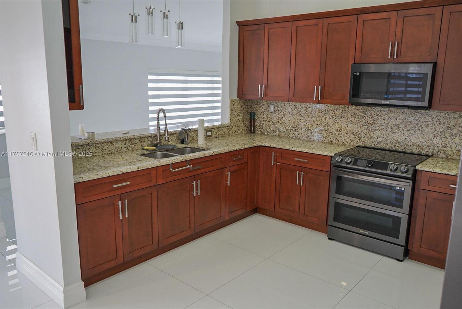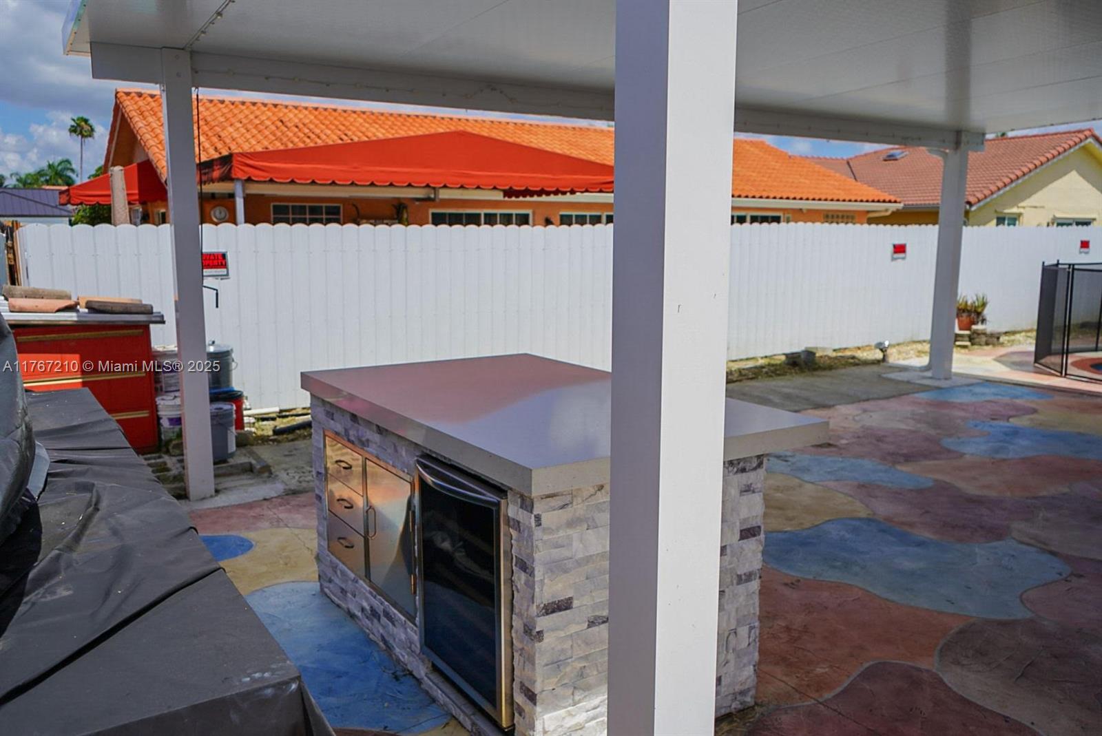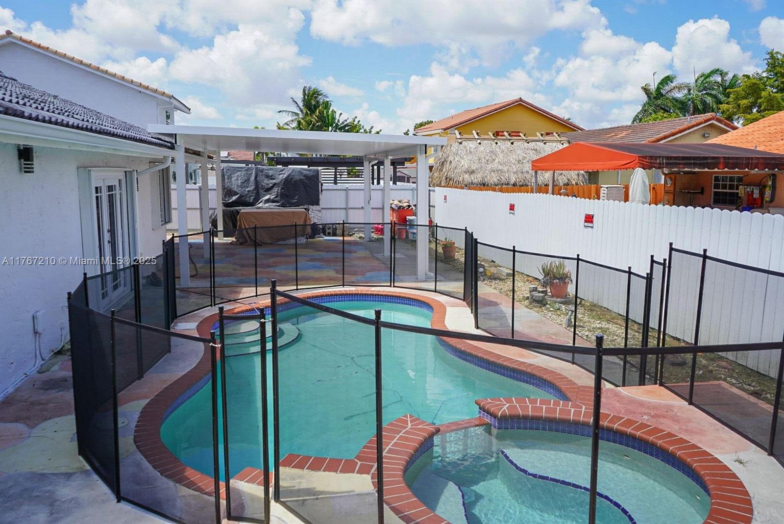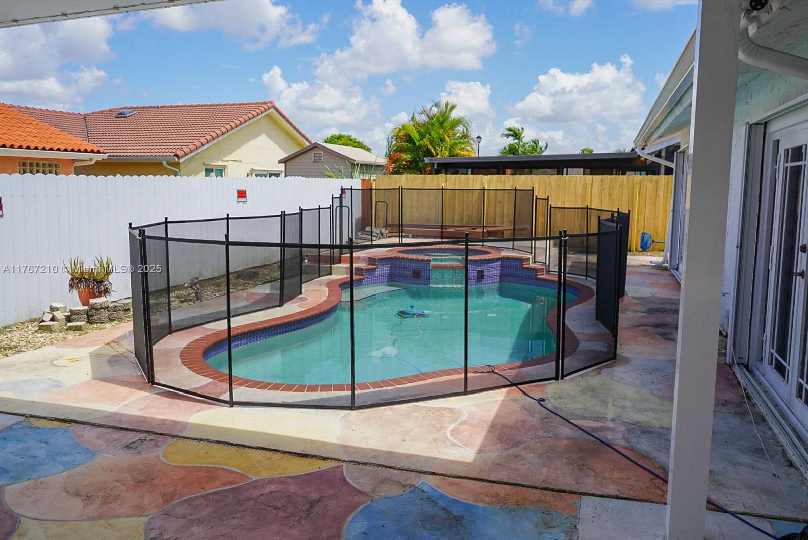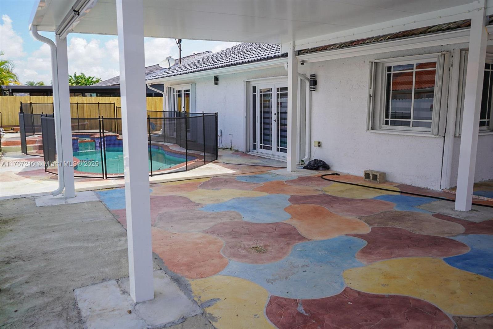 This stunning property has been completely remodeled to offer an impeccable contemporary design. Featuring 3 spacious bedrooms and 2 fully bathrooms, this home is adorned with crown moldings and showcases stunning 24x24 white porcelain tiles throughout, including in the attached 2-car garage. The upgraded kitchen boasts sleek finishes, new light fixtures, and remote-control window shades, enhancing the home’s modern elegance. The circular driveway adds convenience and charm. The outdoor area is an oversized oasis, custom-designed for Miami's year-round sunny enjoyment. Highlights include an illuminated pool, and covered terraces, providing the perfect setting for relaxation and entertaining. Don't miss this incredible opportunity to experience luxurious living in this one-of-a-kind home!