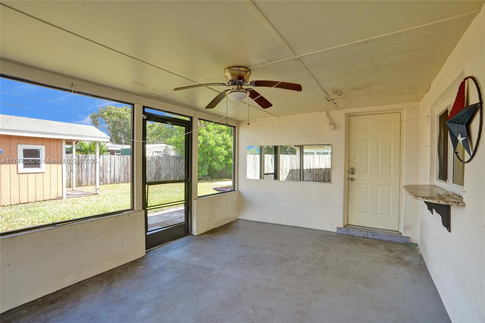 Welcome to this charming home nestled in a quiet neighborhood in Pembroke Pines! This lovely home features a circular driveway providing ample parking for you and your guests. Step inside to discover an upgraded newer flooring in the bedrooms and beautifully remodeled bathroom. The newer kitchen complete with a pantry and over looking the screened patio. A versatile multi use room awaits, ideal for an office, playroom, bedroom or what ever suits your lifestyle. Natural light floods the space, creating a bright and peaceful ambiance throughout. Another highlight is storage shed and a charming she shed equipped with AC and wood flooring. A full size laundry room and is hurricane protected.