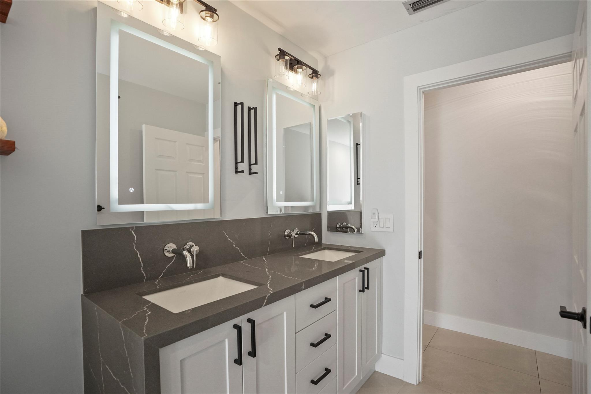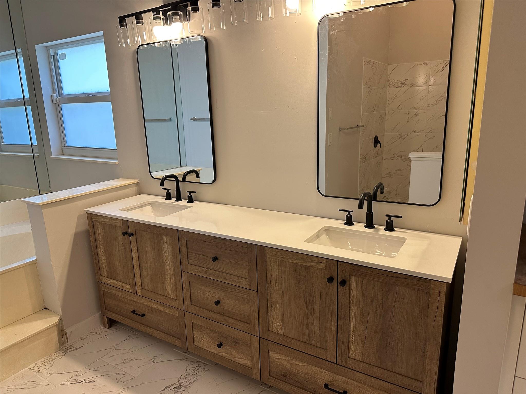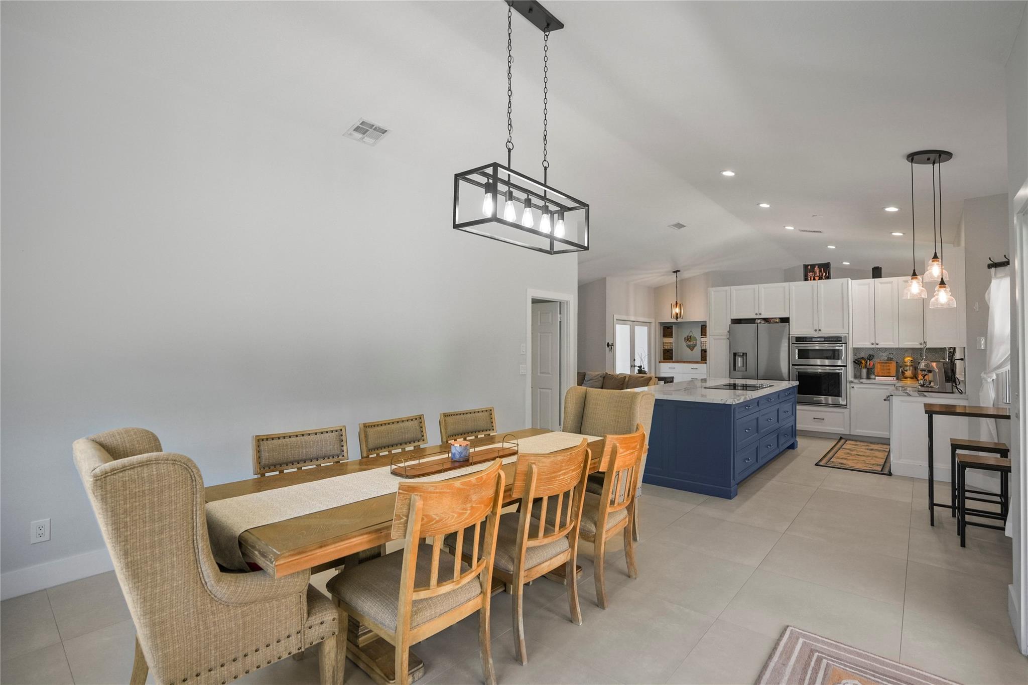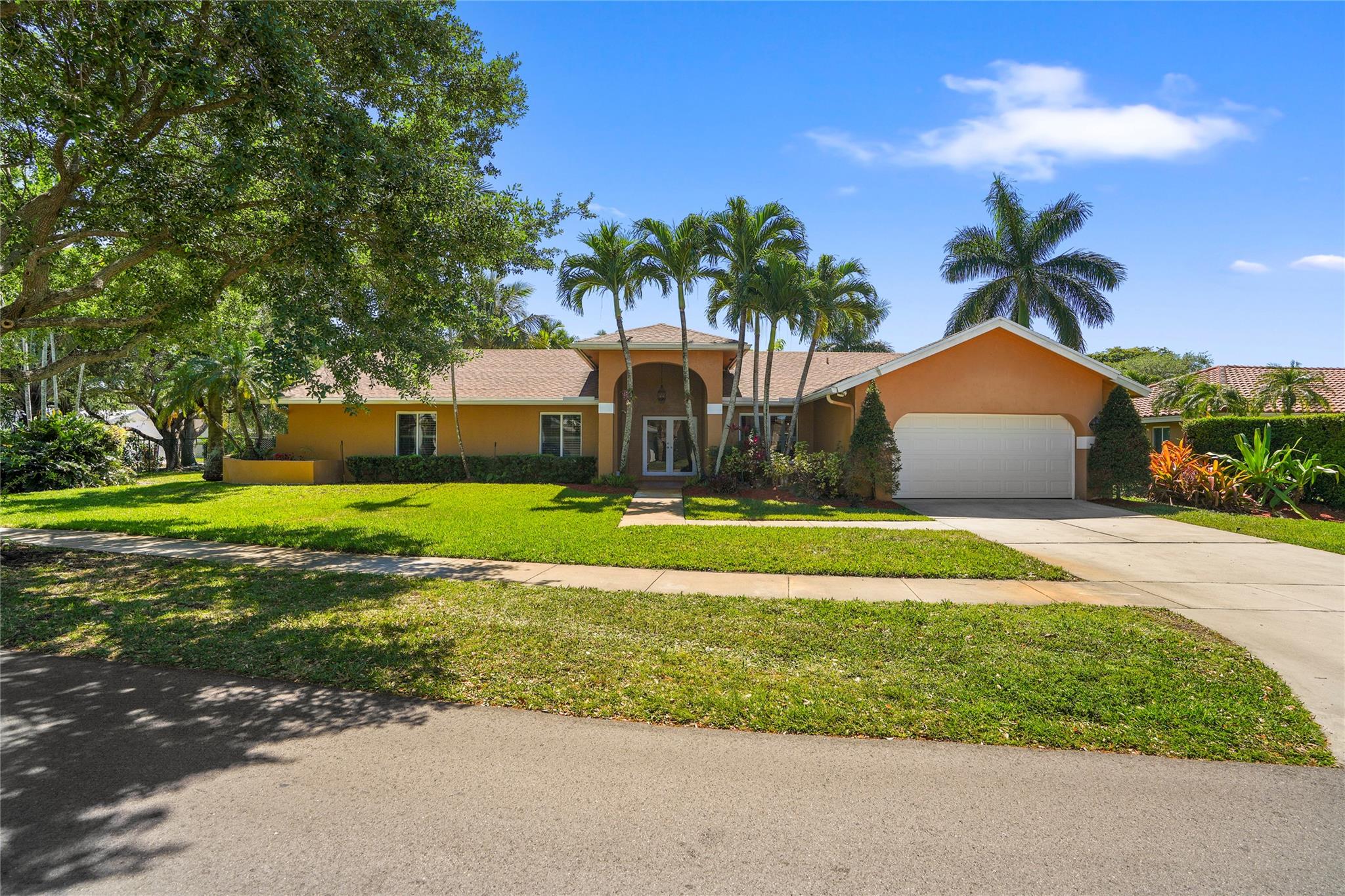 This modern style 3-bed, 2-bath ranch in Pasadena Estates sits on an oversized 1/3+ acre corner lot. Enjoy an open layout with vaulted ceilings, large-format tile, and northern exposure. It features formal dining, a living room with a fireplace, and a family room. The new farmhouse kitchen boasts white shaker cabinets, a blue island with a cooktop, quartz countertops, and stainless steel appliances. The master suite offers a walk-in closet and new bath. Two spacious bedrooms share an updated cabana bath. Outside, a screened patio overlooks a tropical pool, paver sun deck, and large fenced yard. Additional features include a large laundry room, impact windows/doors, new AC, newer fencing, and a 2015 roof. Top-rated schools are nearby