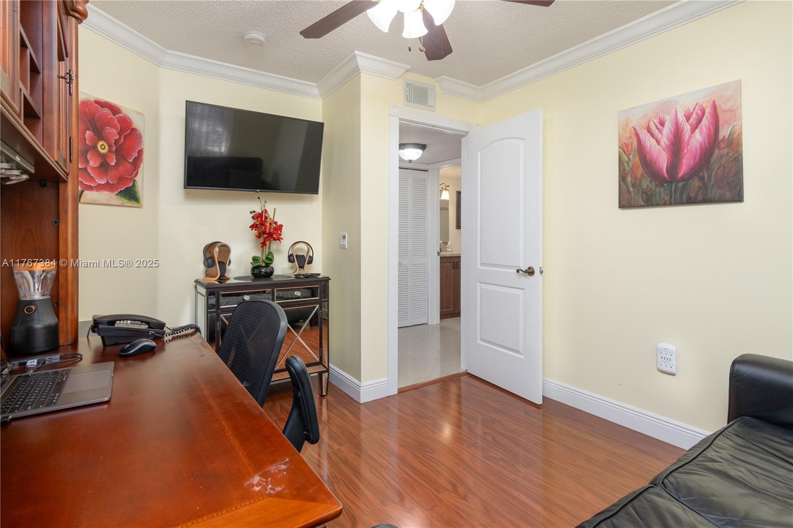 This beautifully maintained townhouse in Pembroke Pines offers 3 spacious bedrooms and 2 full bathrooms, with a total of 1,024 square feet of comfortable living space. Located on the ground floor, it features a charming garden view that enhances the peaceful atmosphere. Inside, the unit is designed with a combination of laminate and tile floors, ensuring easy maintenance. The kitchen is equipped with essential appliances, including a microwave, refrigerator, and washer. Enjoy the comfort of central heating and cooling throughout the unit. With parking space for up to two cars, convenience is key. The community offers an inviting environment and a variety of amenities, all while maintaining a pet-free policy. Make this cozy townhouse your next home!