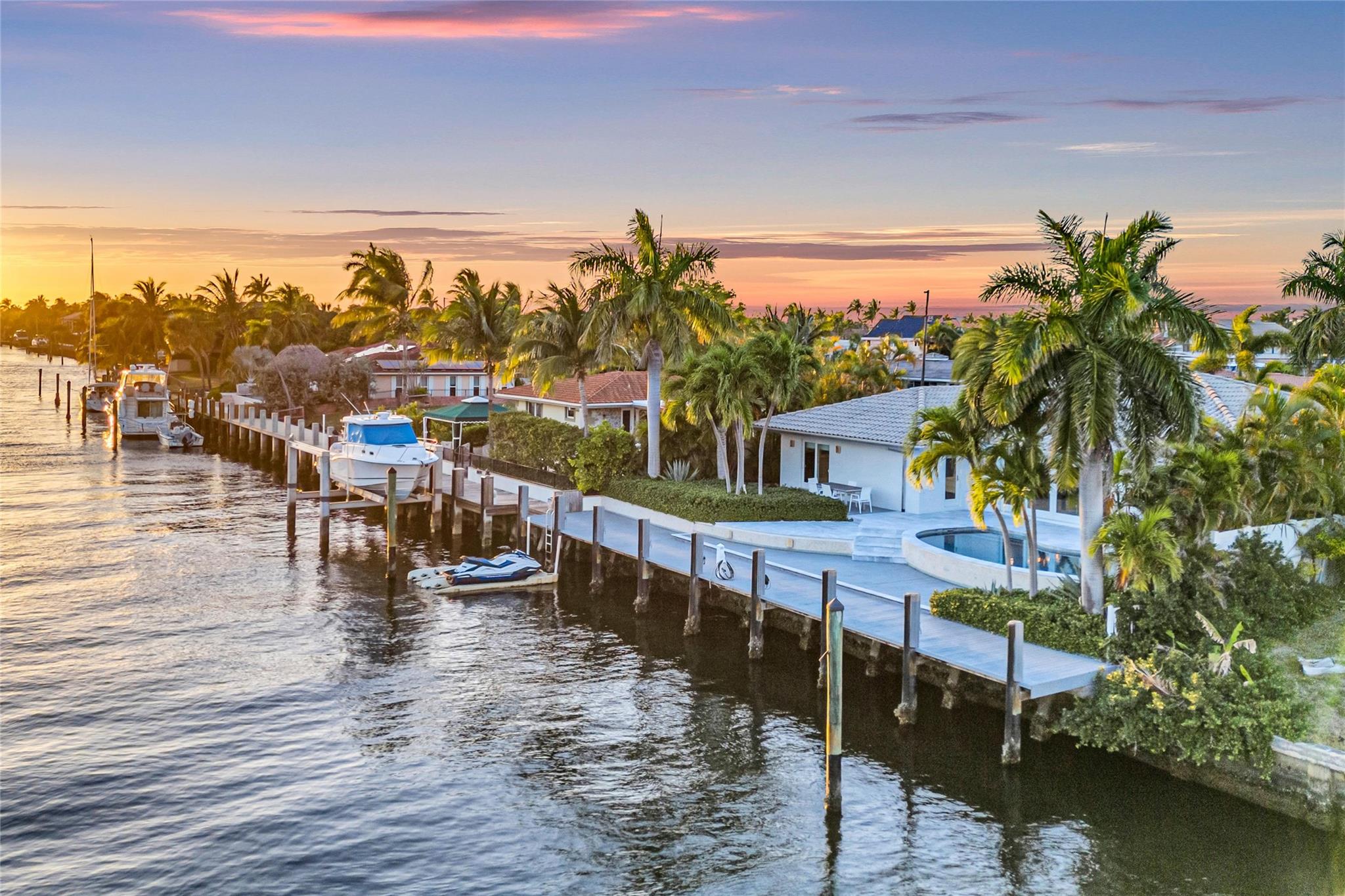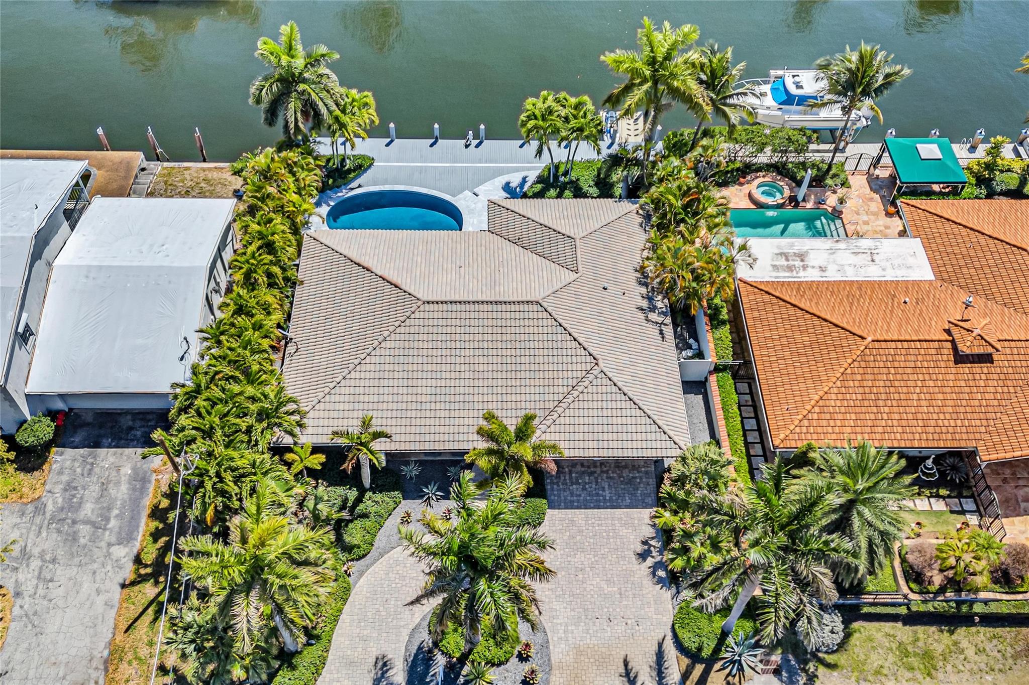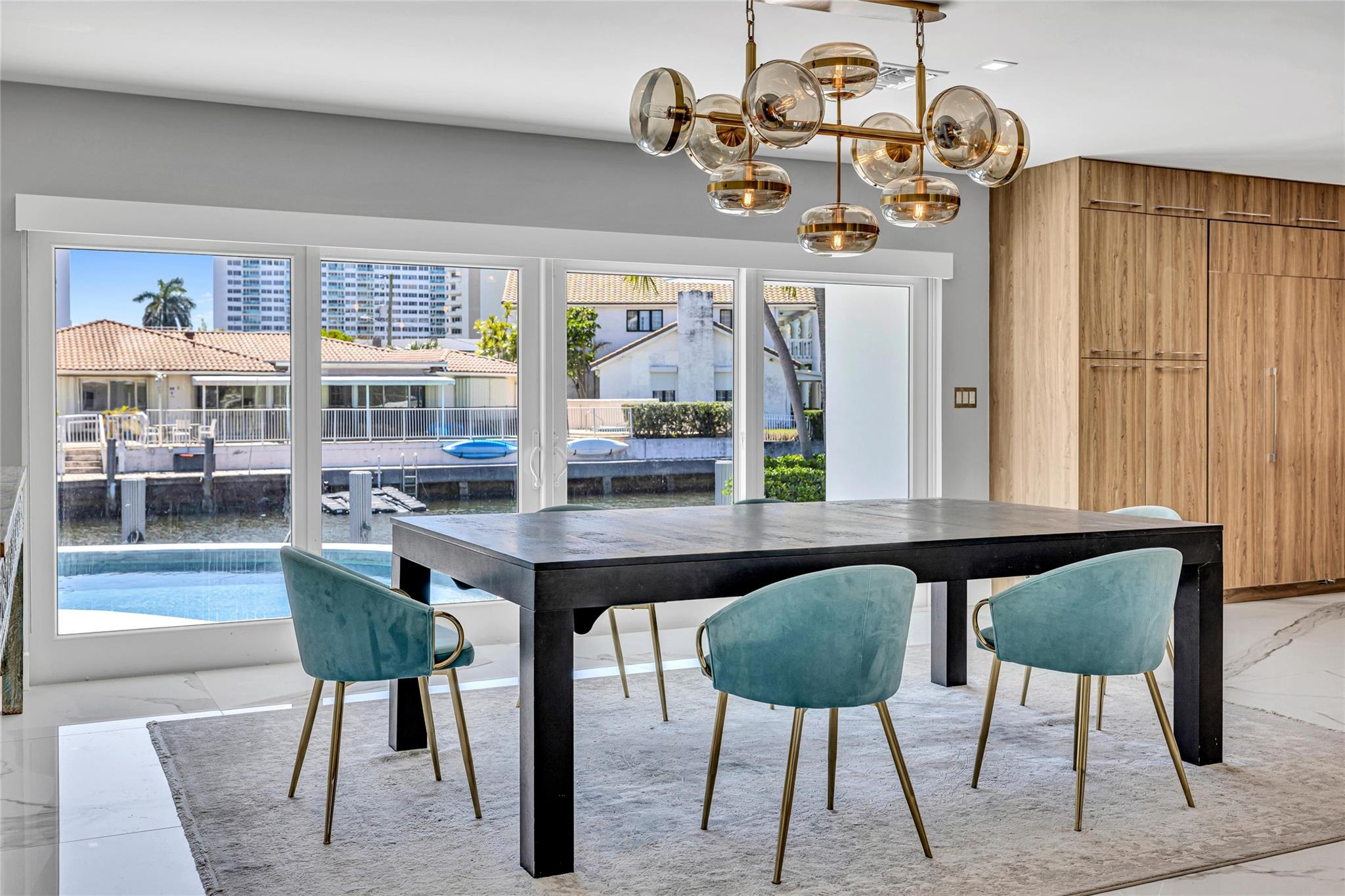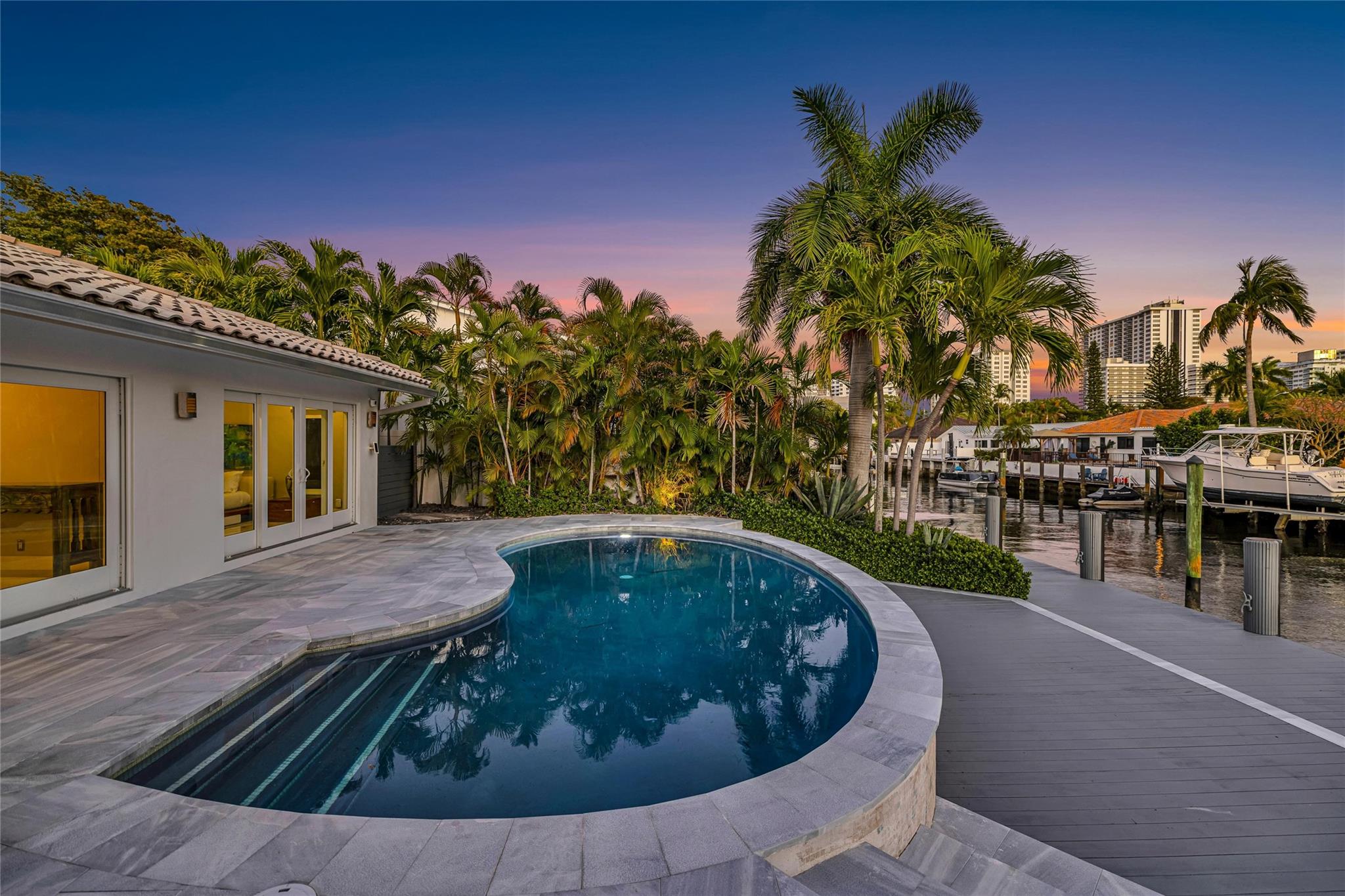 Outstanding waterfront home blocks to the beach in gated Bermuda Riviera. Modern interiors blend seamlessly with the outdoors through wide, sliding glass to a tiered patio and dock surrounding the pool. Designed for entertaining, the kitchen features a long center island, modern appliances and ample storage. The split plan allows each bedroom to enjoy privacy. The primary suite is a quiet retreat with sliders out to the pool, a massive walk-in closet and a 13 x 18 foot bathroom featuring a multi-spray shower. All three baths are updated in modern finishes. 16 foot squares of porcelain flooring is consistent throughout the house. The oversized garage has twin bays with extra wide doors. Multiple dining and shopping options are located within minutes of the property. Home Warranty Included