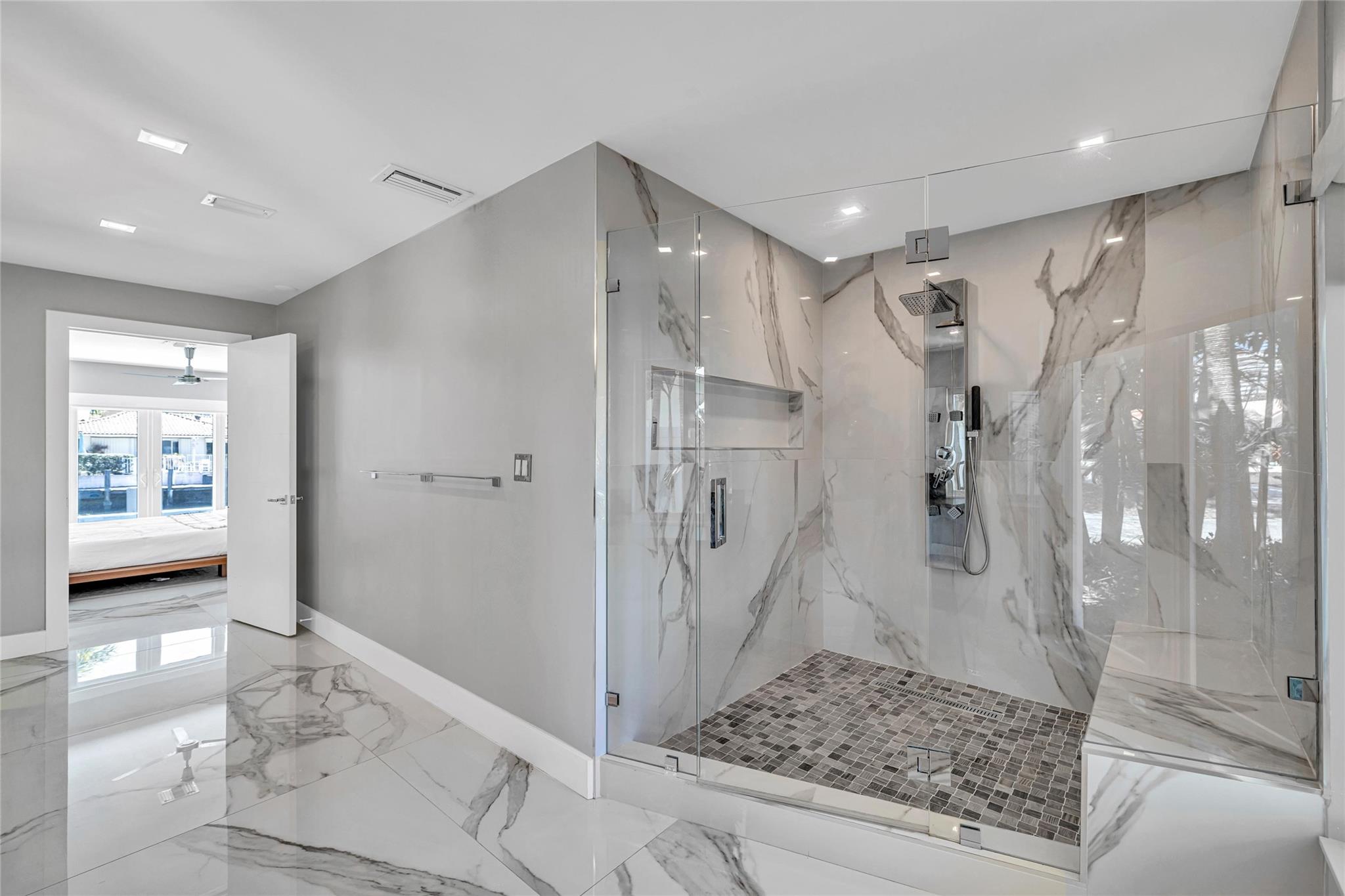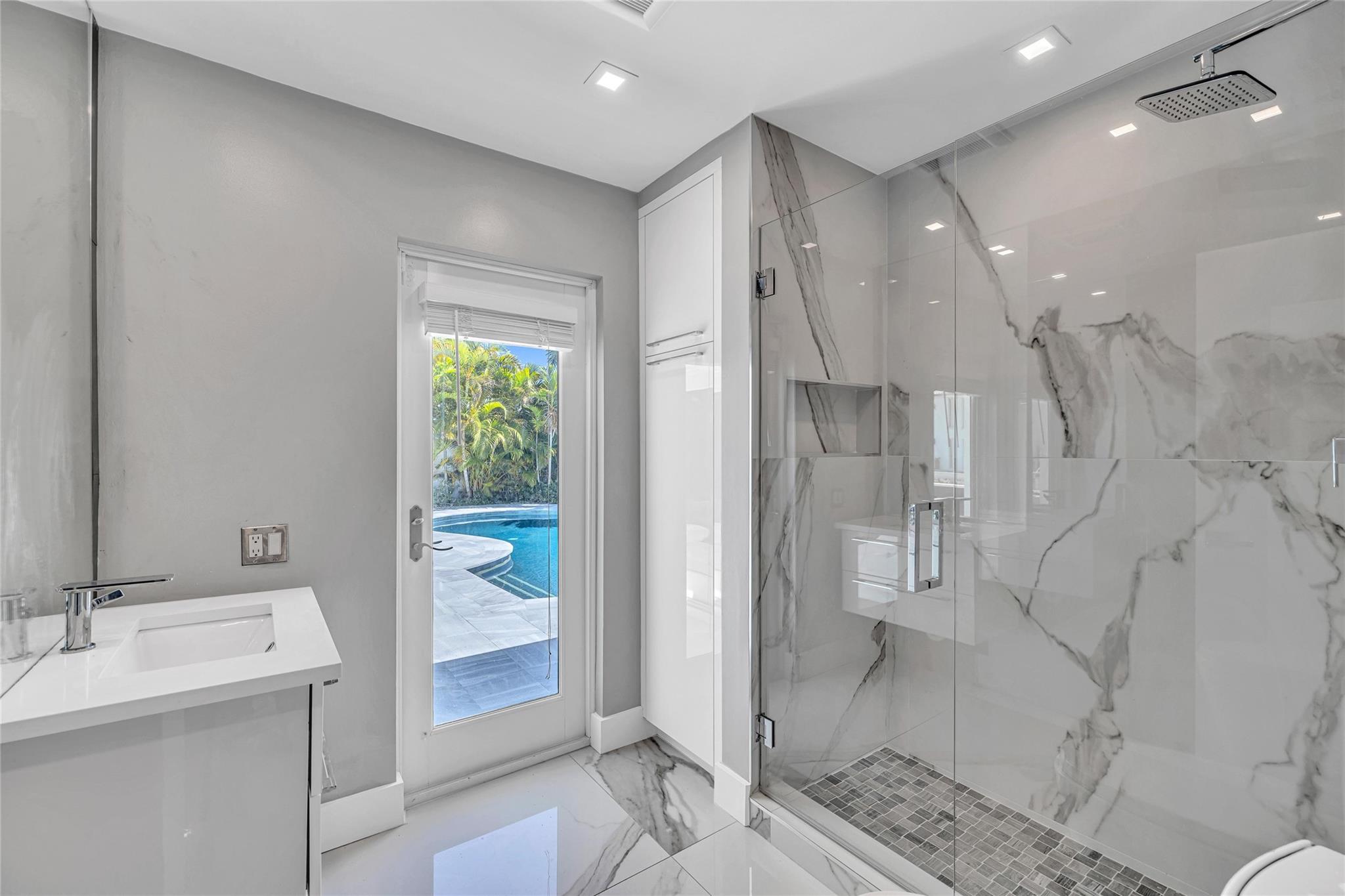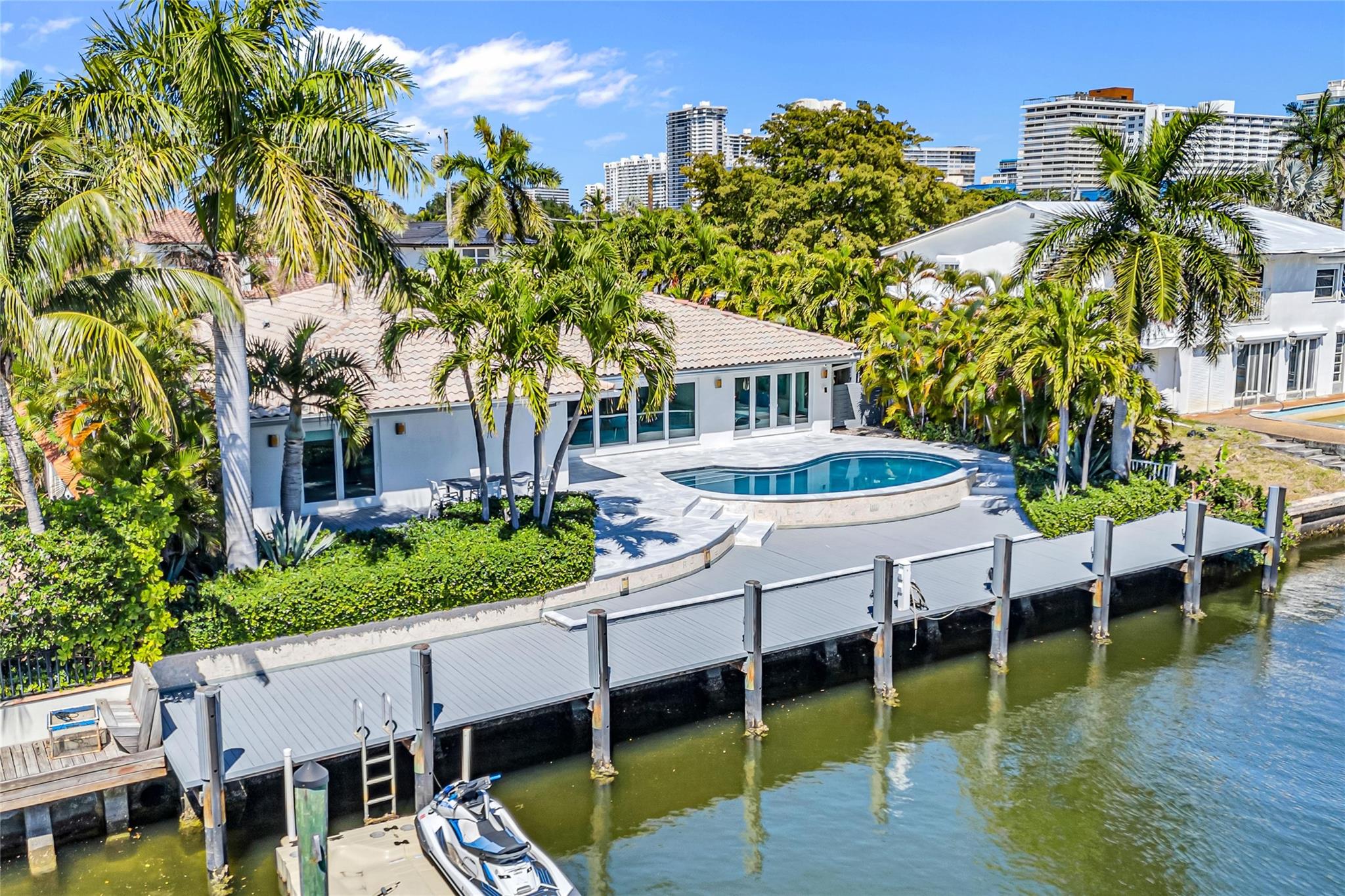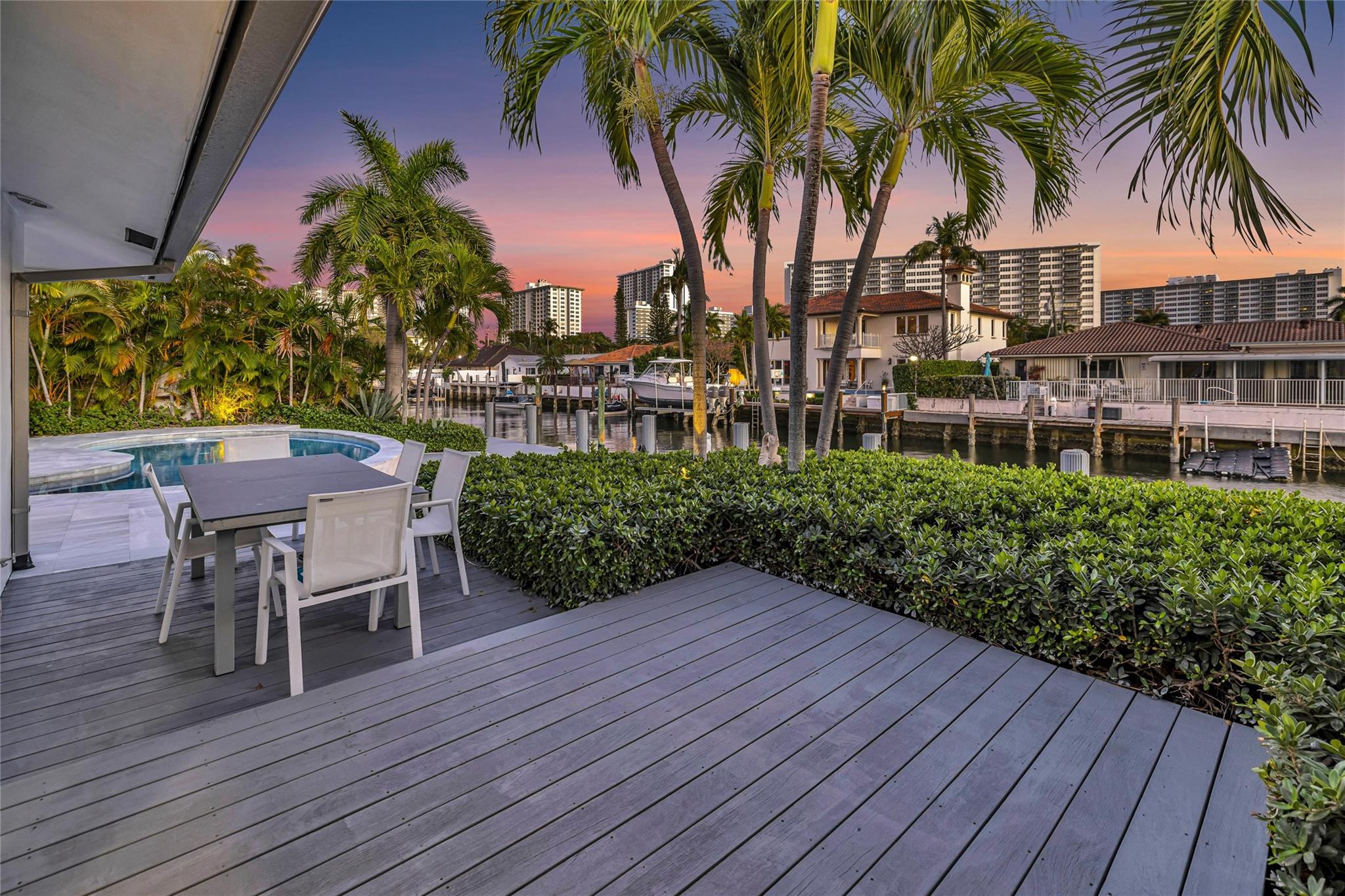 Outstanding waterfront home blocks to the beach in gated Bermuda Riviera. Modern interiors blend seamlessly with the outdoors through wide, sliding glass to a tiered patio and dock surrounding the pool. Designed for entertaining, the kitchen features a long center island, modern appliances and ample storage. The split plan allows each bedroom to enjoy privacy. The primary suite is a quiet retreat with sliders out to the pool, a massive walk-in closet and a 13 x 18 foot bathroom featuring a multi-spray shower. All three baths are updated in modern finishes. 16 foot squares of porcelain flooring is consistent throughout the house. The oversized garage has twin bays with extra wide doors. Multiple dining and shopping options are located within minutes of the property. Home Warranty Included