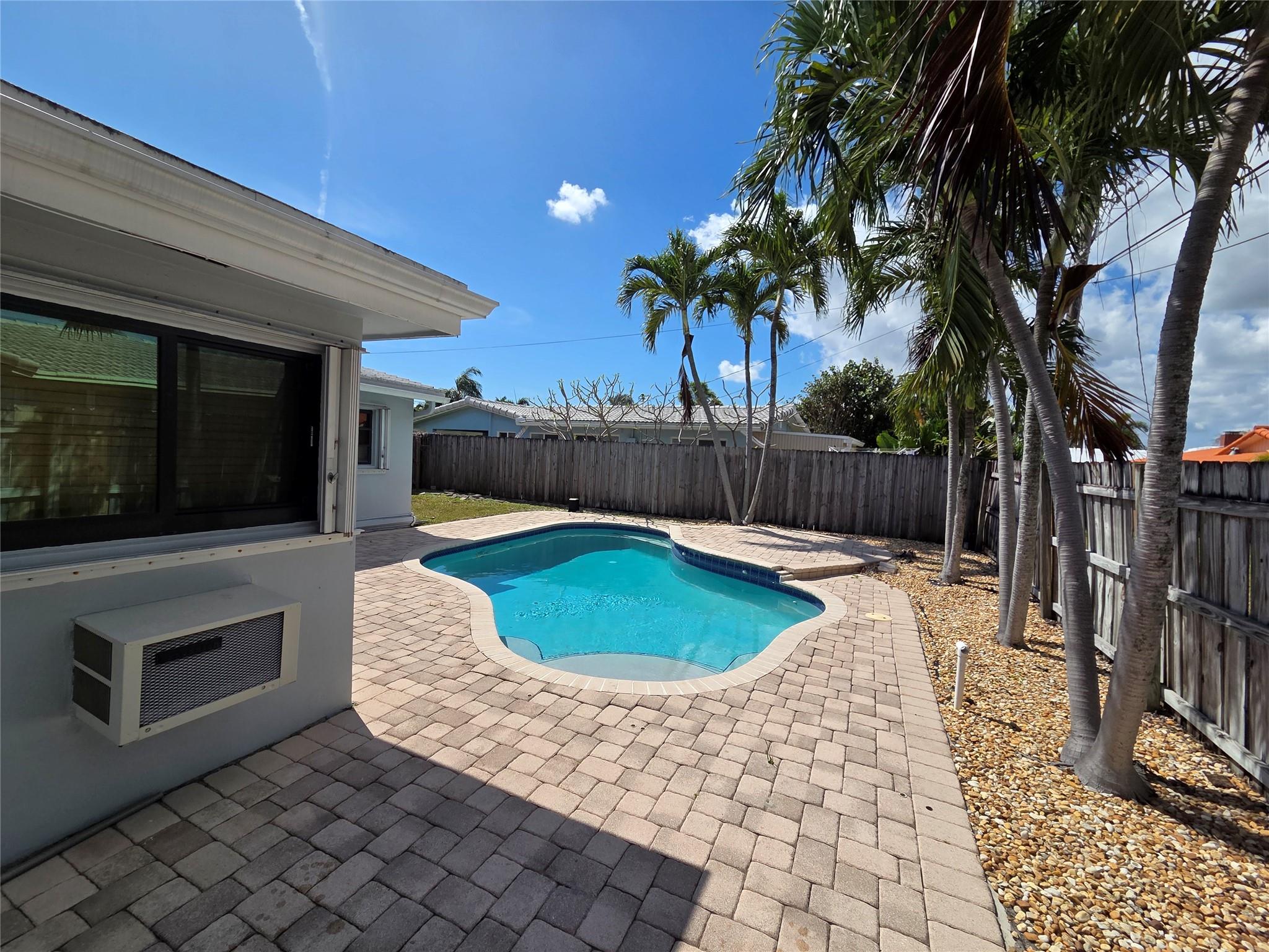Come live in this desireable community in East Fort Lauderdale- Coral Ridge Isles. Beautiful pool & patio area with fully fenced yard. Hurricane protected. Split floor plan. Storage galore. 3 bedroom , 2 bath plus Bonus room, utility room & mud room. Circlular driveway 7 carport. Modified Bitumin extended warray roof sealer. Newer hot water heater. Make this house your own! Come preview before it's gone!