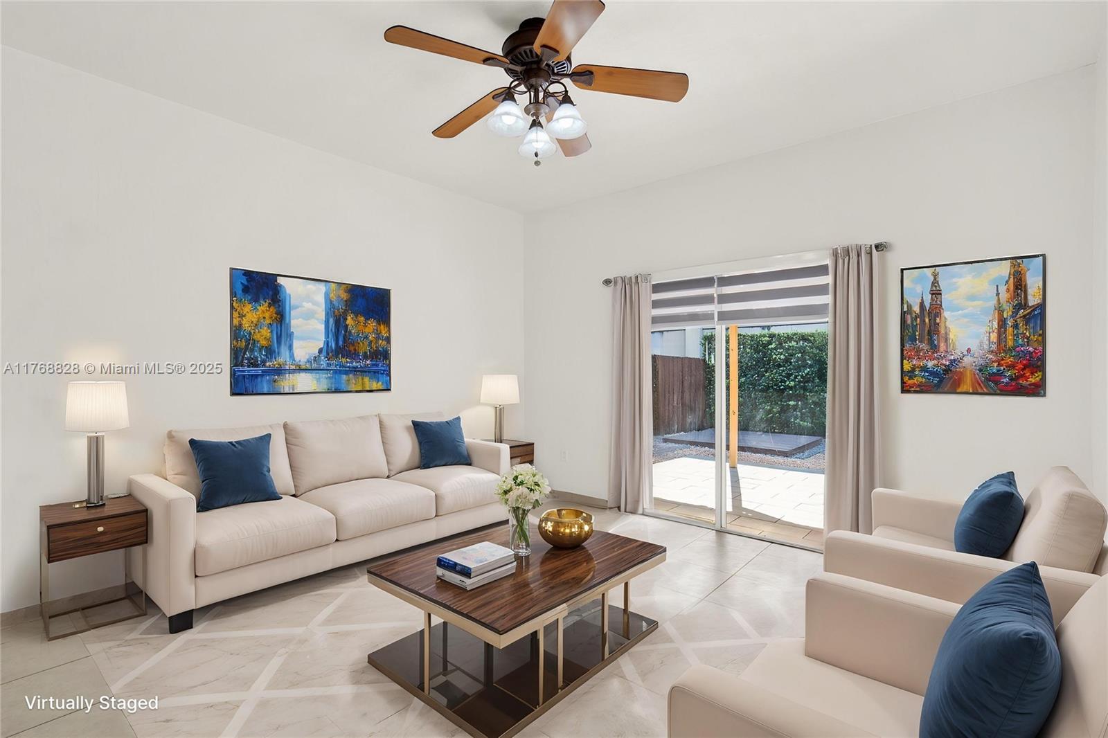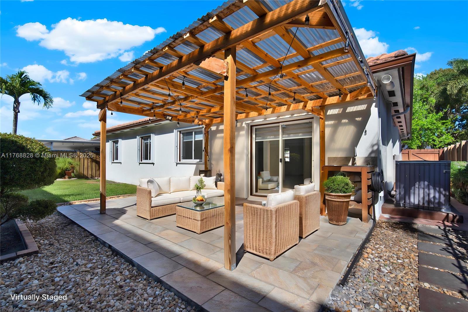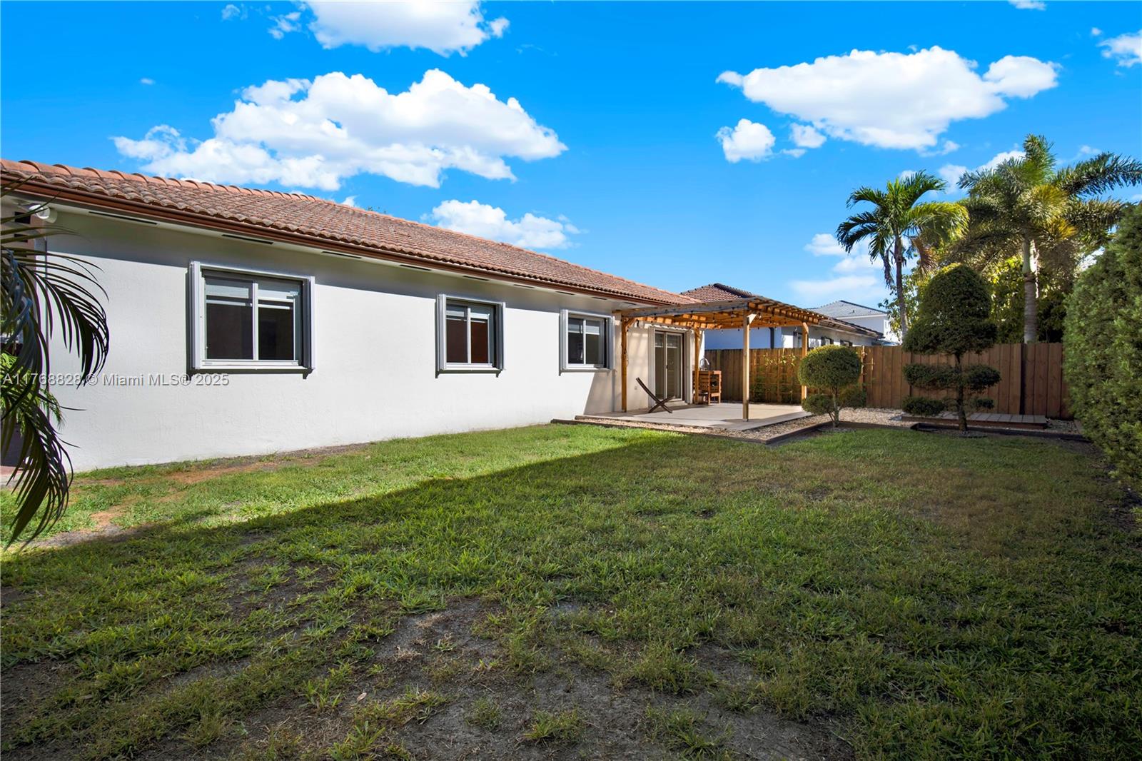 3-bed, 2-bath home in coveted Genesis Oak Gardens in Miami Lakes. Radiating peaceful energy, this is an ideal starter home. Thoughtful layout ensuring privacy and comfort, connected living areas flow seamlessly throughout. Zebra blinds & bedrooms w/blackout shades provide control over natural light for restful sleep cooled by a 3.5-ton high-efficiency A/C system for year-round comfort, Accordion shutters, ELECTRIC CAR CHARGER and 220-volt connection ready for an outdoor kitchen, all some of the home's eco-friendly features. GE stainless steel appliances in Kitchen, remodeled bathrooms, laminate flooring in bedrooms & beautifully tiled patio, pergola & separate wooden deck surrounded by privacy fencing with space for pool.. A welcoming retreat for those looking for both comfort and privacy.