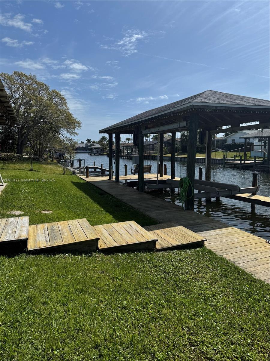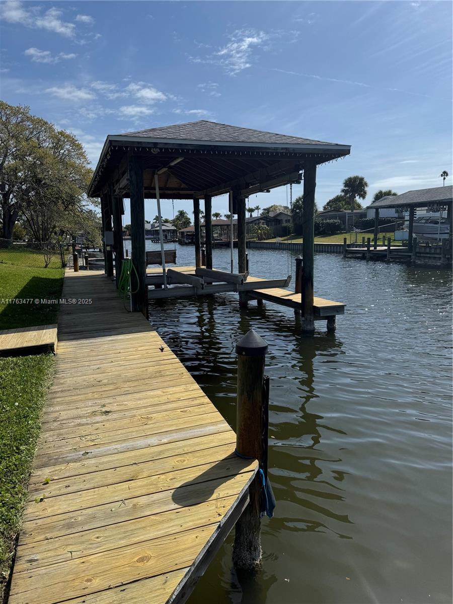 One of the most desirable communities on Merrit Island, this canal front home is a 3/2 plus office space. Vaulted ceilings in this 1987 built home with PVC piping thru out. New roof in 2018, New AC in 2019, New Covered Boat Lift and Decking in 2019. SS appliances, wood tile flooring in living area. 1848 sq feet plus an airconditioned enclosed porch provides an additional 700 sq feet. Owners suite has his and her W/I closets, dual vanities with Jacuzzi tub and sep glassed in shower. Large covered pergola with TV and Hot Tub overlooking the canal.