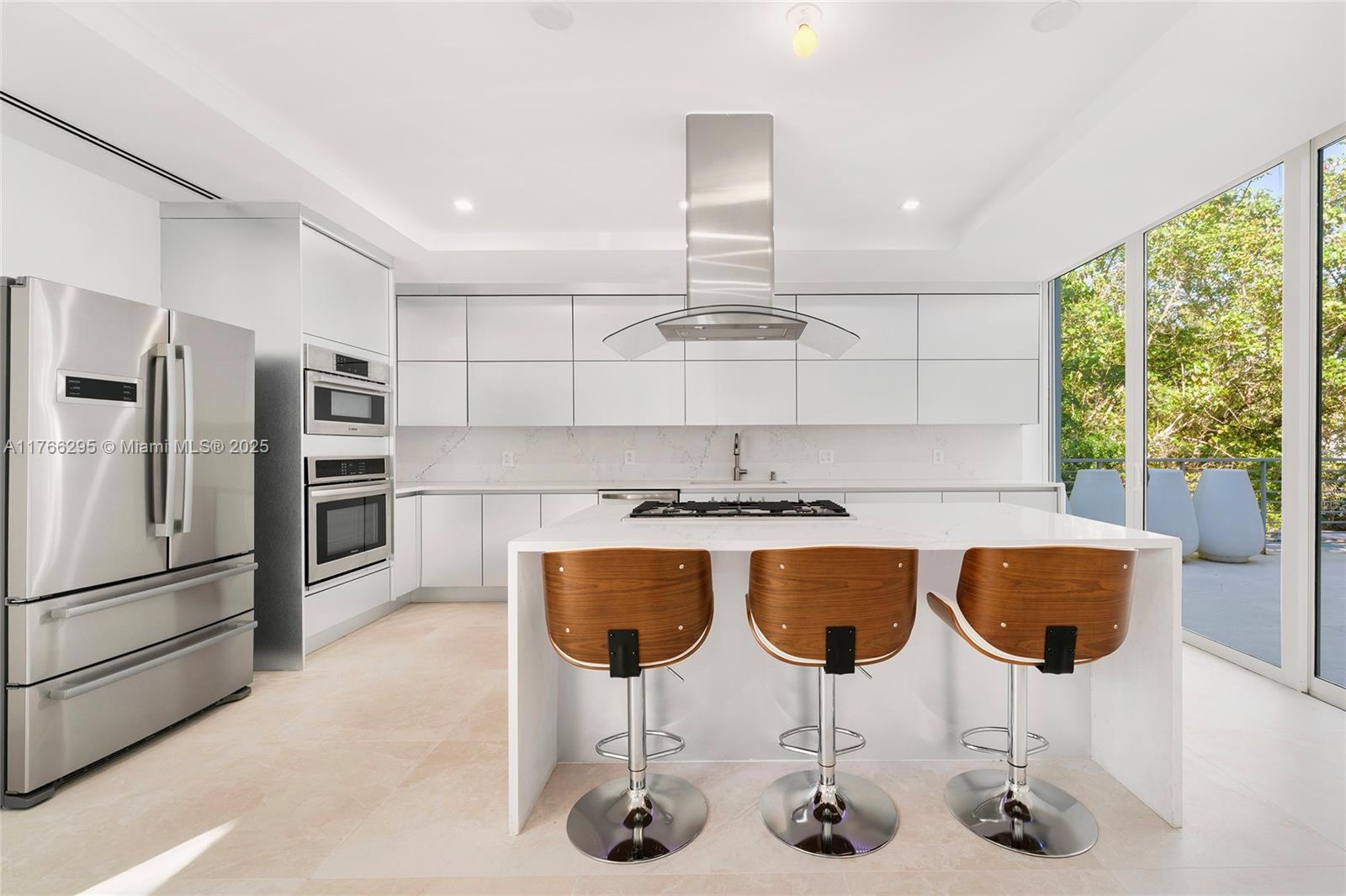 This visually captivating, modern tri-level home, sits on a 7,500 SF corner lot offering 5,016 SF & a spacious rooftop lounge made to entertain with a lap pool - an oasis to enjoy sunsets over the Miami skyline & bay. Never lived in, the 7 BR/ 7.5 BA home features fine stone floors, & large windows provide a seamless indoor-outdoor experience. Ground floor boasts a spacious living room w/access to an expansive terrace, sleek chef’s kitchen & adjacent dining space. 3 bedrooms on this level. 2nd floor offers 4 additional BRs all with walk-in closets & ensuite bathrooms. The principal suite features a private terrace & beautiful spa-style bathroom. Ideal location – minutes to beaches, fine dining/shops, downtown, top schools & MIA. This home embodies the Venetian Island’s luxury lifestyle.