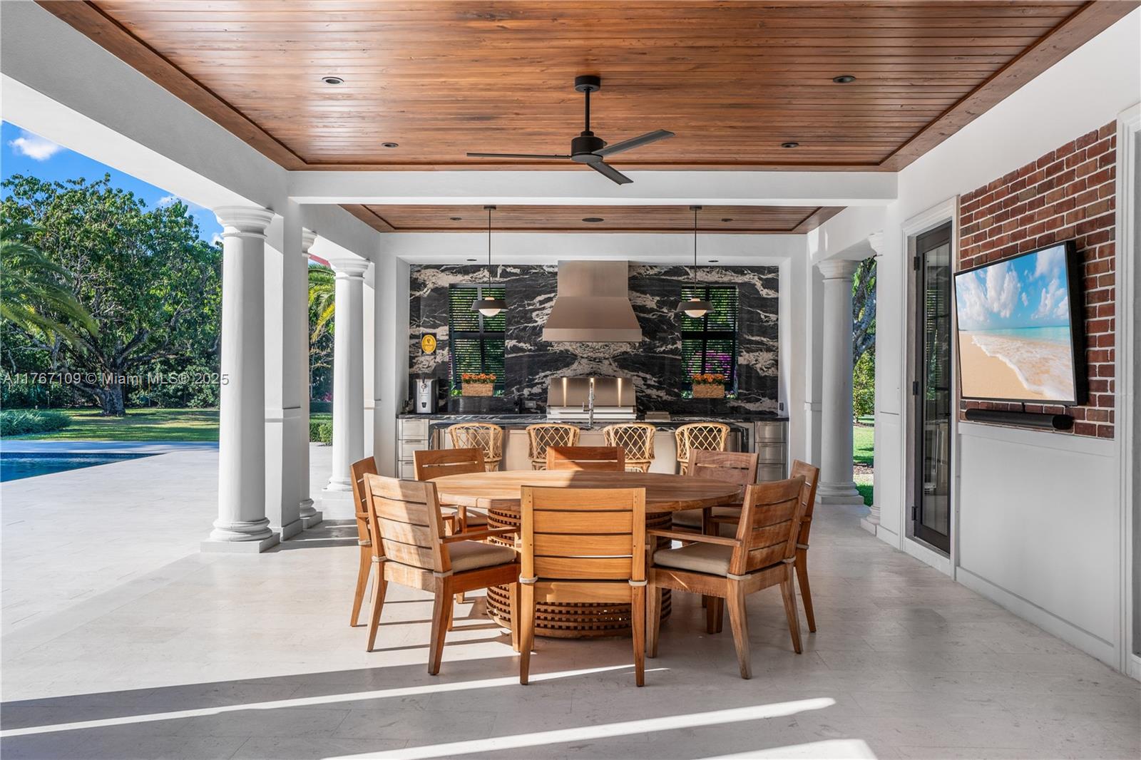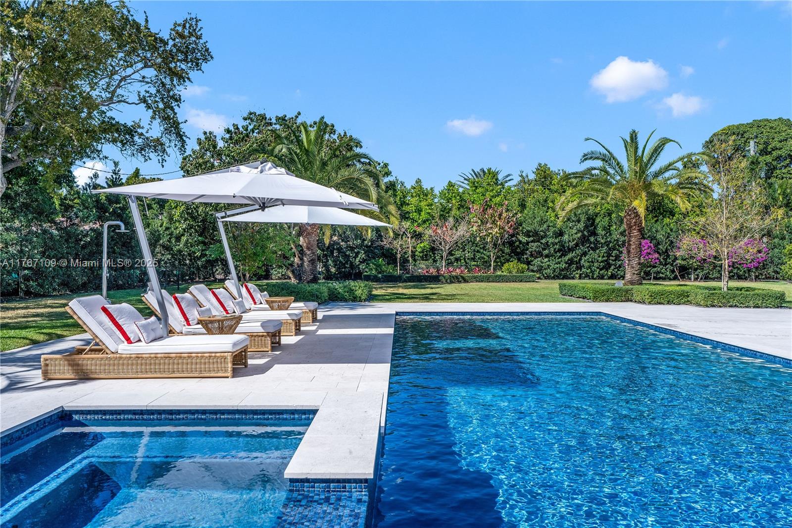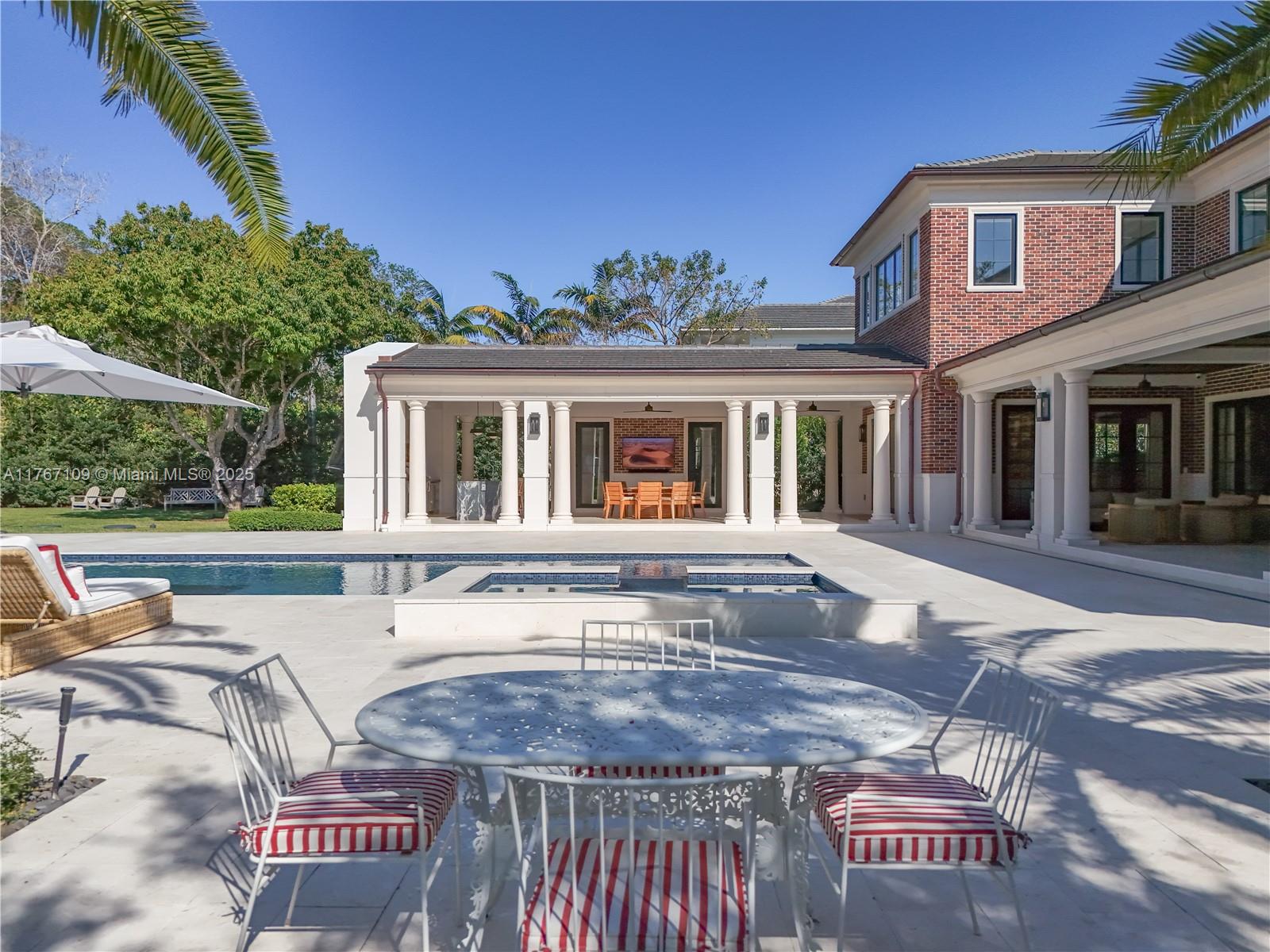 Literally the best custom home EVER built in Pinecrest! A sprawling estates of Connecticut inspired transitional Georgian Architecture. Spanning over 9,878 total square feet, this 2023 masterpiece offers 7 bedrooms, 8.5 baths, and a level of craftsmanship very rarely seen. Designed for one who will not compromise on anything but exceptional quality. Architectural features include precast columns, crowns, trims, moldings & a unique red brick facade. Nestled on nearly an acre, this home boasts high ceilings, custom millwork, rare marble walls, designer wallpapers & hardwood floors. A gourmet chef’s kitchen features a Bertazzoni range, Gaggenau fridge/freezer, and steam oven. Outdoor entertainment includes a summer kitchen, sauna, and a heated saltwater pool with a jacuzzi.