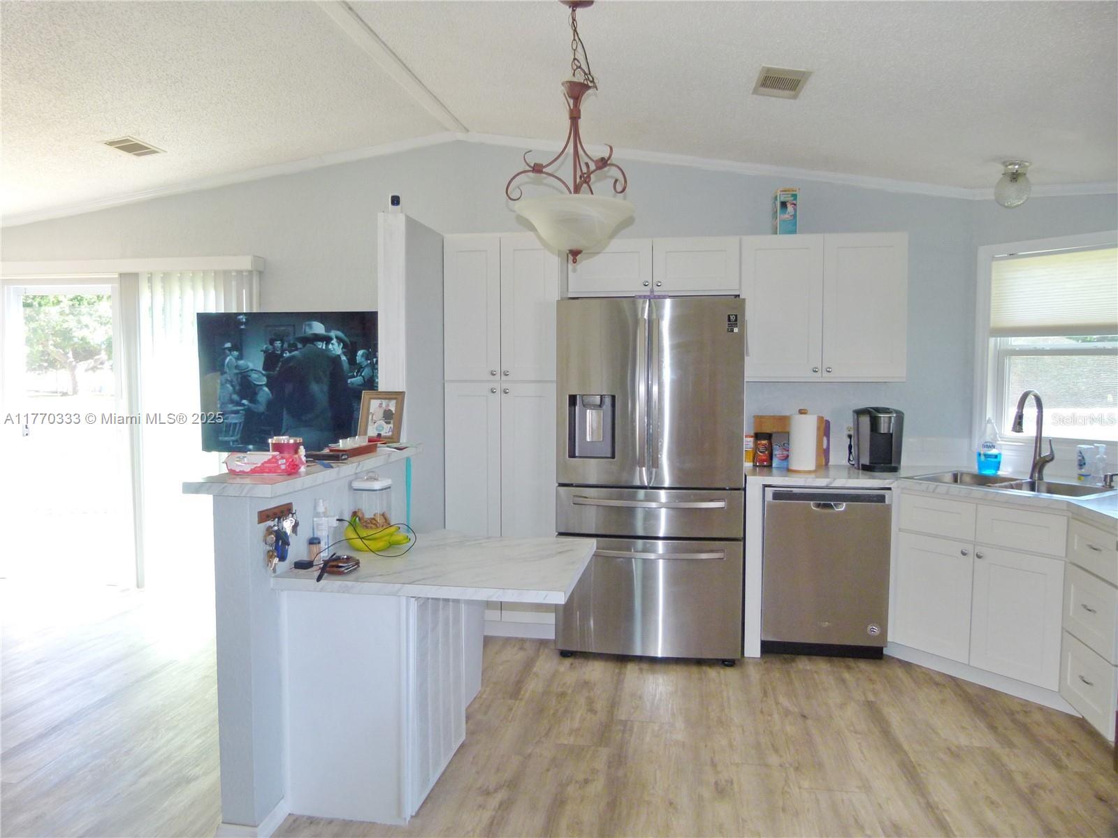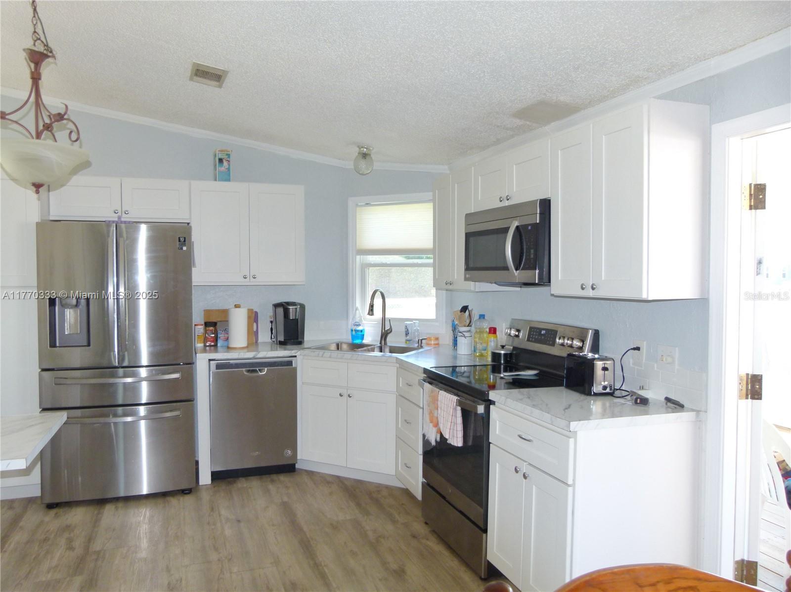 Kissimmee River Estates - 1994 2/2 DWMH with a Mother-in-laws quarters, all new kitchen with soft close drawers and new appliances, hurricane shutters, alarm system, 2017 New A/C and duct work, 2023 new metal roof and buildings along with 5" eves, all windows double pane insulated, fenced with automatic gate, Hurricane Shutters for all windows and doors. Efficiency has updated new bathroom, hot water heater on demand, AC split. This is a beautiful piece of property and home.