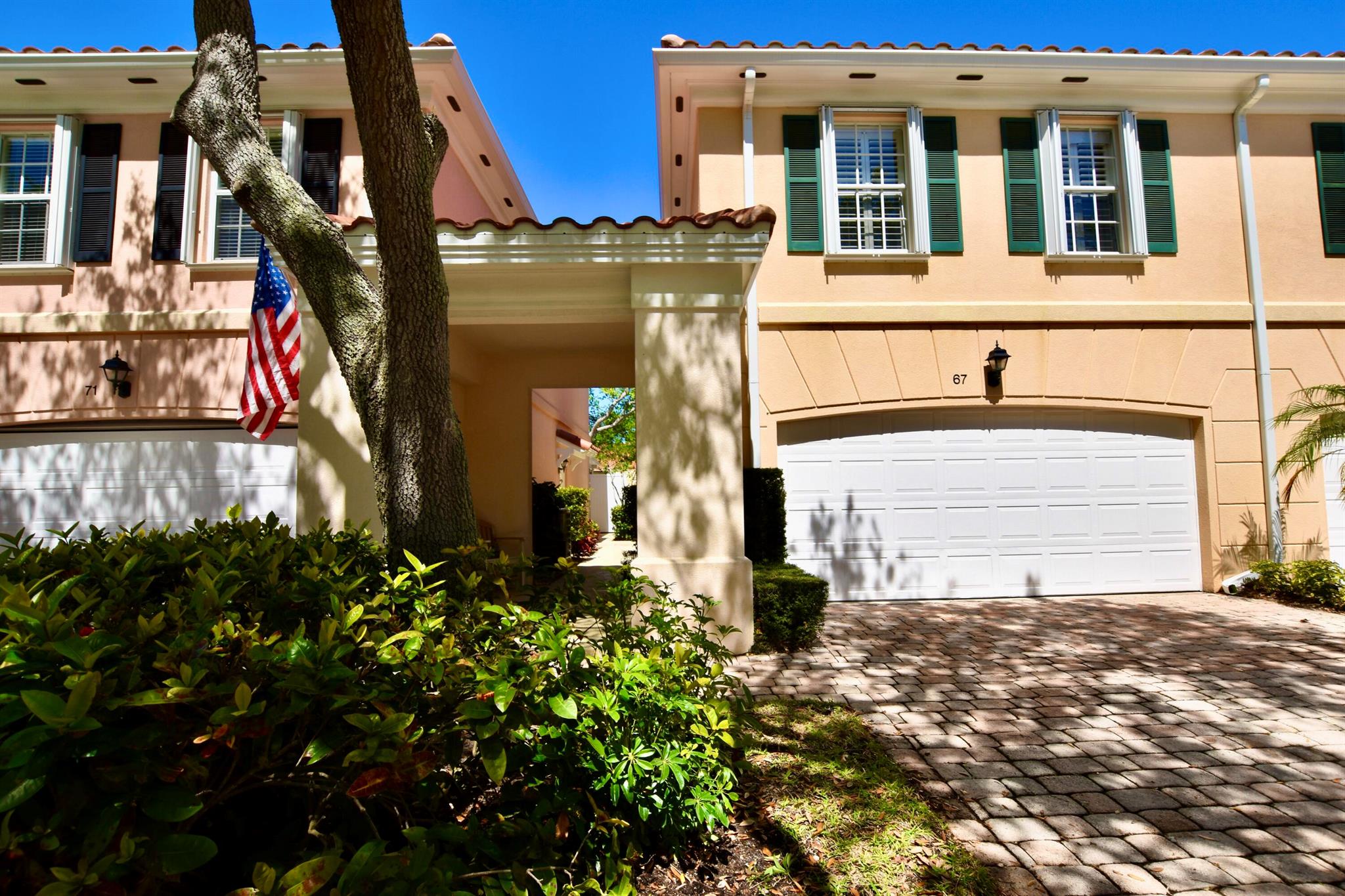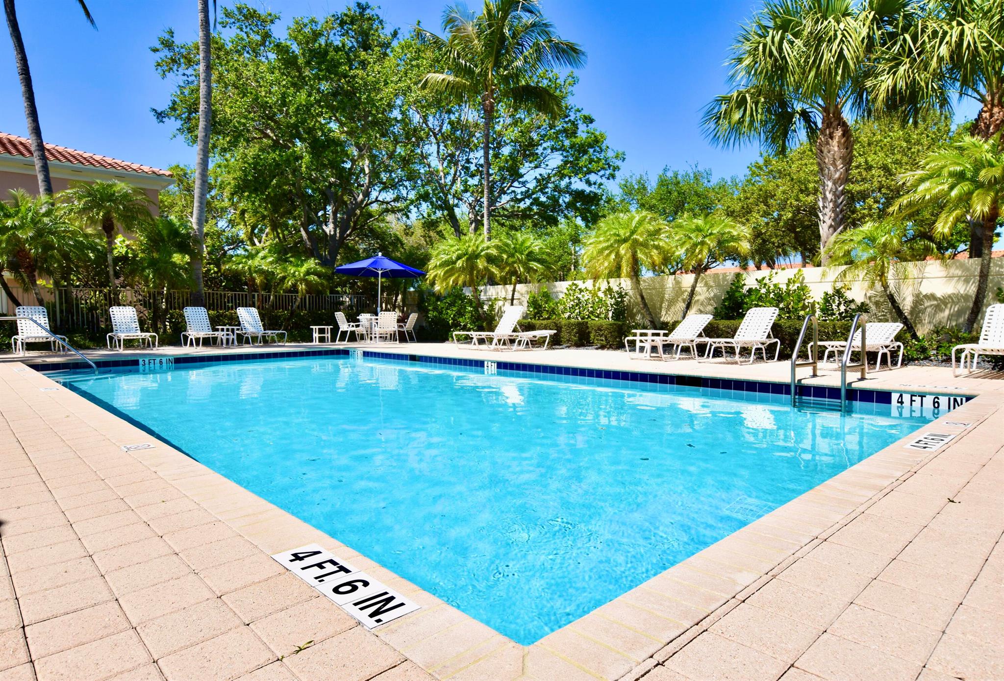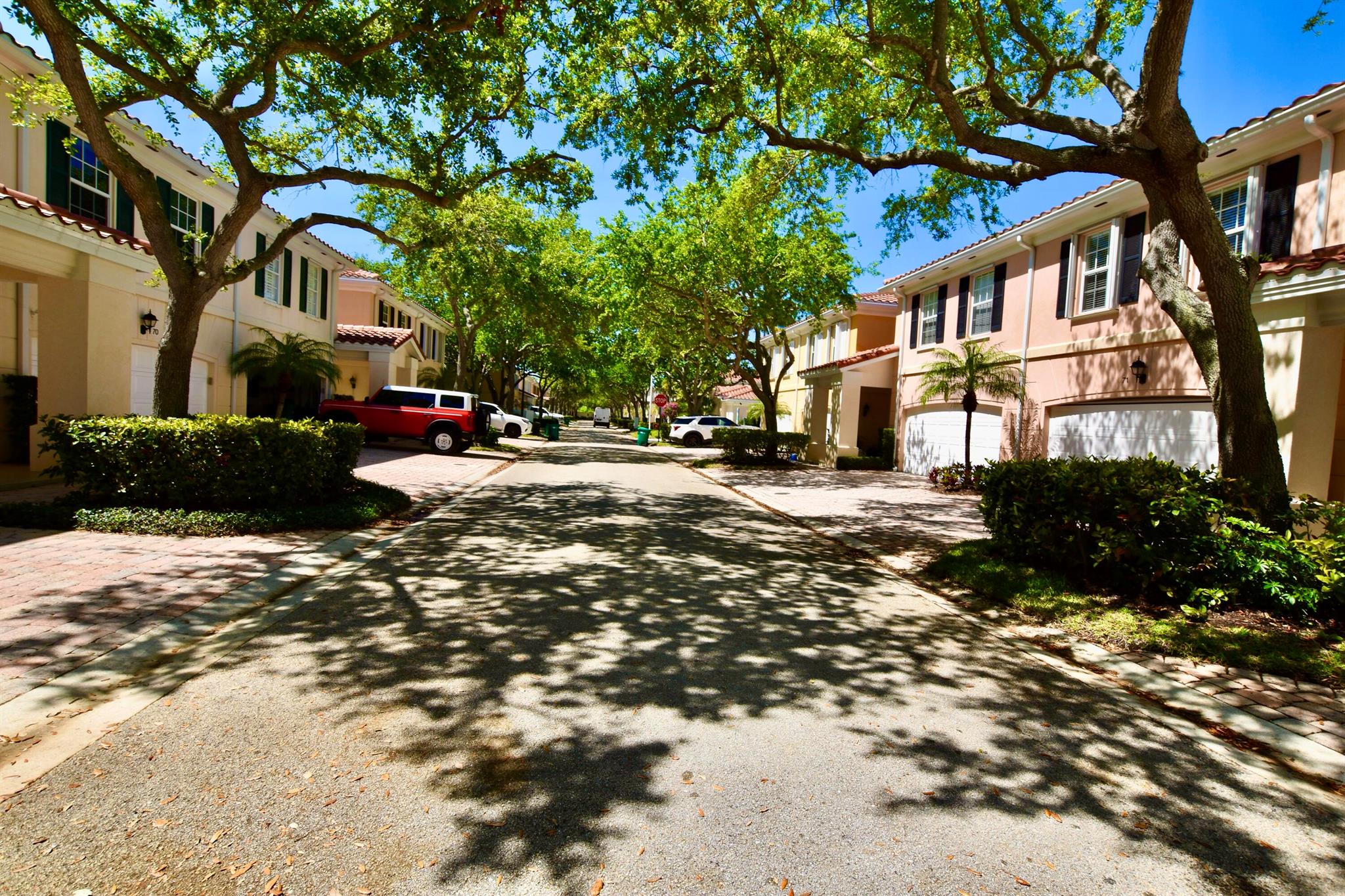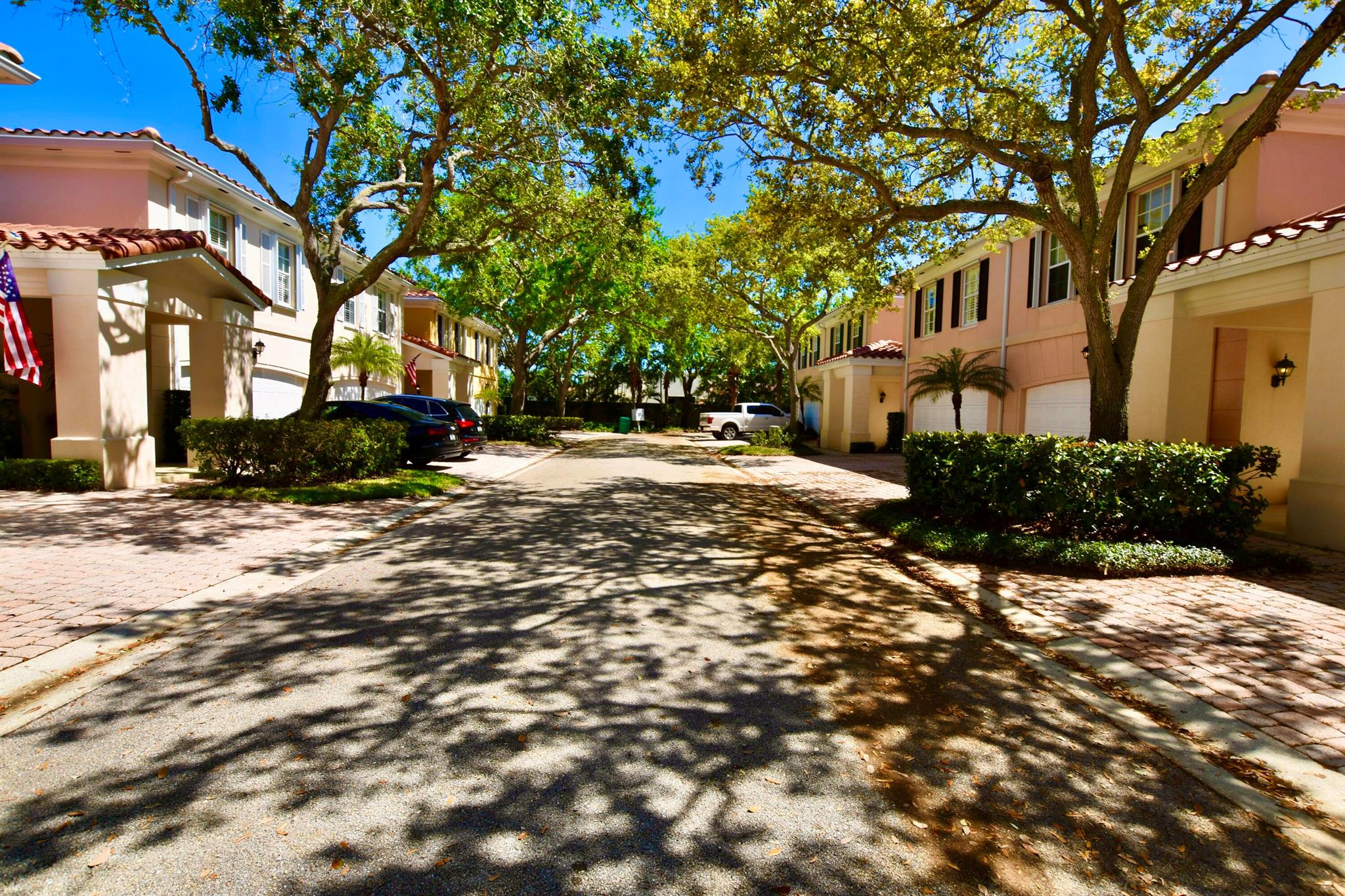 Divosta built, fully concrete constructed, 3BR, 2.5Bath Townhome in an oak lined, private, well managed community. Townhome situated on premium lot that backs to parking lot. Unit located 4 units from community pool. Interior features include hardwood flooring, new (never used) stainless steel refrigerator, microwave, dishwasher, garbage disposal, and kitchen faucet. Open floor plan downstairs. Upstairs- laundry, primary bedroom with ensuite primary bathroom and walk-in closet and plantation shutters. Screen and paved back patio and screen enclosed back porch w/ vinyl windows/ability to A/C the screed porch. Accordion hurricane shuttler, impact glass sliders and tile roof replaced 2023. A/C new 2023. Garage door opener replaced 2023. Zoned for A rated Jupiter Schools.Watch video