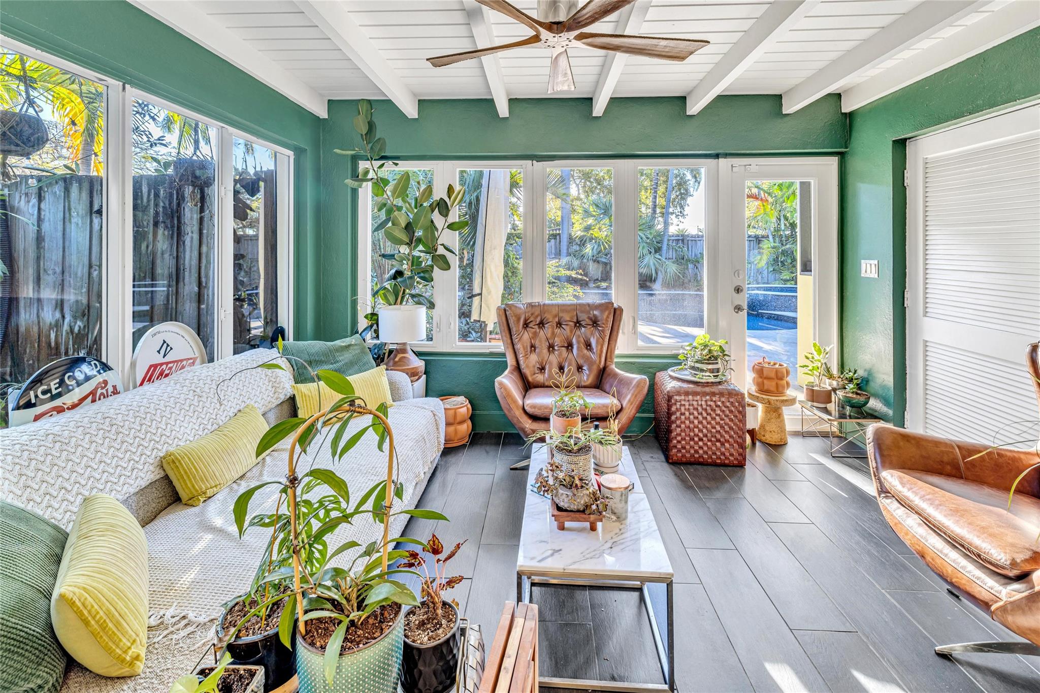 Welcome to this beautifully maintained home in the heart of Poinsettia Heights. This property features 3 BR, 3 full BA with an open living space filled with natural light. The modern, renovated kitchen features built-ins and elegant finishes, while the charming Florida room provides a versatile space for relaxation. You'll find generously sized bedrooms with classic terrazzo floors and a primary bedroom with a walk-in closet and renovated en-suite bath. Situated on an 8,099 square foot corner lot, the outdoor area is perfect for entertaining. Enjoy the recently updated pool area surrounded by lush landscaping. With a brand new metal roof, New A/C, this home is move-in ready and waiting for you. Don't miss this excellent opportunity to own a piece of paradise in Fort Lauderdale.