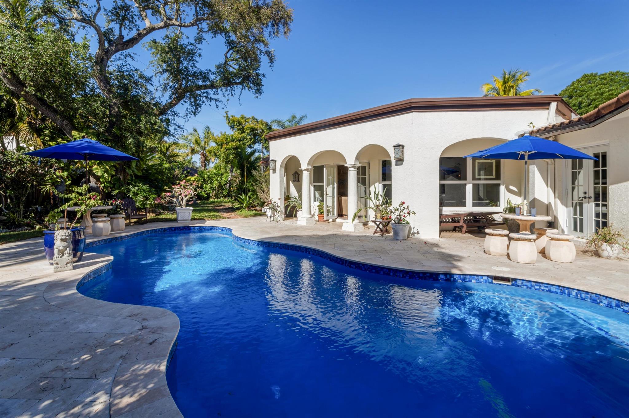 Welcome to 898 Azalea Street, in Boca Raton's historic Old Floresta enclave. Sited on a prime corner lot with canopy trees and lush tropical foliage, this Spanish Colonial-style property exudes allure with its pecky cypress ceilings, classic arches, niches, and decorative columns. The Old Floresta residence features a free-flowing floor plan, a split-bedroom layout, and details such as whitewashed brick and lustrous French clay floors. A convertible VIP suite offers the option for an additional fourth bedroom. The loggia opens to a custom saltwater pool (2020) and a private oasis. Showings are by appointment only.