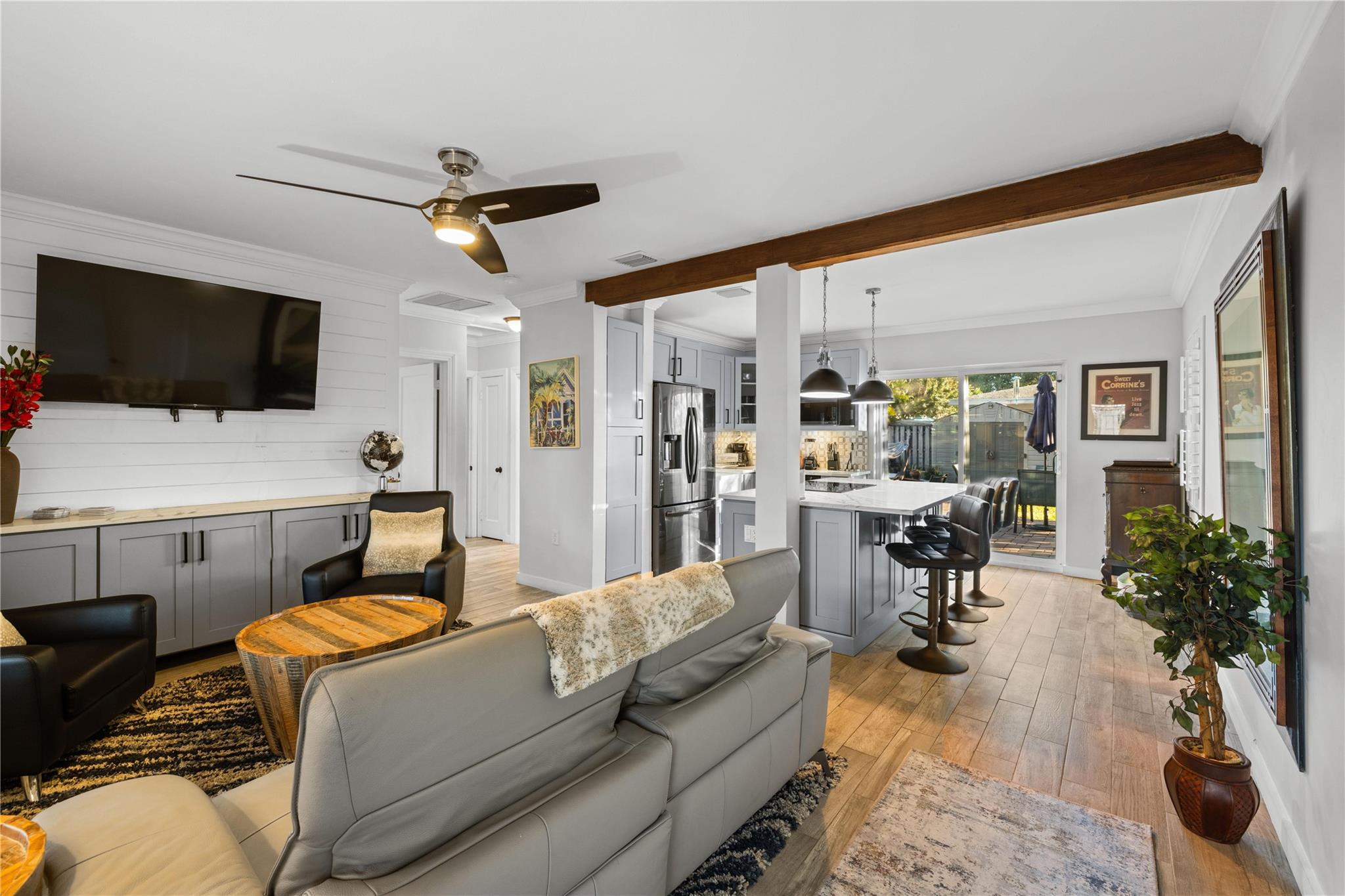 PRICED TO SELL! Move-in ready pool home in Poinsettia Heights! Minutes from the beach, Wilton Dr, Las Olas & more. NO HOA. Bonus room overlooks the PRIVATE POOL, perfect as an office/den or THIRD BEDROOM. Split-floor plan with IMPACT WINDOWS/DOORS, new tankless water heater, newer AC & appliances, updated landscaping, two sheds, tile roof, wood deck & fenced yard with extended paver driveway. Inside: porcelain tile over terrazzo, cedar closets, PLANTATION SHUTTERS/SLIDERS, vaulted ceiling in bedroom, remote fans, crown molding, wood-beam accent, and so much more. Crafted for modern living, merging refined aesthetics with inviting, well-rounded comfort. FURNITURE NEGOTIABLE. Sold as-is. Perfect for homeowners or investors. Amazing value in a prime location!