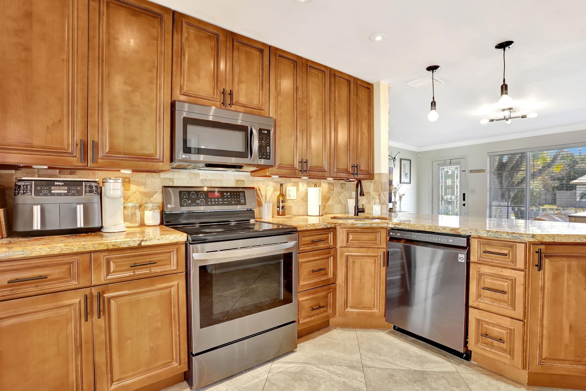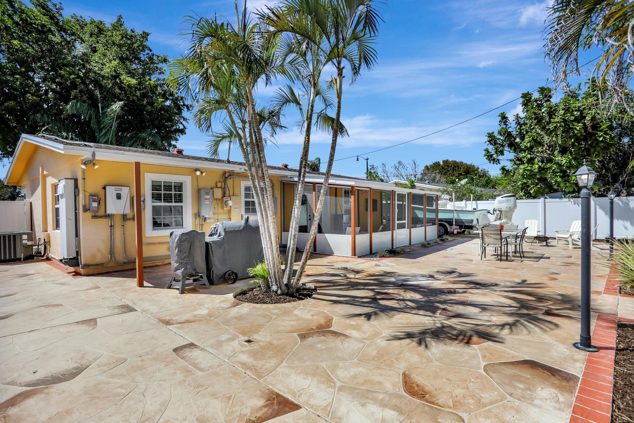 Welcome to your Pompano Beach sanctuary! This charming 3-bedroom, 2-bathroom home offers 1,207 square feet of comfort and style. The 2020 roof and 2022 A/C ensure modern convenience, 2022 water heater, while impact windows and doors provide peace of mind. Enjoy energy savings with fully paid-off solar panels and a Generac battery backup. Step inside to find an updated kitchen and bath featuring sleek LG appliances. The oversized primary bathroom boasts dual vanities and upgraded TOTO water closets. Outdoors, a PVC privacy fence surrounds the property, complemented by an aluminum electric double swing gate—perfect for your boat or RV. Relax on the screened-in back patio, illuminated with tile and lighting. With LED lighting throughout and a spacious driveway, this home is ready for you!