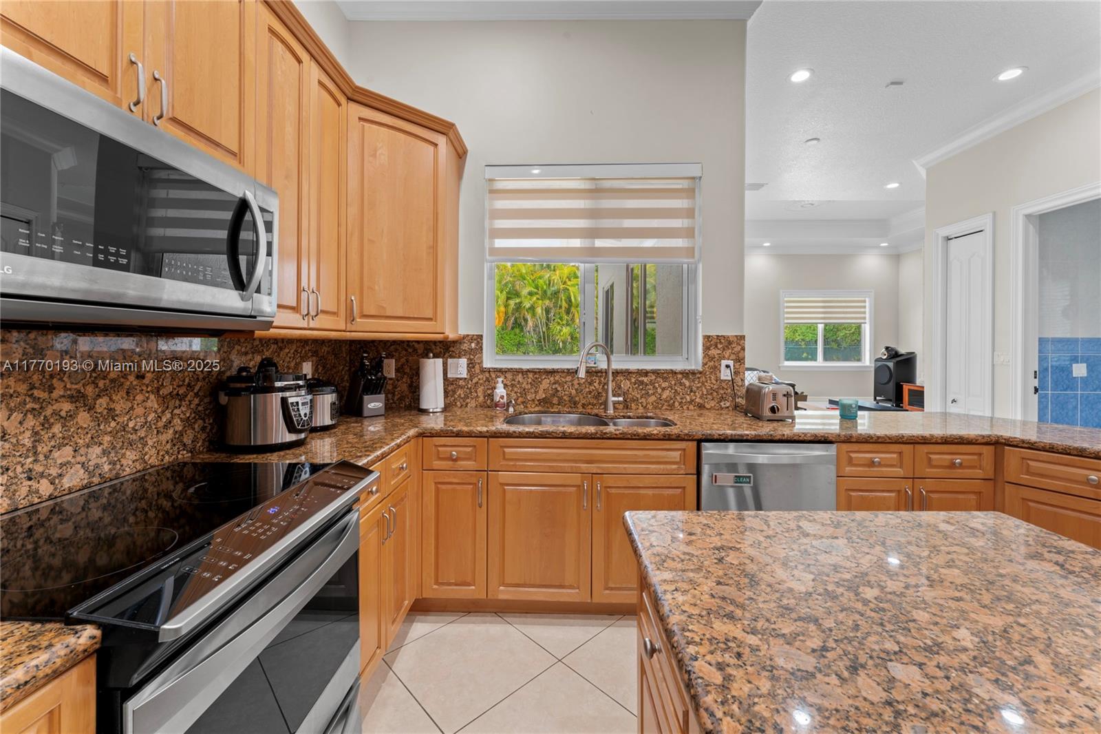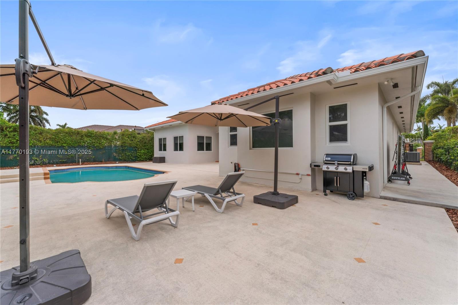 Amazing this exquisite 5-bedroom, 4-bathroom home spanning 3,929 sq ft. Built in 2002, this residence sits on a spacious lot. As you step inside, you’ll be captivated by the impressive vaulted wooden ceilings that create a warm and inviting ambiance. The home is fully fenced with an electric gate, ensuring privacy and peace of mind. The brand-new impact windows and doors (installed March 2025), along with a new AC and water heater, provide both efficiency and modern convenience. The expansive backyard is a true oasis, featuring a saltwater pool perfect for relaxation and entertainment. The double garage offers ample space for two vehicles, while the quiet cul-de-sac location enhances the home’s tranquility. this home is ideal for those seeking luxury, comfort, and a prime location.