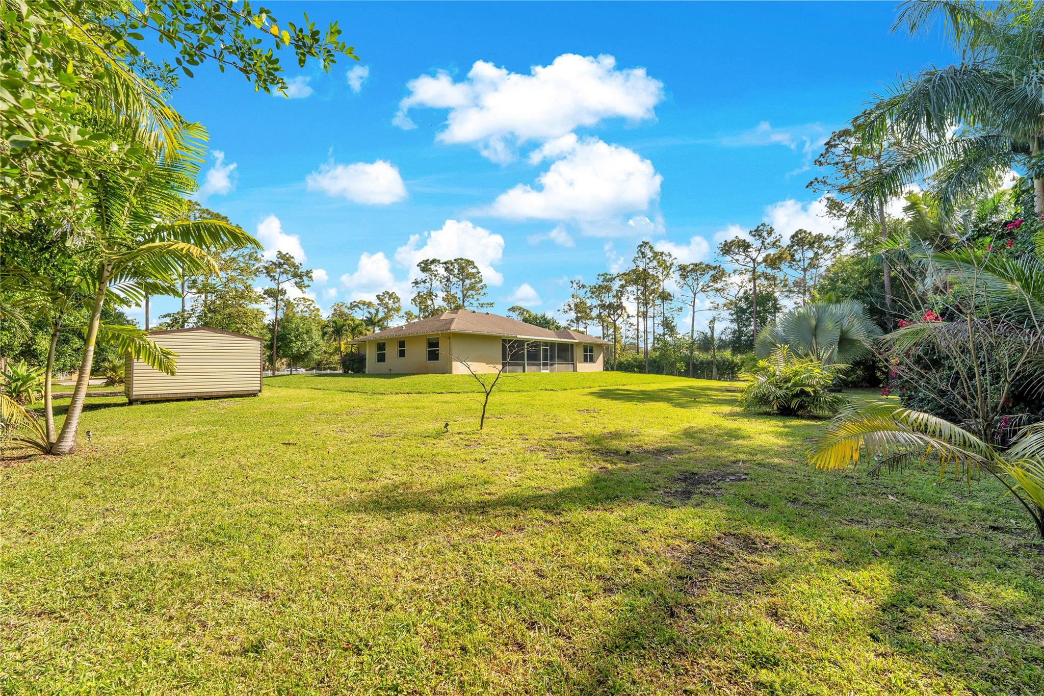 Welcome to your private retreat in Loxahatchee! Situated on a sprawling 1.15-acre lot (50,094 sq ft), this meticulously maintained property offers peace, privacy, & room to grow—with no HOA. The home features 2,184 sq ft under air, thoughtfully upgraded throughout with modern touches & quality finishes. Enjoy lush landscaping supported by a fully functional irrigation system, and relax knowing the neighboring lot is a plant nursery, giving you added privacy and no rear neighbors. The detached shed adds flexible storage or workspace, and there's ample room to build your dream pool or additional structure. Tankless water heater. Whether you're looking to expand, unwind, or simply enjoy the laid-back Loxahatchee lifestyle, this property delivers comfort, space, and long-term potential.