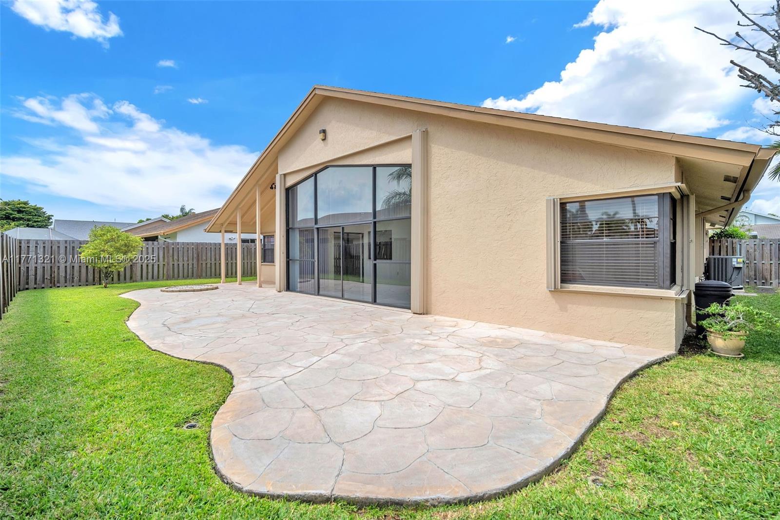 Spacious & very well maintained 4BR/2BA home is move-in ready! Boasting vaulted high ceilings, large windows allowing ample natural light, tile in main living areas, & split bedroom plan. Newer commodes & bathroom fixtures, Window screens 2025, Exterior freshly painted 2025, AC 2019, Tankless Water Heater 2019, Sprinkler system, Impact garage door & accordion shutters. 2-car garage w/washer/dryer & utility sink. Private fenced backyard w/stamped concrete covered patio area, perfect for entertainment! Walking distance to the community pool & jacuzzi & to Sunrise Civic Center that offers residents free basic membership to the Athletic club gym, game room, racquetball court & more! Walking distance to A-rated Welleby Elementary! GREAT LOCATION & home is in PRISTINE condition. MUST SEE TODAY!