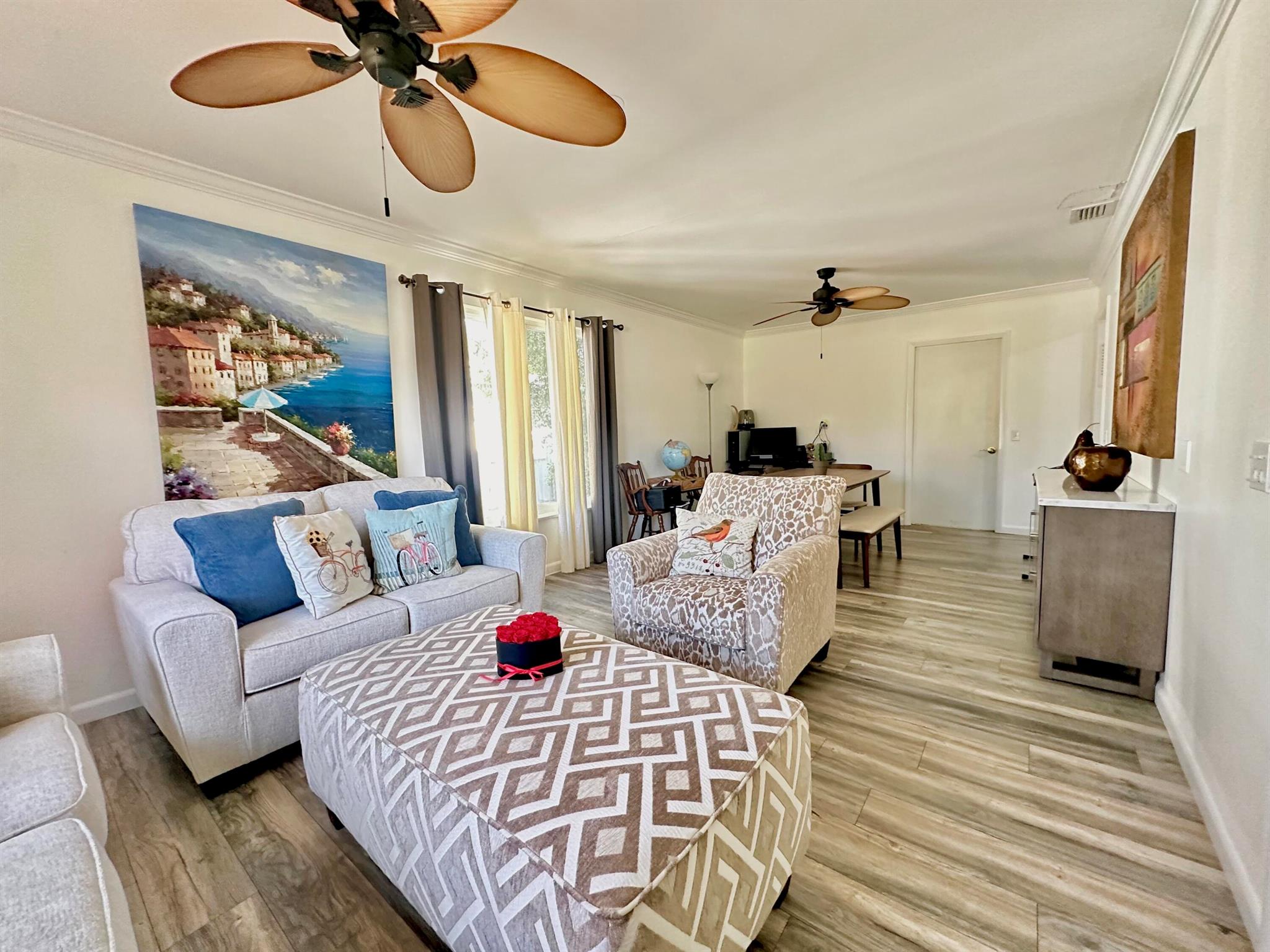 Escape to your private oasis on 1.32 acres at the end of a peaceful road! NO HOA! This stunning 3-bedroom, 2-bath home also features a separate 1-bedroom, 1-bath in-law suite/efficiency in a converted garage--perfect for guests or rental income. Impact windows throughout provide security and energy efficiency, while the charming country-style front porch welcomes you home. Step out back to a massive screened-in porch with a wood deck, ideal for entertaining or relaxing while overlooking the fully fenced backyard.Inside, the home boasts a beautifully updated eat-in kitchen with newer stainless steel appliances, a spacious formal living room, and a split-bedroom floor plan for added privacy.