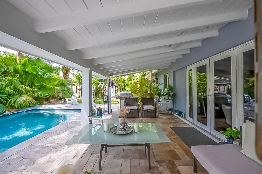 Discover this charming gem in Coral Ridge Isles! This beautifully updated 2-bedroom, 2-bathroom pool home boasts an open, light & bright floor plan designed for South Florida living. Property features include 2-car garage, impact windows and doors, white barrel tile roof, tile and laminate wood flooring. Enjoy the outdoor living space with an inviting arbor-shaded brick paver front porch, heated pool with sun shelf, travertine paver pool deck, and a covered back patio. The private, fully fenced backyard is surrounded by lush, mature tropical landscaping. Ideally located just minutes from the beach and close to local shopping, dining and entertainment options. This home offers the perfect blend of convenience and relaxation - Schedule your private showing today!
