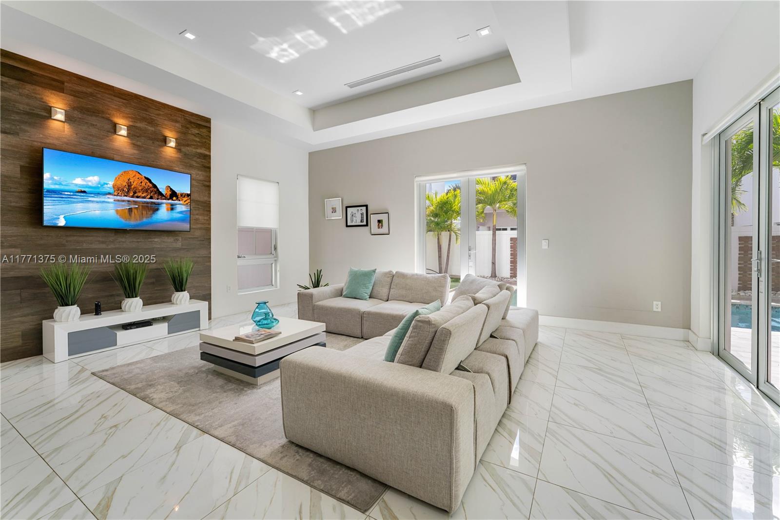 JUST REDUCED! Stunning 4-bed, 4.5-bath residence in OASIS. Designed for modern family life, boasting double-height ceilings, a vast Living, family, and formal dining area plus a versatile EXTRA ROOM for a 5th BR, home office, gym, or playroom. Decompress in your primary suite with private terrace, soaking tub and grand w/in closet. Each bedroom features a private ensuite and plenty closet space. The gourmet kitchen flows into open living spaces, incorporating the pool and patio seamlessly for entertaining. Enjoy a rooftop OASIS with a jacuzzi, sun deck, summer kitchen, and covered patio. The laundry room is on BR level. Parks 5 cars. This gated comm. offers 24/7 security, a pool, and guest parking. This home is the ultimate blend of comfort, elegance, and convenience!