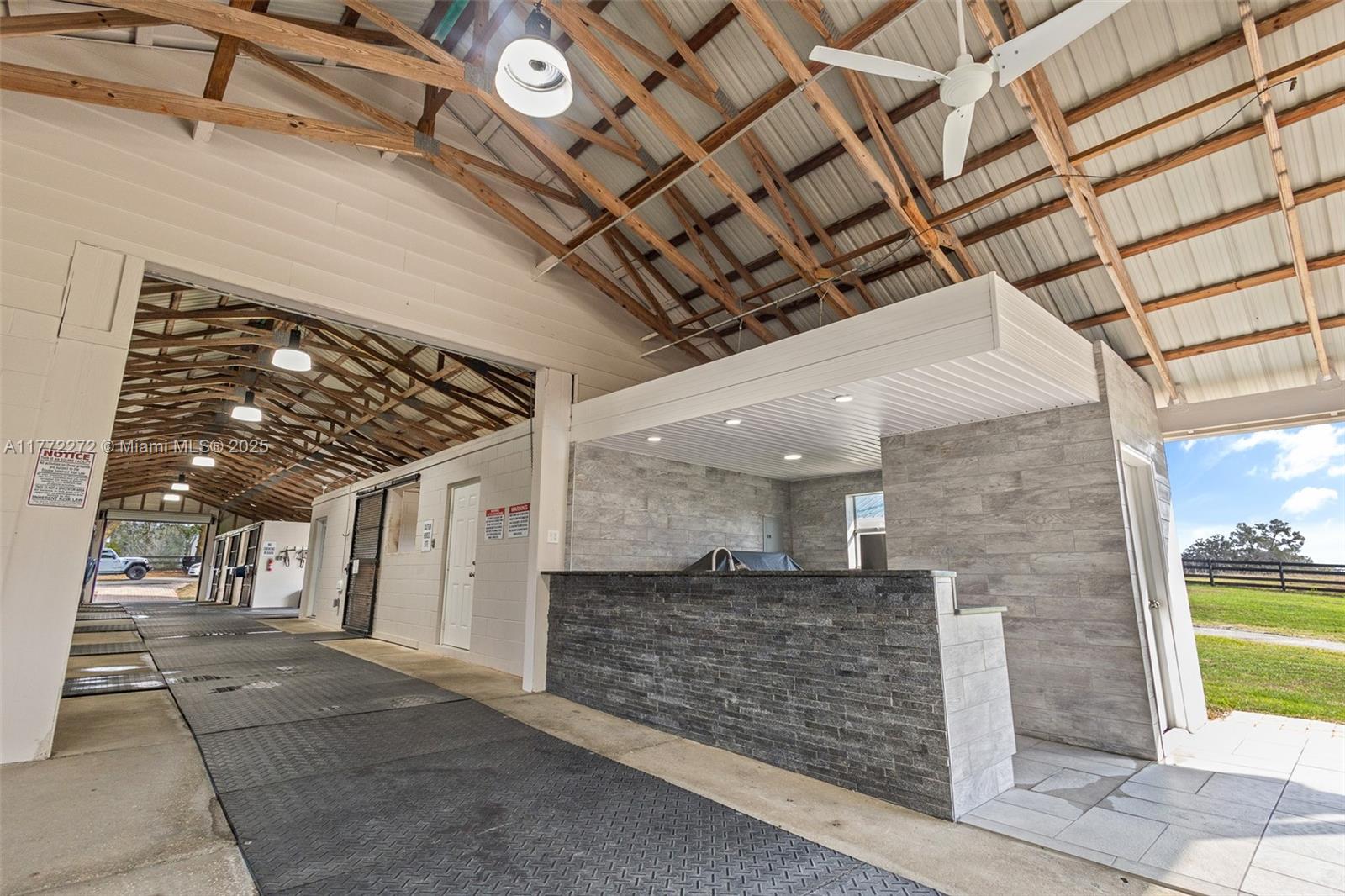Located in southern Marion County, only 15 minutes from the Florida Horse Park and I-75, 30 min from WEC and close to the Villages. This property is ready to go to work with upgrades including fencing with CenFlex, 2 Concrete Barns with a total of 20 stalls, 4 additional wood barns (two are 12 x 24 and two 12x12) with 6 additional stalls designed for overflow or isolation, creating a total of 26 stalls across all barns. Among equestrian amenities are Covered Round Pen with a little sitting area on either side, ideal for observing training or giving lessons in any weather and a Horse Walker for cooling down or low-impact exercise. The 9 paddocks are spacious and well maintained, equipped with automatic waterers, ensuring horses stay hydrated & comfortable. Entertainment area outdoor kitchen