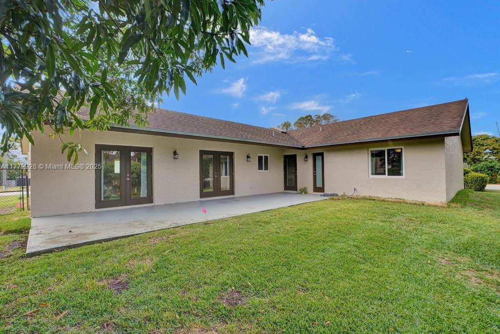 Beautiful family home! Plantation Acres. 4 bed/2 bath/2 car garage. Move in ready! Large living room, huge eat-in kitchen! Main bedroom w/French doors to the backyard, double sinks in the bathroom. Corner lot, room for a pool, quiet community. 2012 shingle roof, 2012 kitchen & appliances, 2020 washer/dryer, 2015 AC, 2017 impact, tempered, energy efficient windows/doors, new interior/exterior paint, neutral light grey color throughout the interior, chair rail in dining area, 3 sets/double French doors, sky-lights, double wide driveway just seal coated, park 4 cars, new sprinkler system, Mango trees. New landscaping in front yard. Steps from walking/jogging path. Very close to Sawgrass Mills Mall. Minutes to Fort Lauderdale. Unique neighborhood. New park coming nearby!