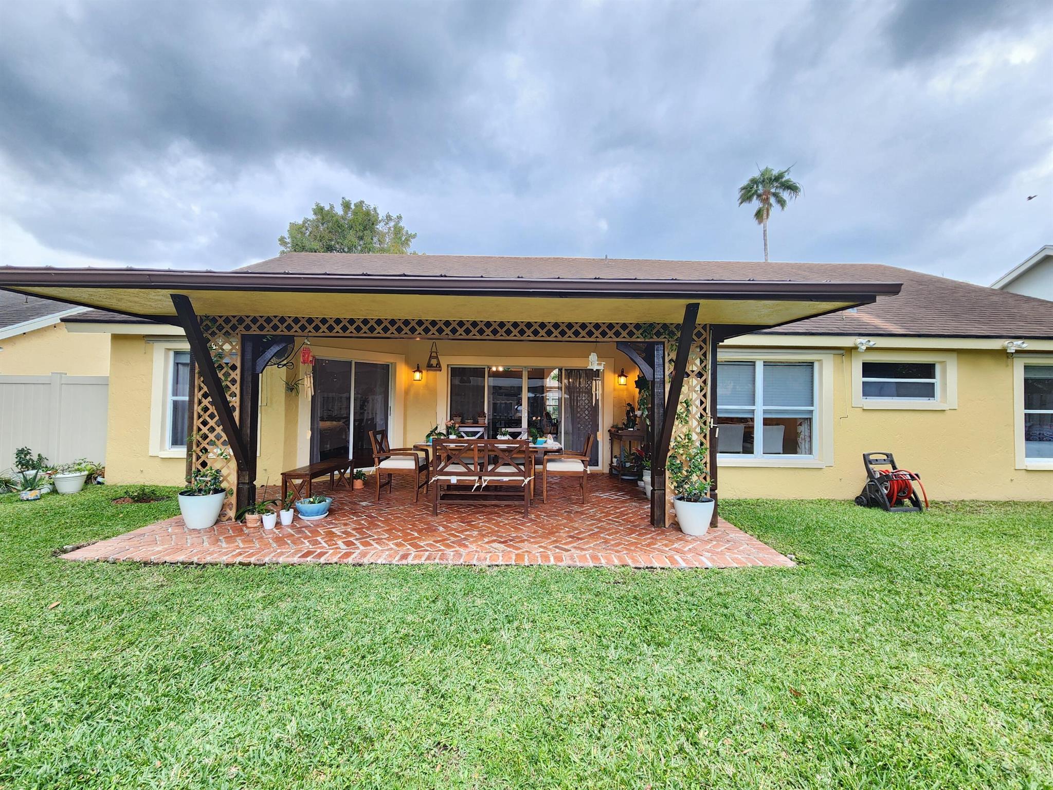 Location, Location, Location! Nestled in the vibrant heart of Wellington, this exquisite property embodies luxury and comfort. Step outside to an inviting patio, perfect for entertaining. The home boasts three beautifully appointed bedrooms and two full bathrooms, complemented by a spacious den that offers versatility for any lifestyle. Impeccably maintained and remodeled in 2021, we also have a newer a/c and dishwasher and water heater updated in 2020. The stunning impact front door welcomes you with elegance and grace. Fully fenced in!! This meticulously cared-for residence is truly ready for you to move in and relish the refined living experience it offers, all within a gated community featuring a pristine community pool for relaxation and leisure. !