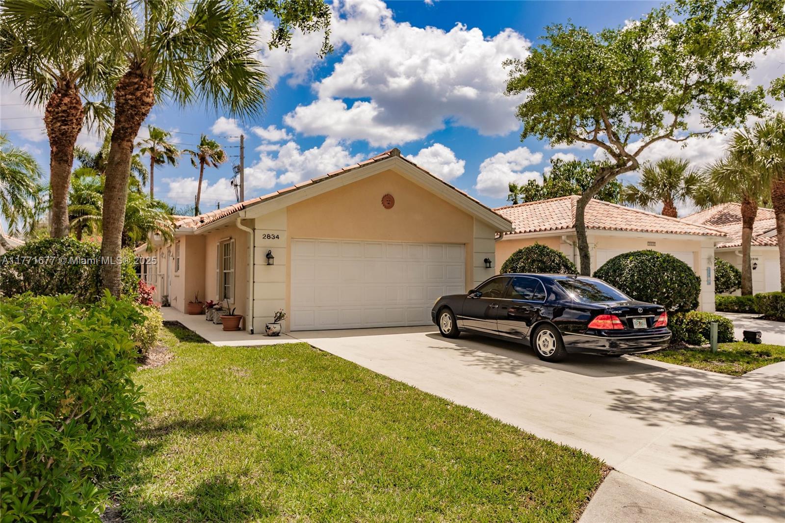 This stunning villa offers the perfect resort lifestyle experience. New refrigerator, new washer and dryer, new lamps throughout the house, new toilets, new faucets. Step inside to discover a thoughtfully designed floor plan with intriguing angles that create a sense of discovery as you move through the home. The property features two master suites, each with generous closet space. Outside, enjoy a beautifully landscaped side yard and backyard, complemented by a screened patio. Enjoy an abundance of amenities including miles of scenic lakes and bike paths with charming cobblestone bridges, an on-site restaurant, tennis and pickleball courts, bocce, a playground, three heated pools, and a fitness center. The HOA conveniently covers cable, internet, and lawn maintenance.
