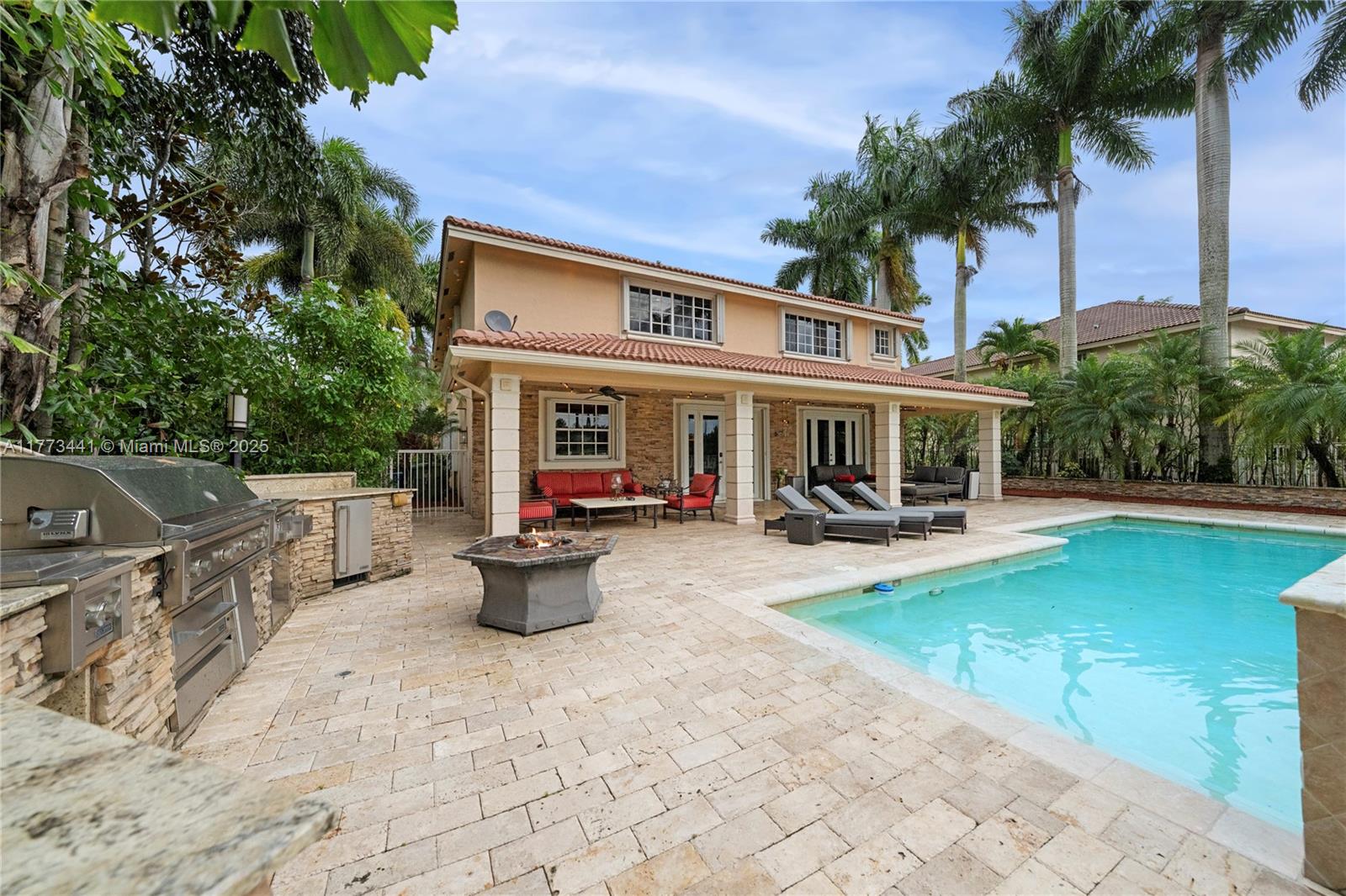 PRESENTING A CUSTOM HOME BUILT BY FORMER NFL FOOTBALL PLAYER. This One of A Kind private lakefront home on an OVERSIZED LOT in Weston Hills Country Club is truly exceptional. A fully customized home w/ 24” marble flooring & solid Italian wood doors w/ intricate designs, wrought iron staircase, & an amazing chef’s kitchen w/ HIGH END BUILT IN appliances: Subzero Refrigerator, Double Wolf Oven, Miele Coffee Maker, Nespresso machine & built in Wine Cooler. This house was made to entertain w/ built-in cabinetry & wet bar! 2nd floor features 4 LARGE sized bedrooms plus office w/ huge master suite (can make an additional room if desired). Stunning finishes w/ huge Marble Circular driveway & patio. The backyard is has a summer kitchen, sun deck, & pool w/ wading area & jacuzzi. A/c in garage!