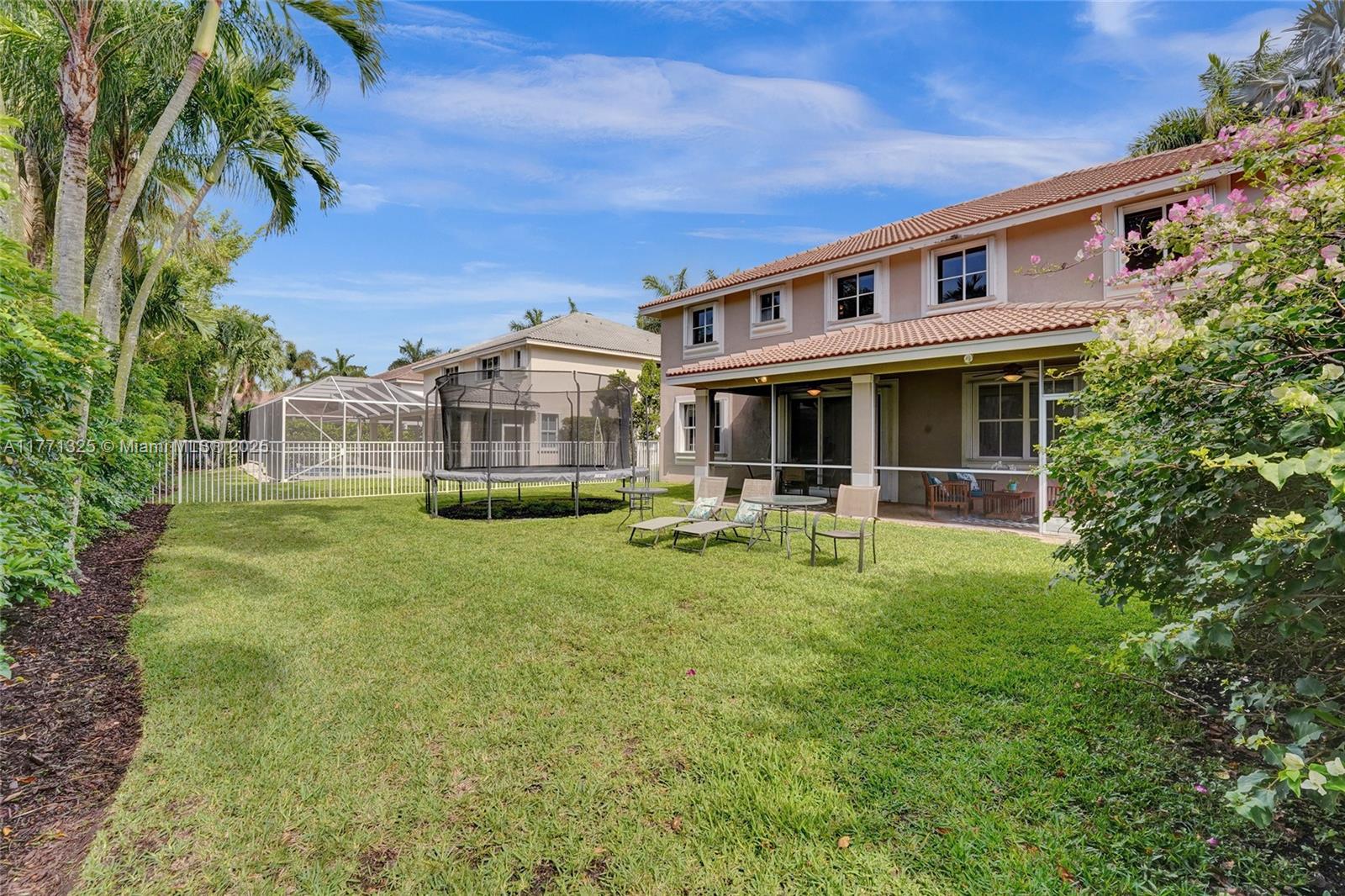 Nestled along a royal palm-lined street in Hunter Pointe at Weston Hills CC, this home offers a brand-new roof (currently being installed), fresh exterior and interior paint, 6 bedroom, 4 bath, and a paver driveway. Step inside to soaring two-story ceilings in the formal living area, complemented by neutral tones and tile flooring. The kitchen offers SS appliances, granite countertops, and ample storage. Full bedroom and bath on the first level, central vacuum, alarm system, and full accordion protection. The oversized, fully fenced backyard has plenty of room for a pool, while the screened paver patio with a large overhang is perfect for outdoor gatherings. Best of all, you can walk to the nearby community park, complete with a playground, basketball court, soccer field, and more.