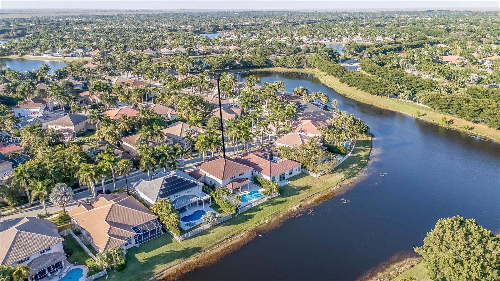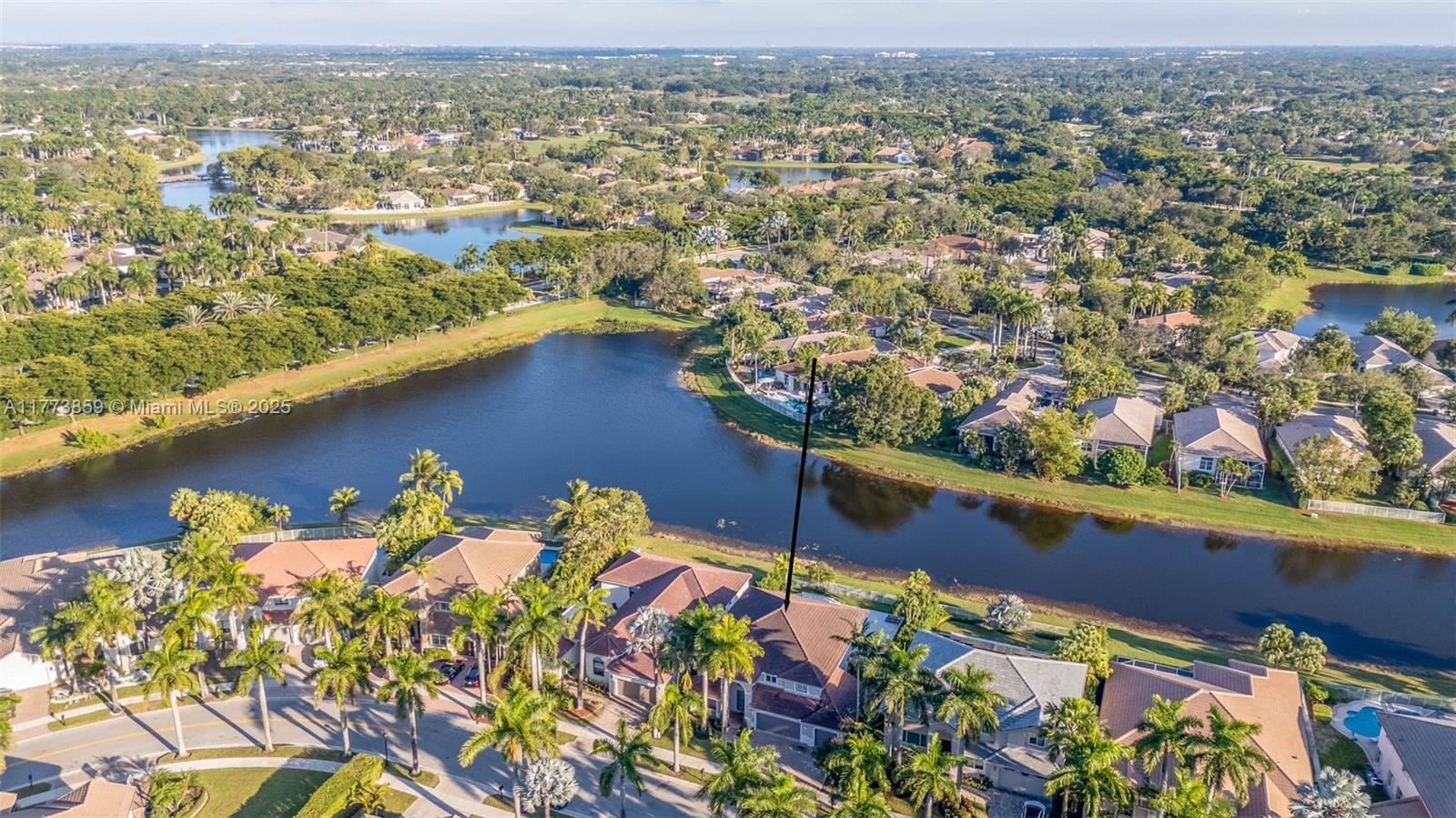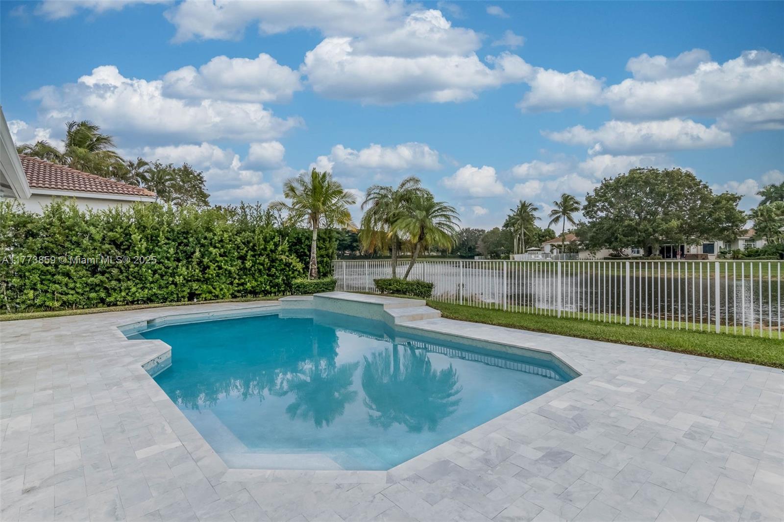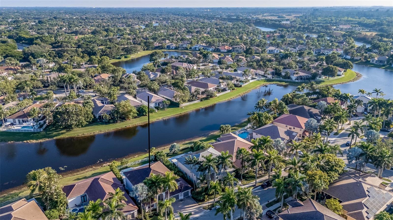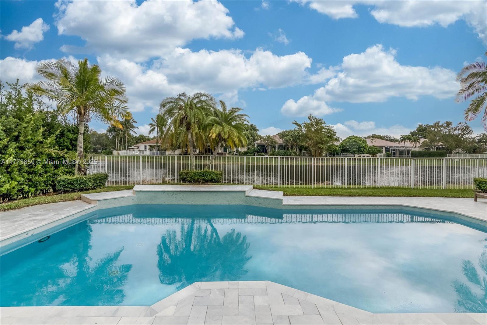 IMPACT WINDOWS & DOORS throughout, this home blends luxury & security. Beautiful Lake home offers an impressive sense of space with soaring ceilings and expansive living areas, designed for both everyday comfort and effortless entertaining. The open-concept kitchen flows seamlessly into the spacious family room, ideal for gatherings large or small. Enjoy the convenience of a full bedroom and bath on the first floor. Upstairs, sleek glass stair rails and wood flooring add a touch of elegance throughout. The expansive primary suite is a true retreat, featuring a serene sitting area and spa-inspired bathroom, all overlooking panoramic lake views. Step outside to your private oasis: a covered patio, sparkling Salt pool, and marble deck await, set against the tranquil lake backdrop.